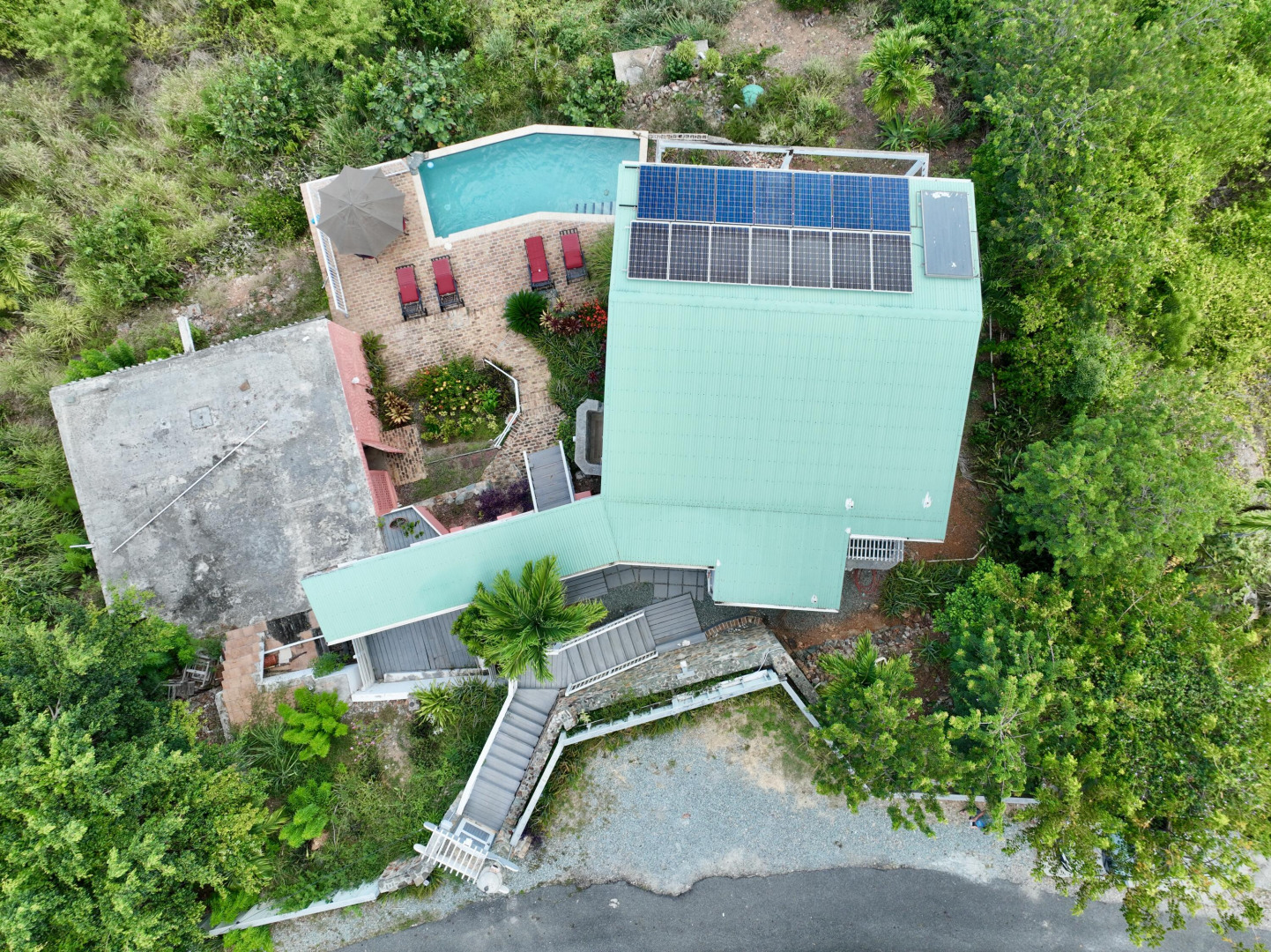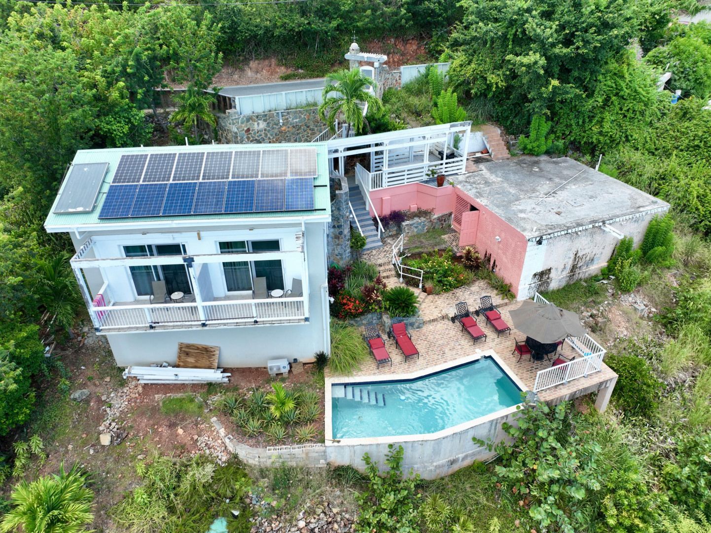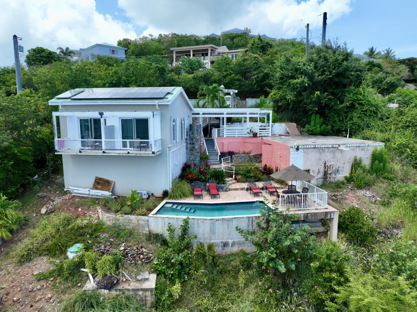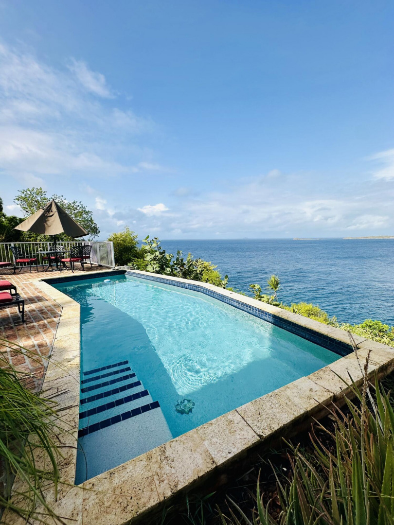 Villa Belvedere delivers rare waterfront potential with sweeping 180 Caribbean views and year-round sunsets. In a sought-after neighborhood just minutes from Cruz Bay, this 2BR/2BA home with pool and kitchenette is actively generating short-term rental income. The main structure sustained storm damage in 2017 but remains operational. New owners can use as it is today while taking advantage of a solid foundation and flexible layout to reimagine, expand and rebuild. Deeded HOA access to a private dinghy dock and landing completes this prime opportunity.