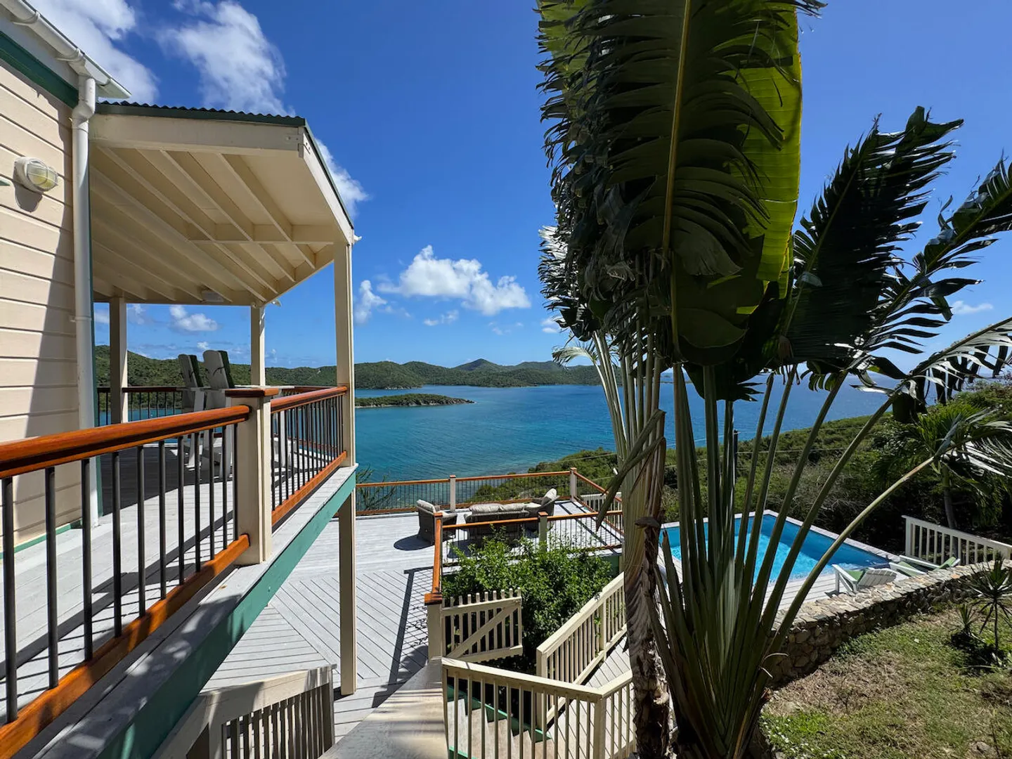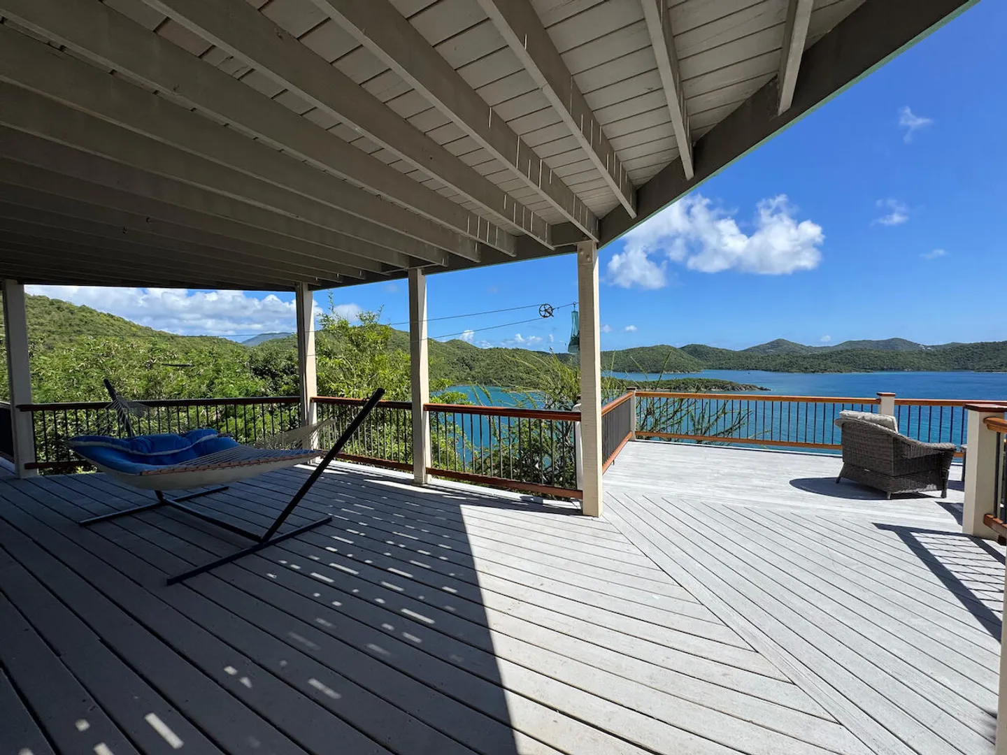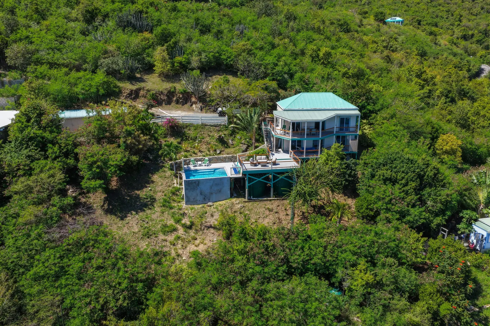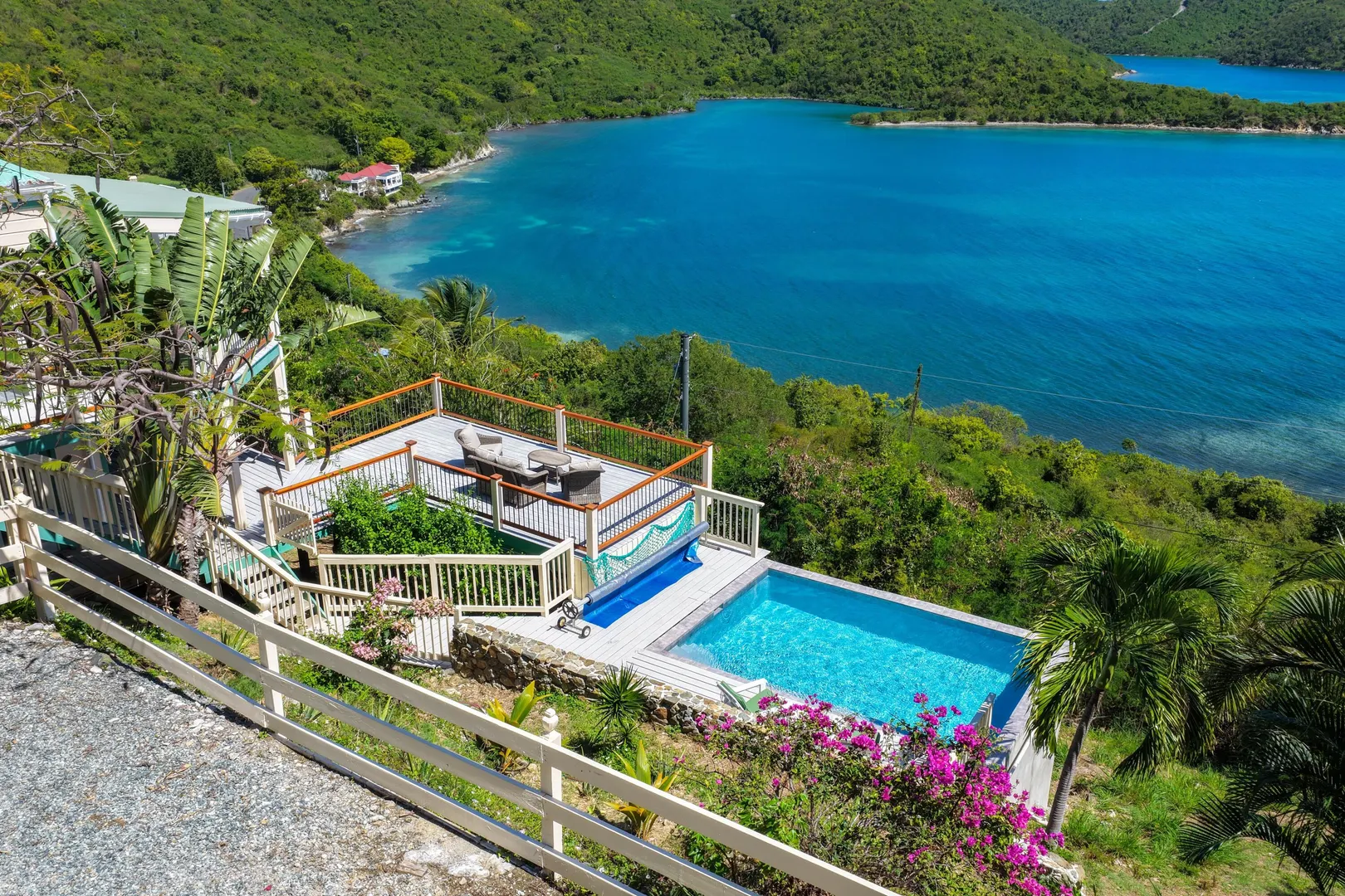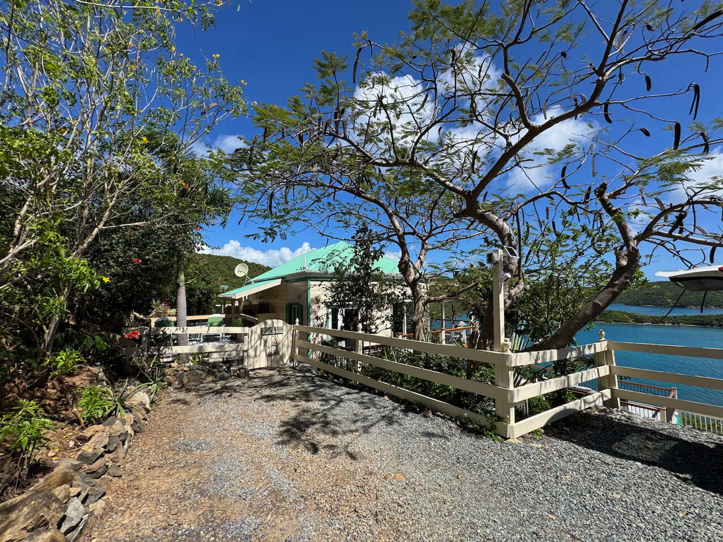 Living Life Smilin' is a charming cottage overlooking Hurricane Hole with protected water views, steady ocean breezes, privacy, pool, and easy access. This 3BR/2.5BA home sits at the end of a private estate road just 3 minutes from Coral Bay. Set on half an acre with room to expand, it works beautifully as a full-time home or STR investment -- Turnkey and fully furnished for immediate enjoyment. Updates include new flooring, a 2022 kitchen renovation with modern appliances and granite counters, AC in bedrooms, updated wastewater system, storage shed, and ample parking. Multiple outdoor spaces offer covered dining, a shaded hammock deck, sunny sitting area, and poolside perch.