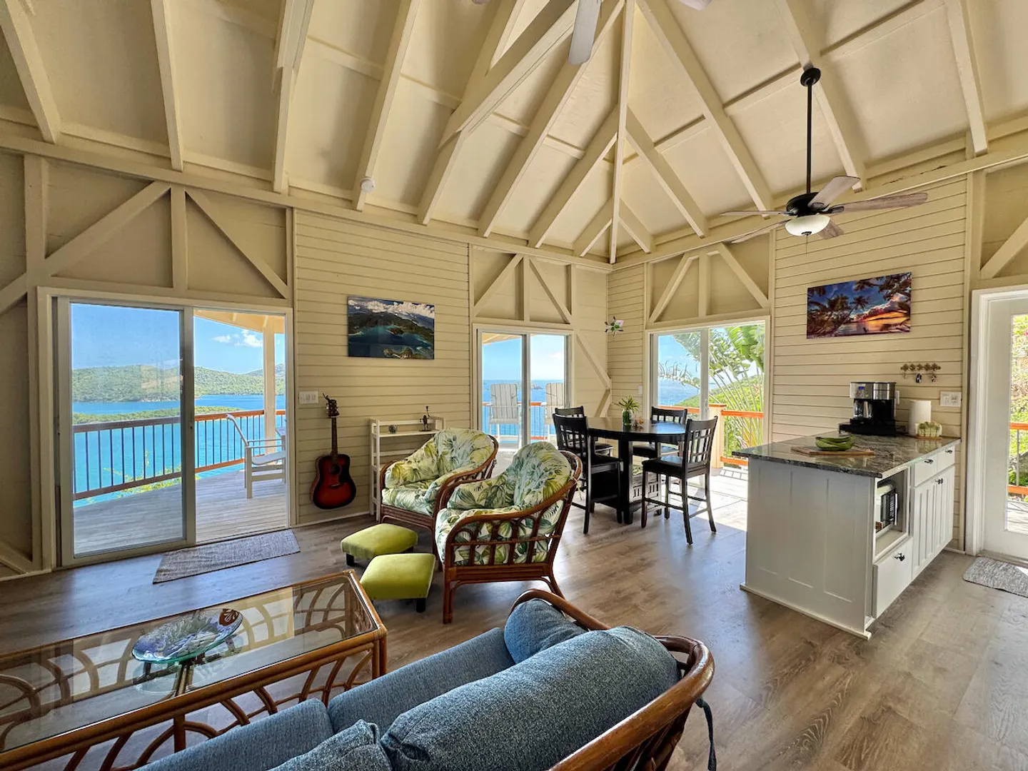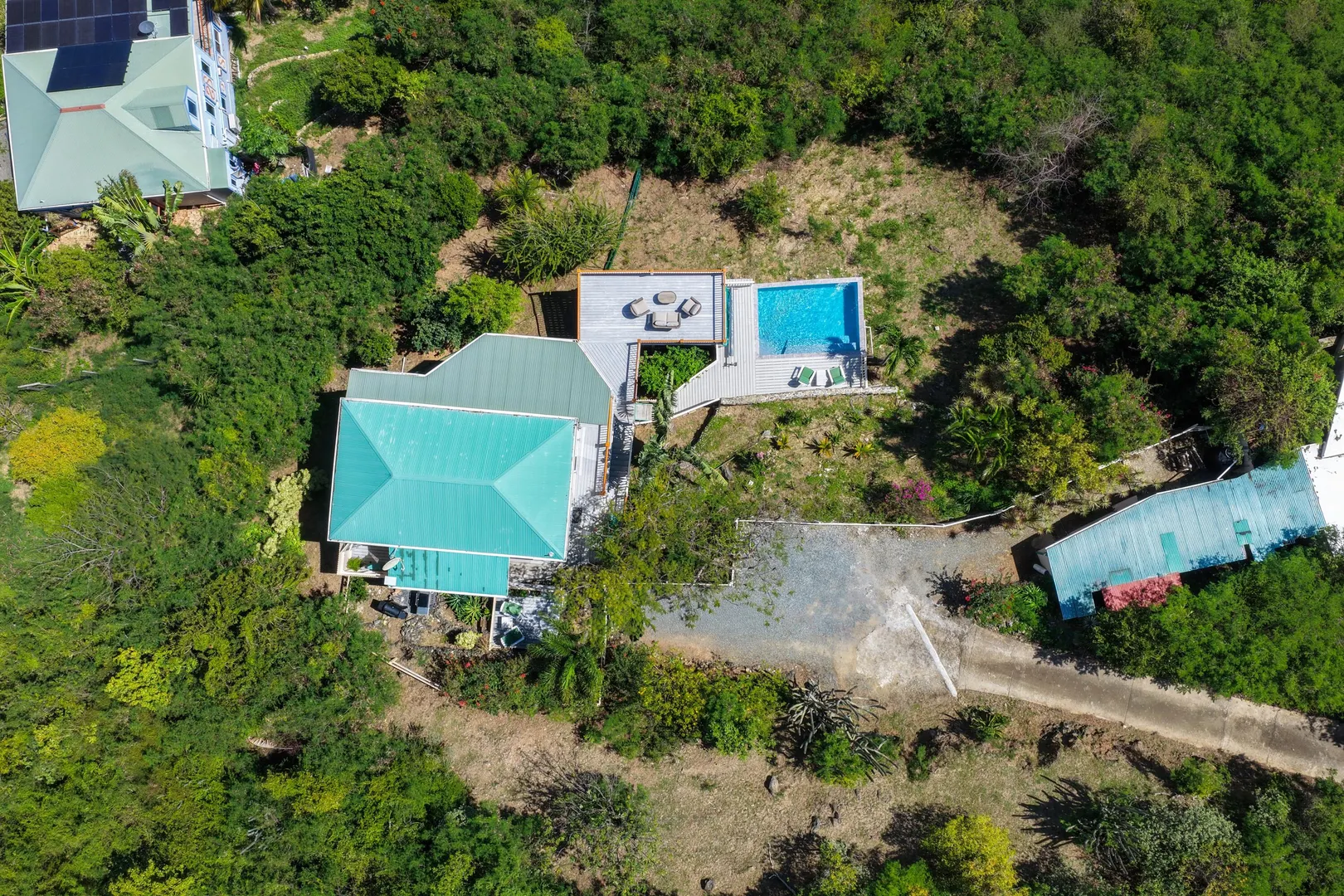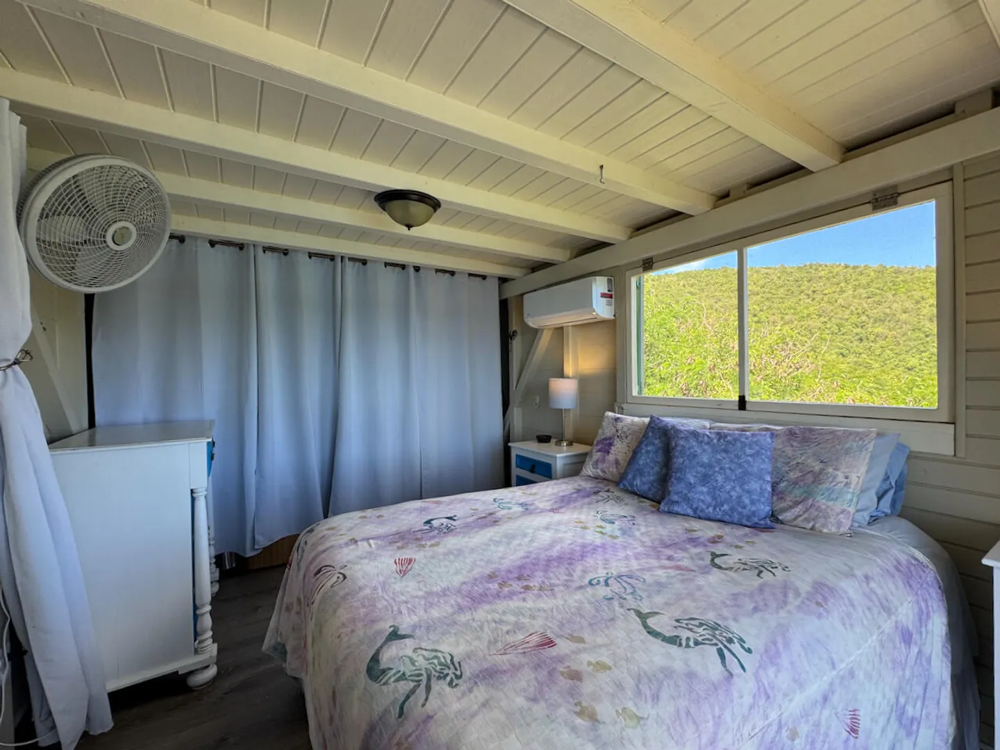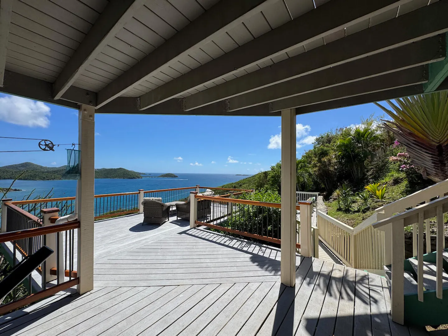 Living Life Smilin' is a charming cottage overlooking Hurricane Hole with protected water views, steady ocean breezes, privacy, pool, and easy access. This 3BR/2.5BA home sits at the end of a private estate road just 3 minutes from Coral Bay. Set on half an acre with room to expand, it works beautifully as a full-time home or STR investment -- Turnkey and fully furnished for immediate enjoyment. Updates include new flooring, a 2022 kitchen renovation with modern appliances and granite counters, AC in bedrooms, updated wastewater system, storage shed, and ample parking. Multiple outdoor spaces offer covered dining, a shaded hammock deck, sunny sitting area, and poolside perch.