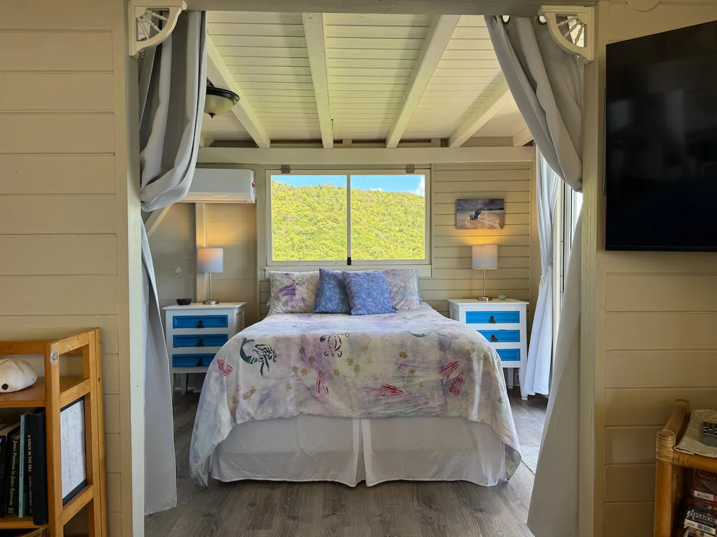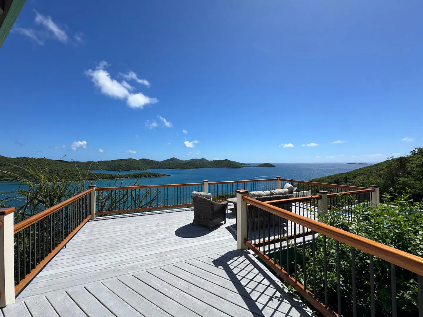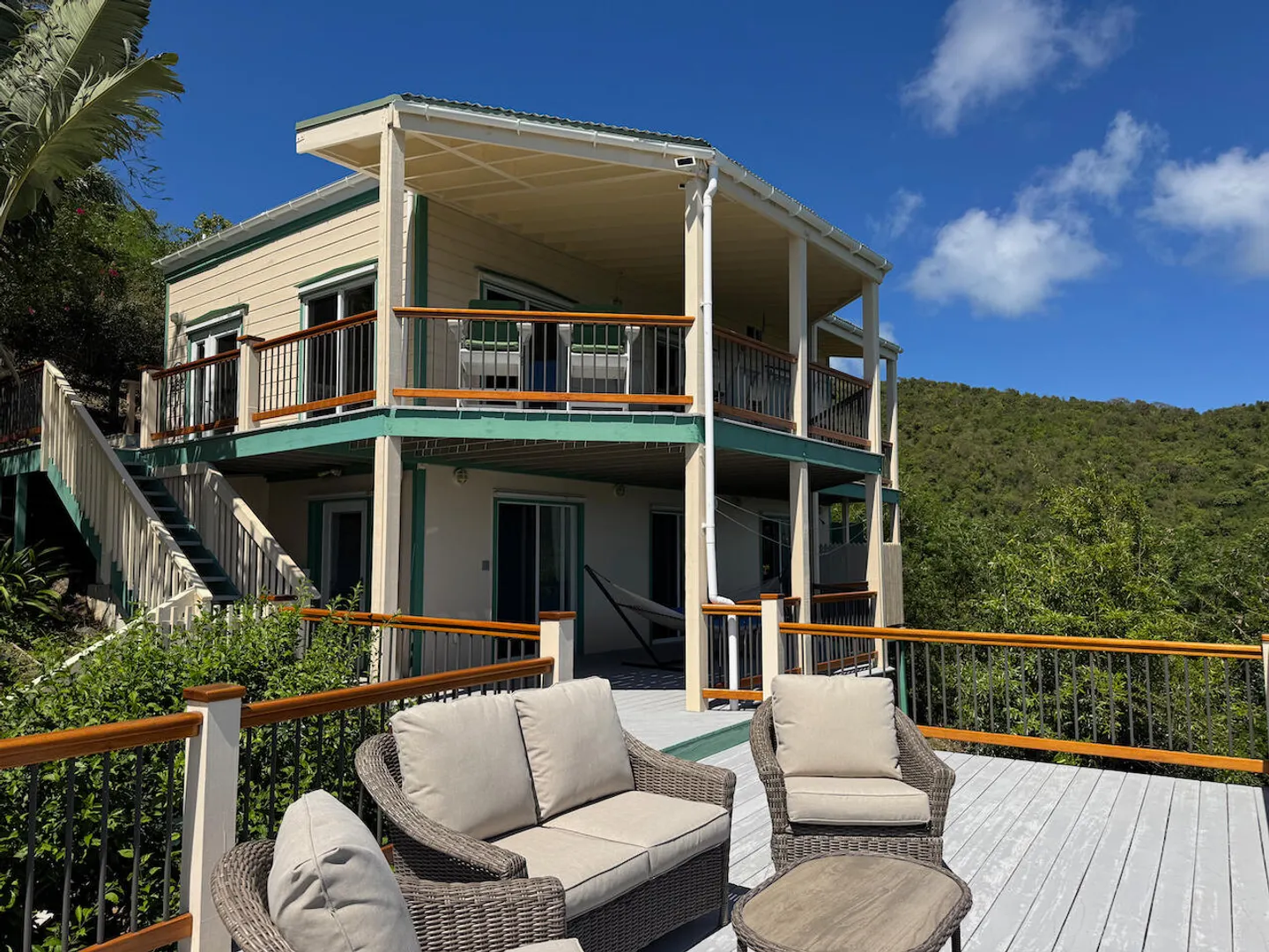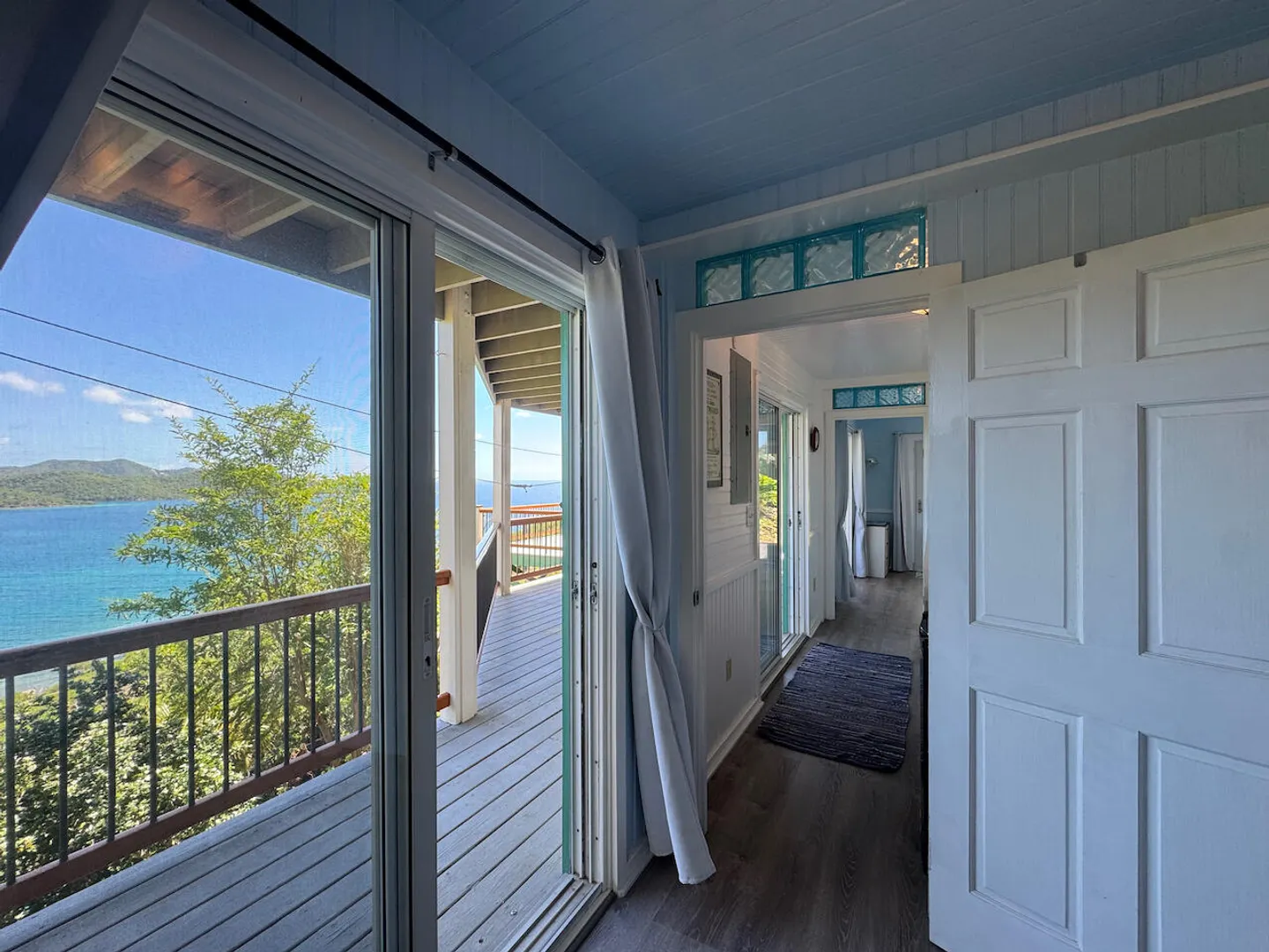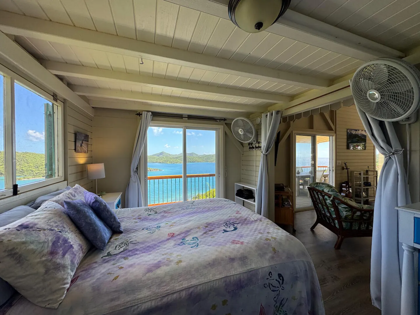 Living Life Smilin' is a charming cottage overlooking Hurricane Hole with protected water views, steady ocean breezes, privacy, pool, and easy access. This 3BR/2.5BA home sits at the end of a private estate road just 3 minutes from Coral Bay. Set on half an acre with room to expand, it works beautifully as a full-time home or STR investment -- Turnkey and fully furnished for immediate enjoyment. Updates include new flooring, a 2022 kitchen renovation with modern appliances and granite counters, AC in bedrooms, updated wastewater system, storage shed, and ample parking. Multiple outdoor spaces offer covered dining, a shaded hammock deck, sunny sitting area, and poolside perch.