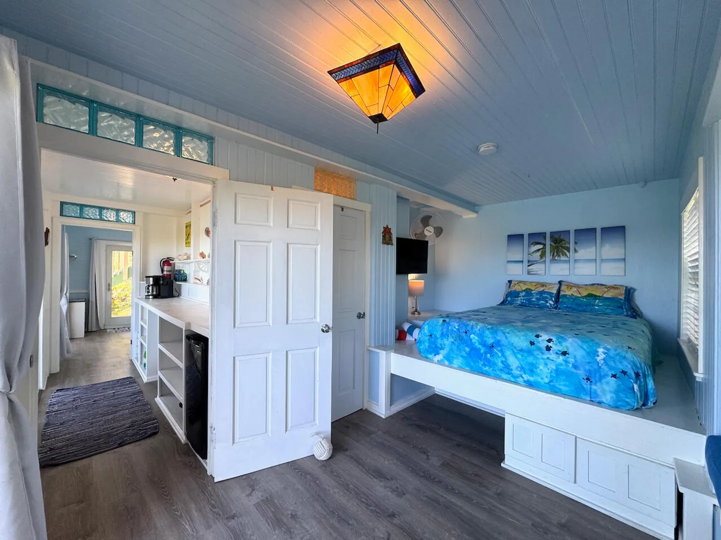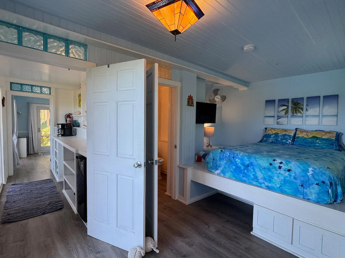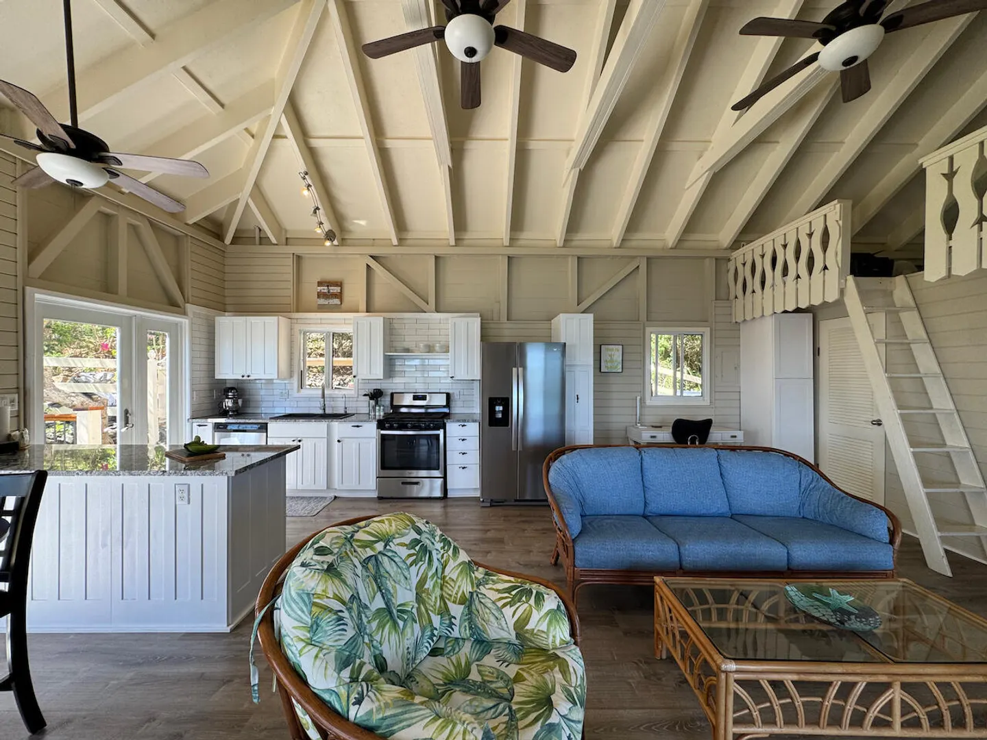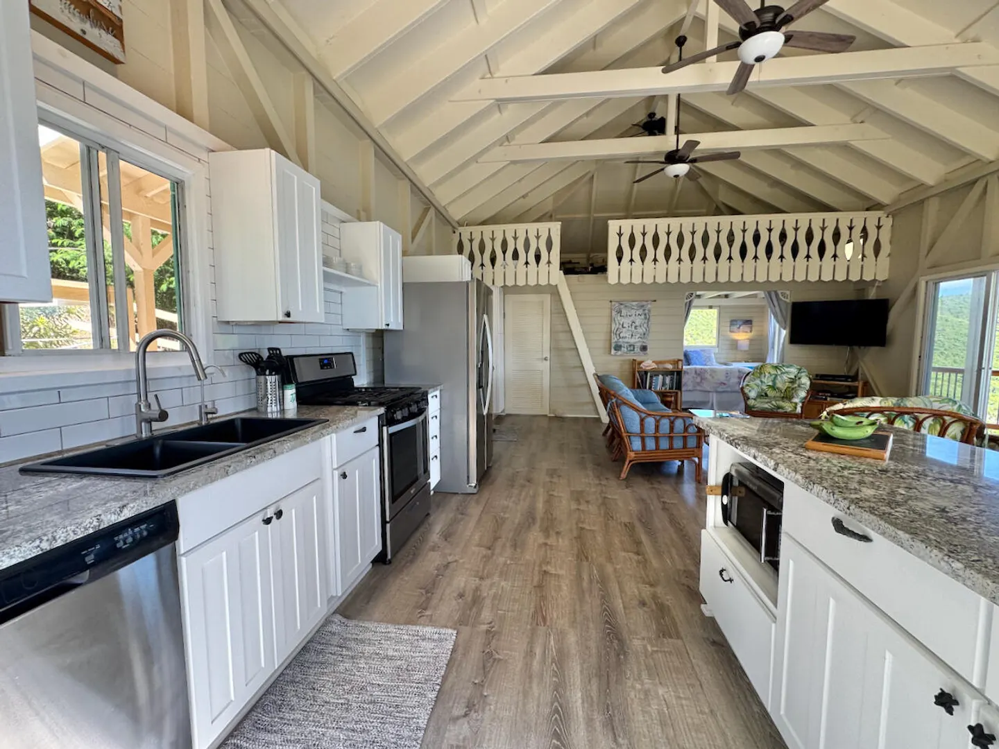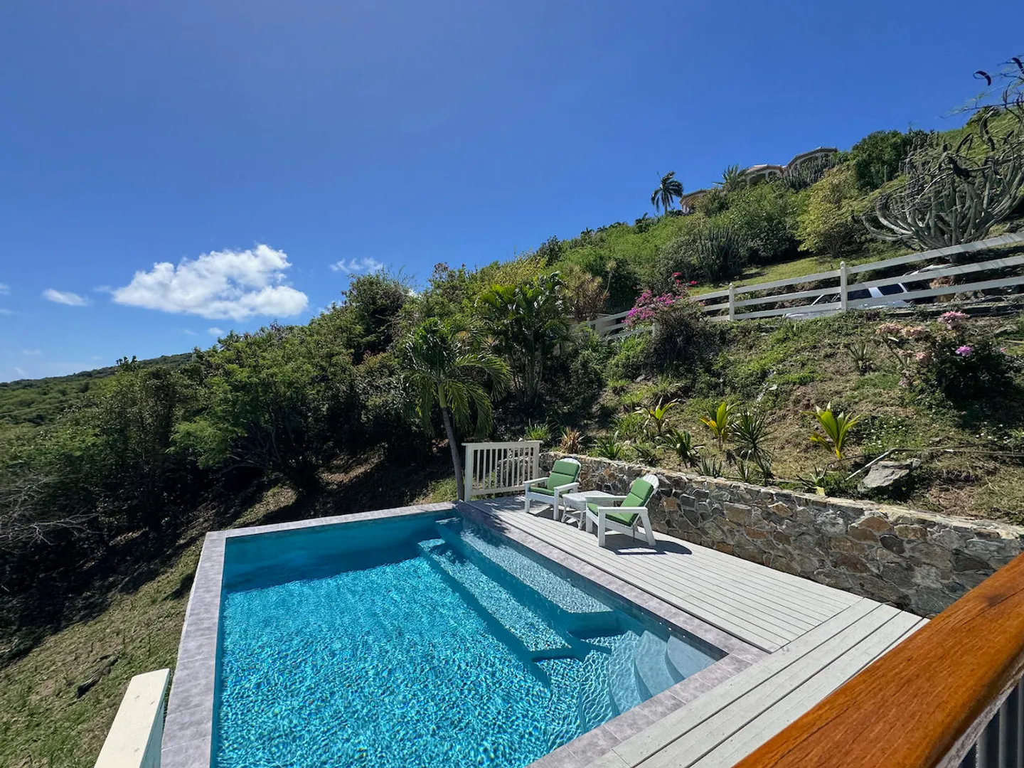Living Life Smilin' is a charming cottage overlooking Hurricane Hole with protected water views, steady ocean breezes, privacy, pool, and easy access. This 3BR/2.5BA home sits at the end of a private estate road just 3 minutes from Coral Bay. Set on half an acre with room to expand, it works beautifully as a full-time home or STR investment -- Turnkey and fully furnished for immediate enjoyment. Updates include new flooring, a 2022 kitchen renovation with modern appliances and granite counters, AC in bedrooms, updated wastewater system, storage shed, and ample parking. Multiple outdoor spaces offer covered dining, a shaded hammock deck, sunny sitting area, and poolside perch.