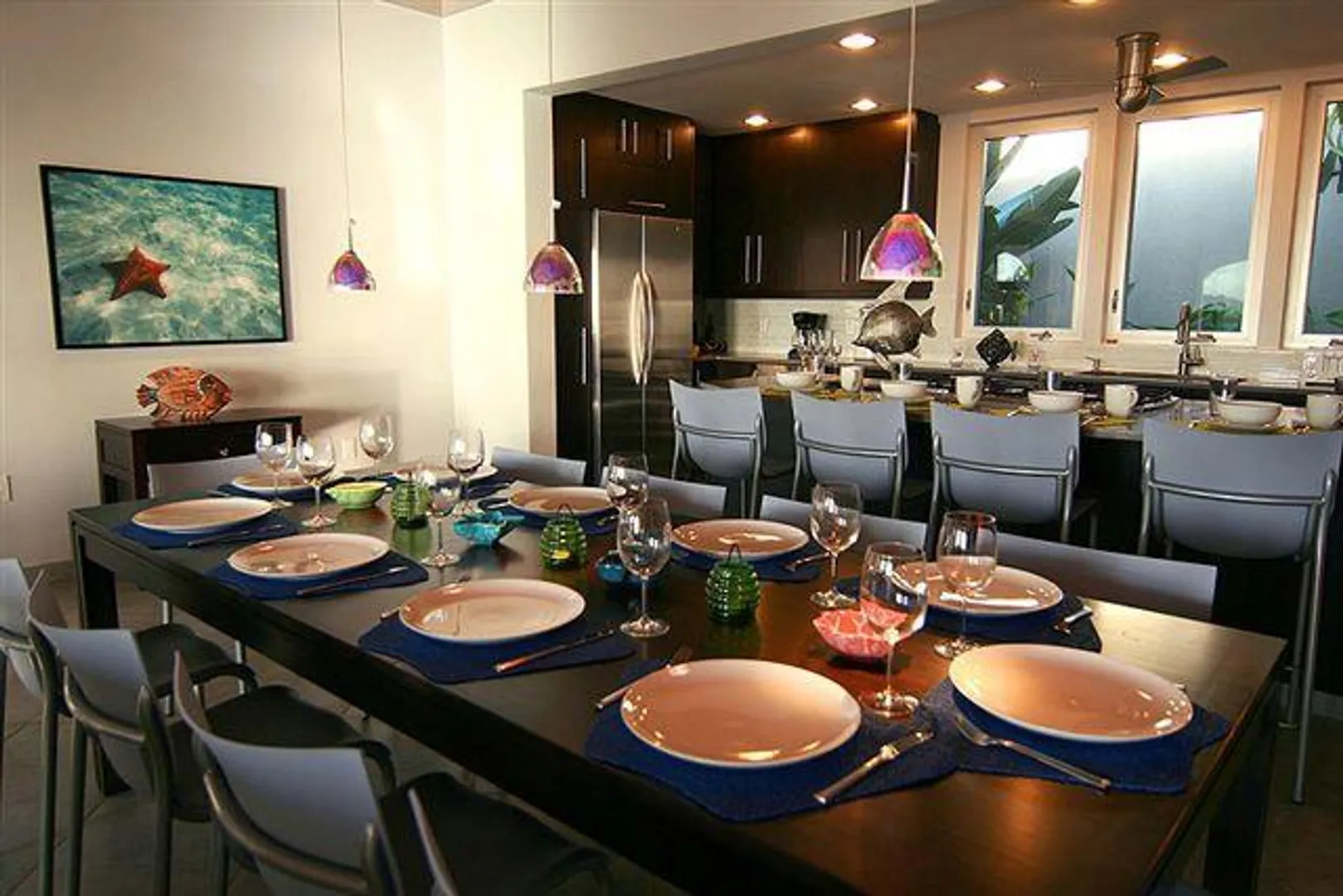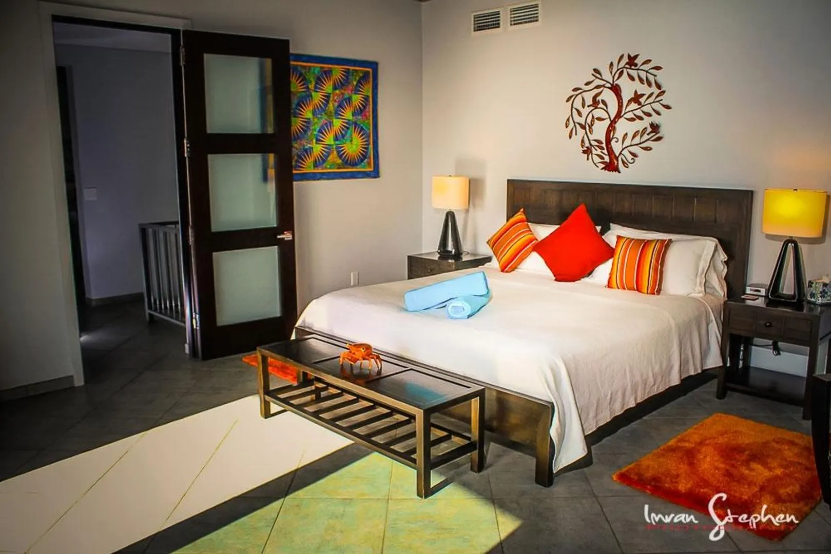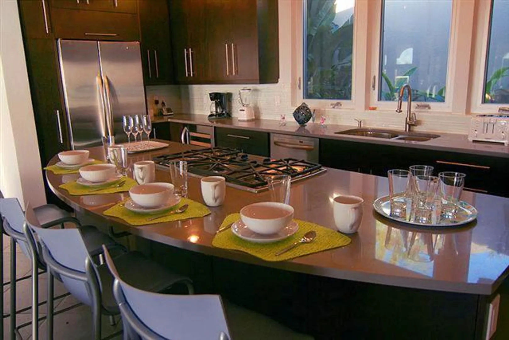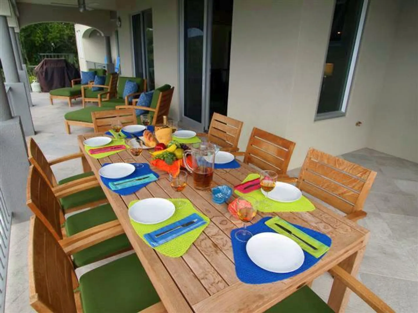 INFINITY is a spectacular villa with a unique blend of West Indian and contemporary architecture designed by local architect, Rob Crane. Situated in the gated community of Virgin Grand Estates, this luxurious home features breathtaking views of St. Thomas and the surrounding islands. The gourmet kitchen offers custom mahogany cabinets, beautiful Silestone counter tops and KitchenAid appliances. Other amenities include exquisite Italian tile floors, stylish furnishings, custom mahogany and glass doors, Fleetwood sliding doors, designer lighting and hardware, and two tasteful one-half baths. All four spacious air-conditioned bedroom suites are accessible from the inside. This successful rental villa offers views from every room as well as colorful sunsets from the inviting 24 ft. pool.
