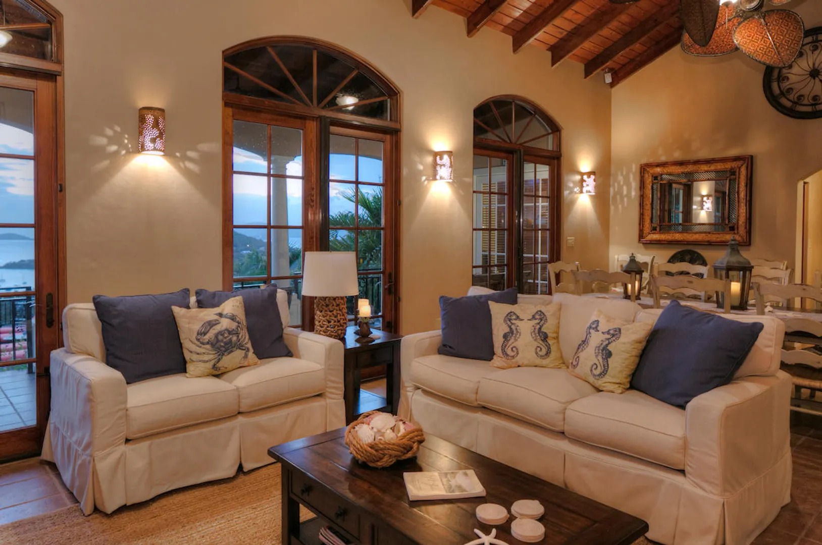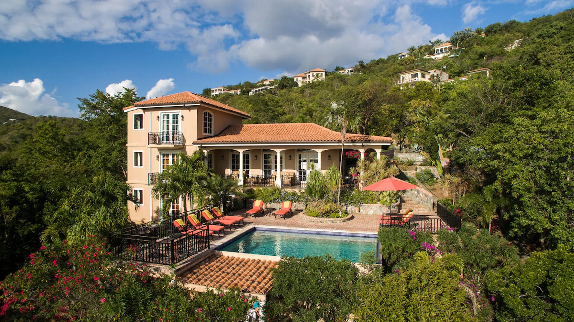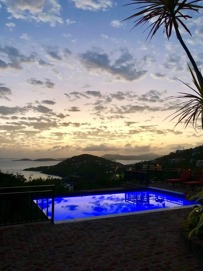 SELLER IS MOTIVATED! - Villa South Palm is a beautiful and classic island retreat in beautiful Virgin Grand Estates. Fantastic sunset views over Great Cruz Bay and beyond. This impeccably maintained and beautifully landscaped Villa is a very successful rental home in a private and quiet setting. Convenient Location and paved access. Buyer and Seller to equally split Stamp Tax. Buyer to honor prior Rental commitments.