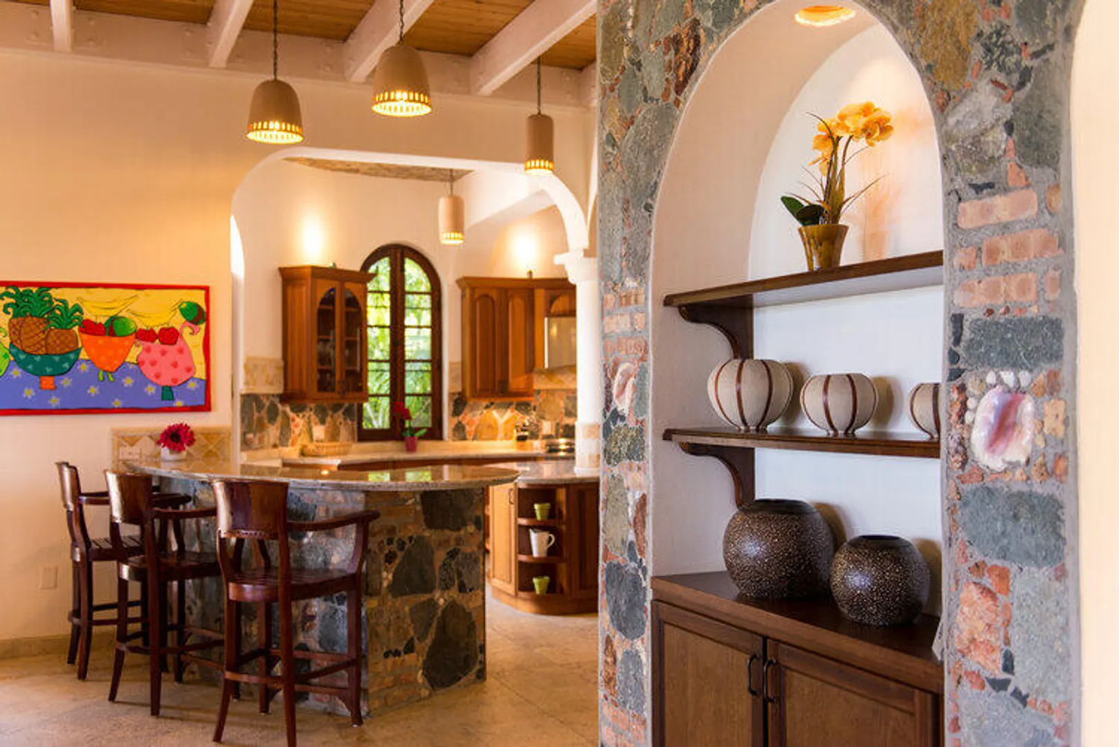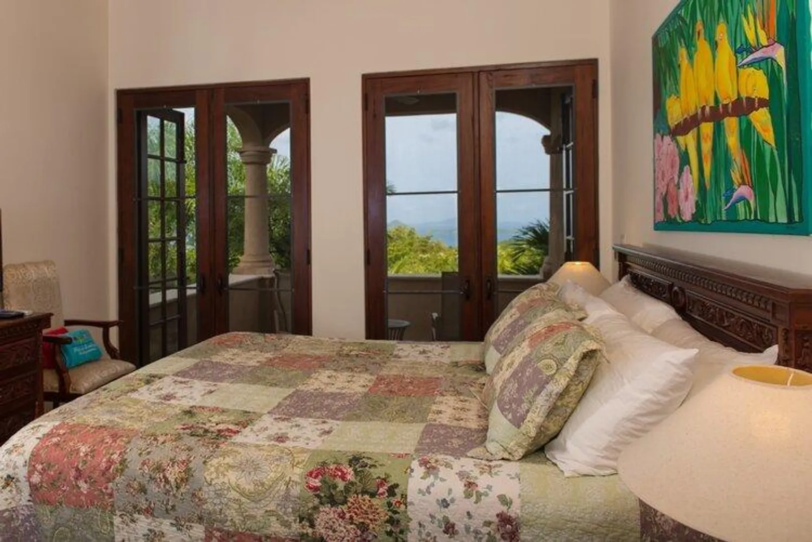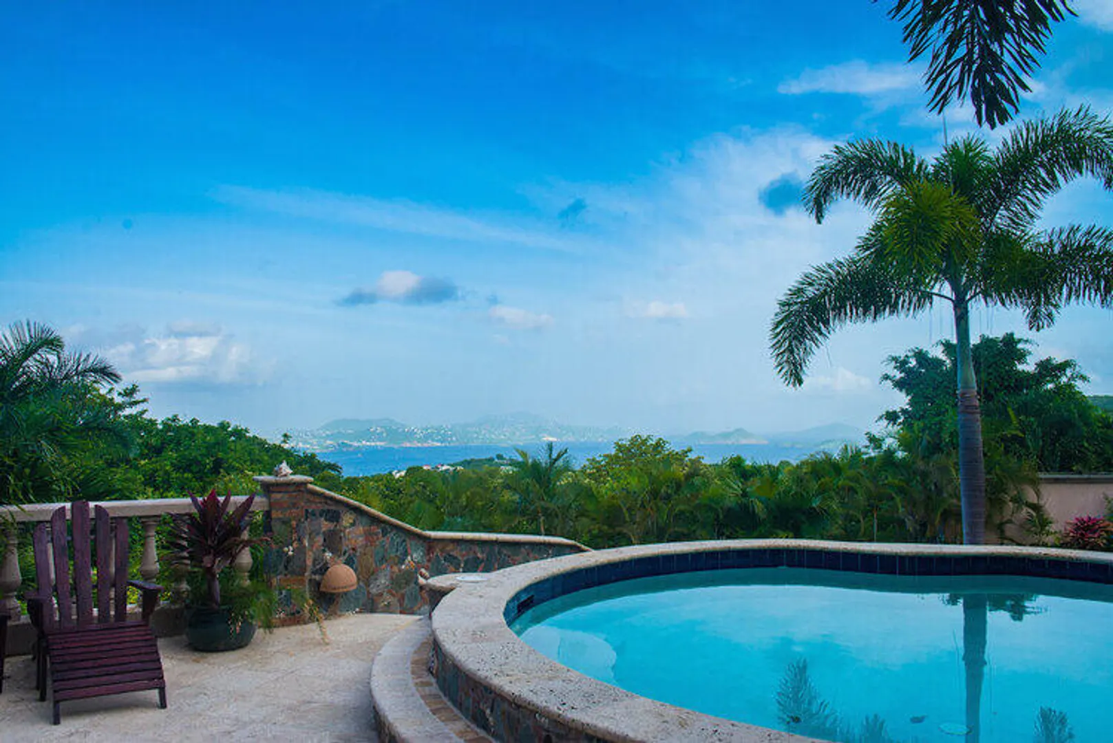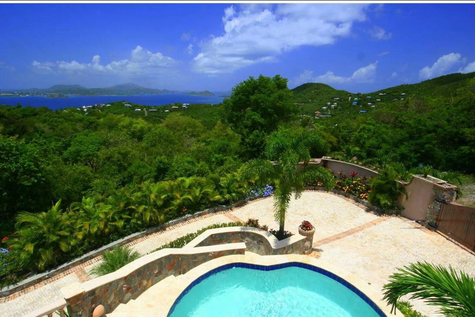 Top of the line luxurious pool villa designed by noted architect Michael Oxman and located in the gated, upscale subdivision of Virgin Grande Estates. Sweeping south to westerly views from St. Croix and over Pillsbury Sound to St. Thomas ensure great sunsets year round. Features include custom mahogany cabinets, doors and windows, coral stone floors and decks throughout, pool and spa, game and media room and fine furnishings. Buyer to honor confirmed rental reservations. See supplement for more details.