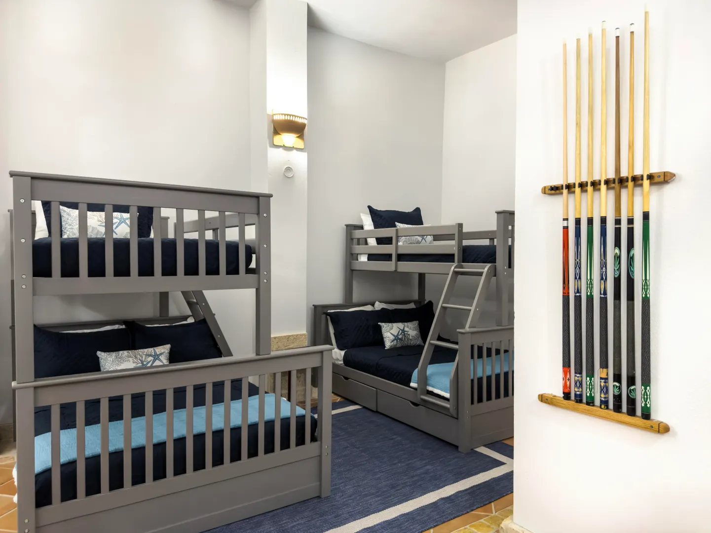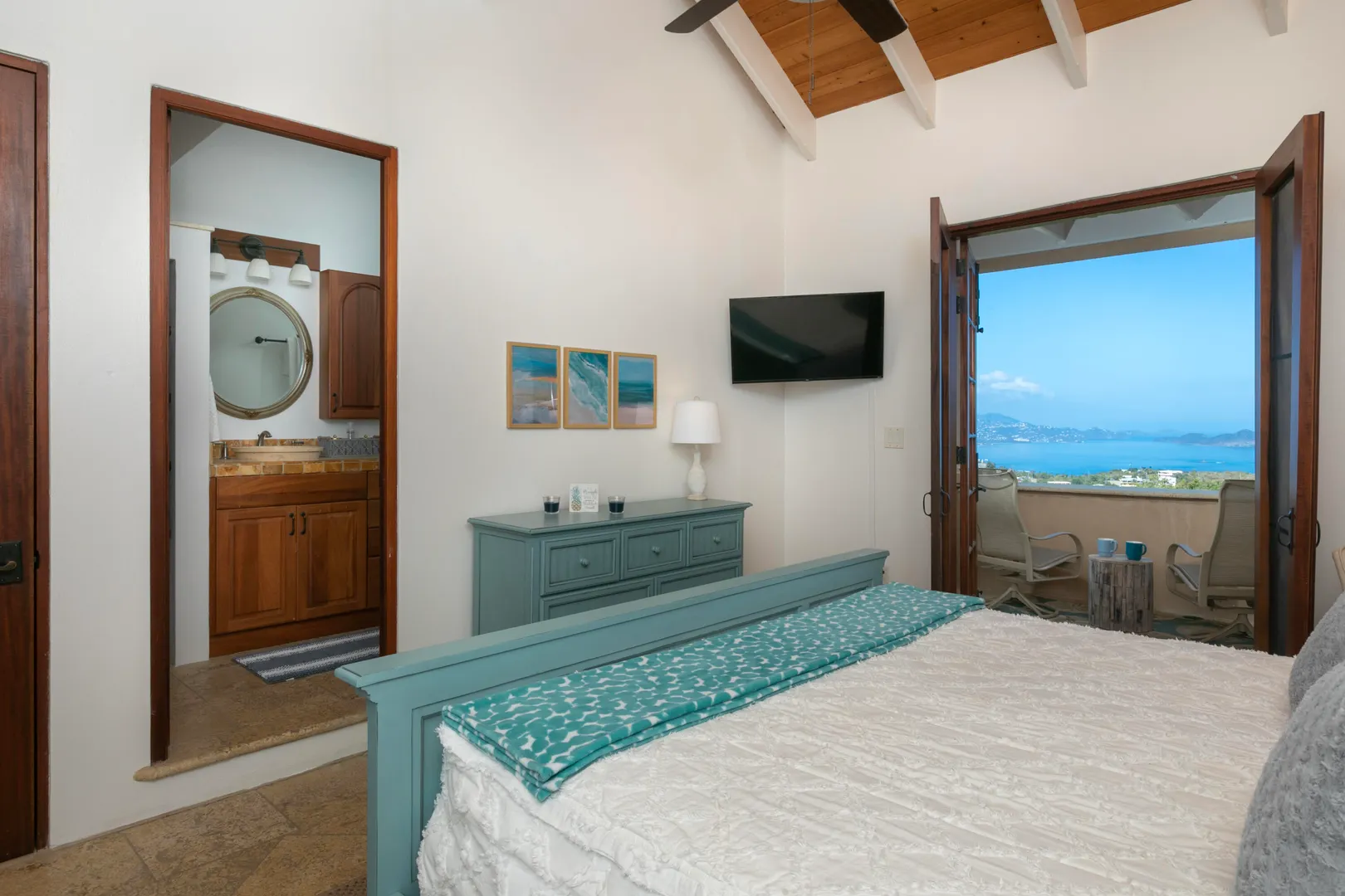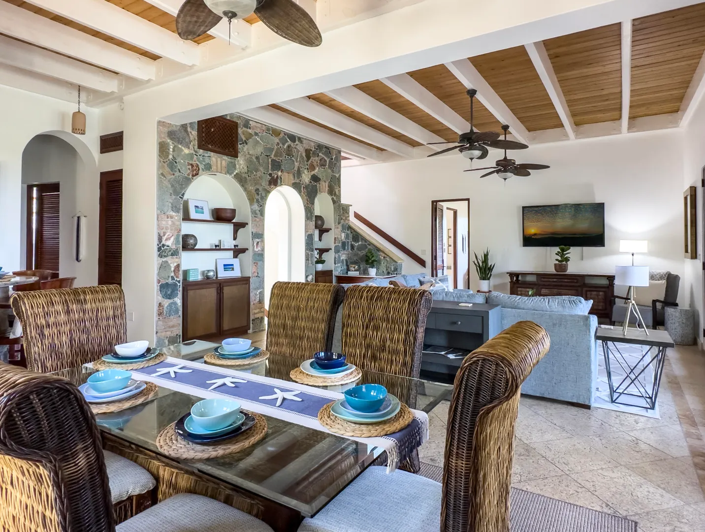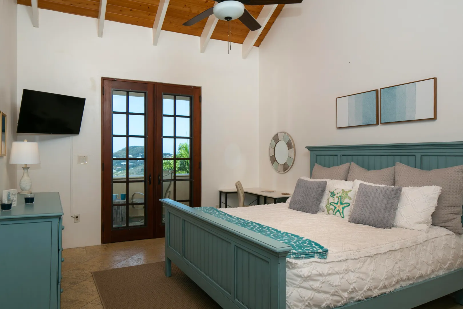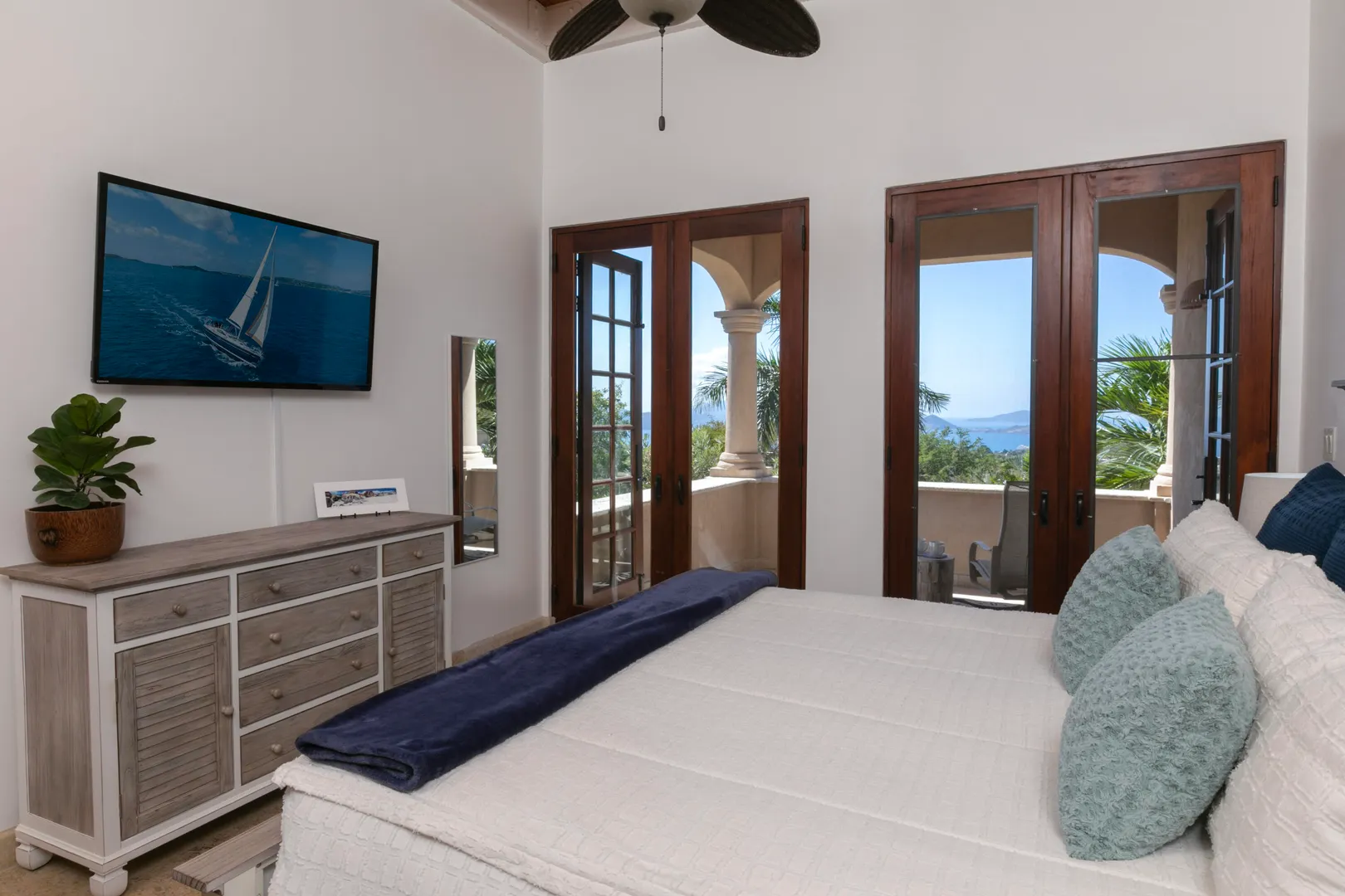 Casa Sonadores, the Dreamers' House, lives up to its name. Set within the gated heights of Virgin Grande Estates and framed by sweeping south-to-west views that capture St. Croix, Pillsbury Sound, and year-round sunsets, this elegantly crafted Michael Oxman villa blends timeless Caribbean design with thoughtful modern upgrades. A private gated entry leads to a gracious courtyard and stonework details that set the tone for the home's quality. Coral stone floors, custom mahogany doors and windows, soaring 12-foot ceilings, and hand-selected architectural finishes run throughout. The main terrace features a round pool and generous outdoor dining. A true Dreamers' House--crafted with vision, enhanced with care, and ready for its next chapter.The residence offers spacious bedroom suites with King beds, private verandas, travertine-and-coral stone baths, and two outdoor showers. Below, a 1,000-sq-ft game and bunk room creates a retreat of its own with TVs, billiard tables, two sets of bunks and arcade gamesideal as an extra space for fun and extra sleeping accommodation.