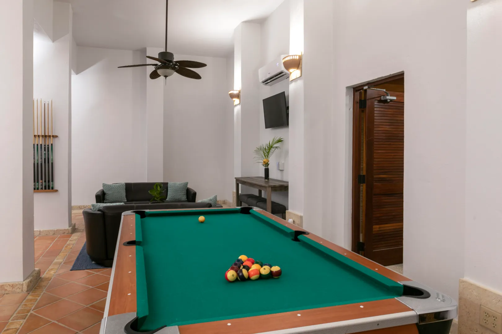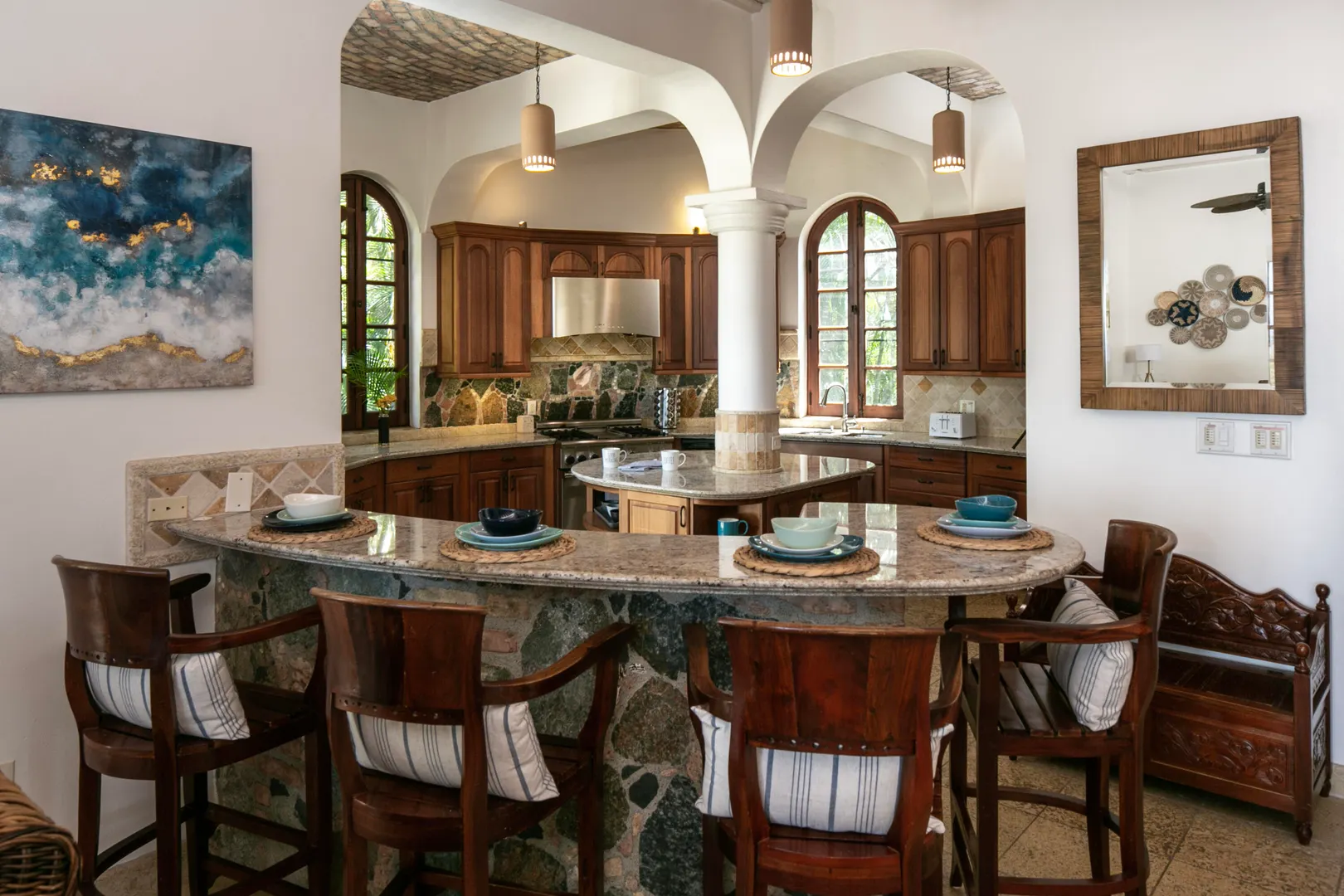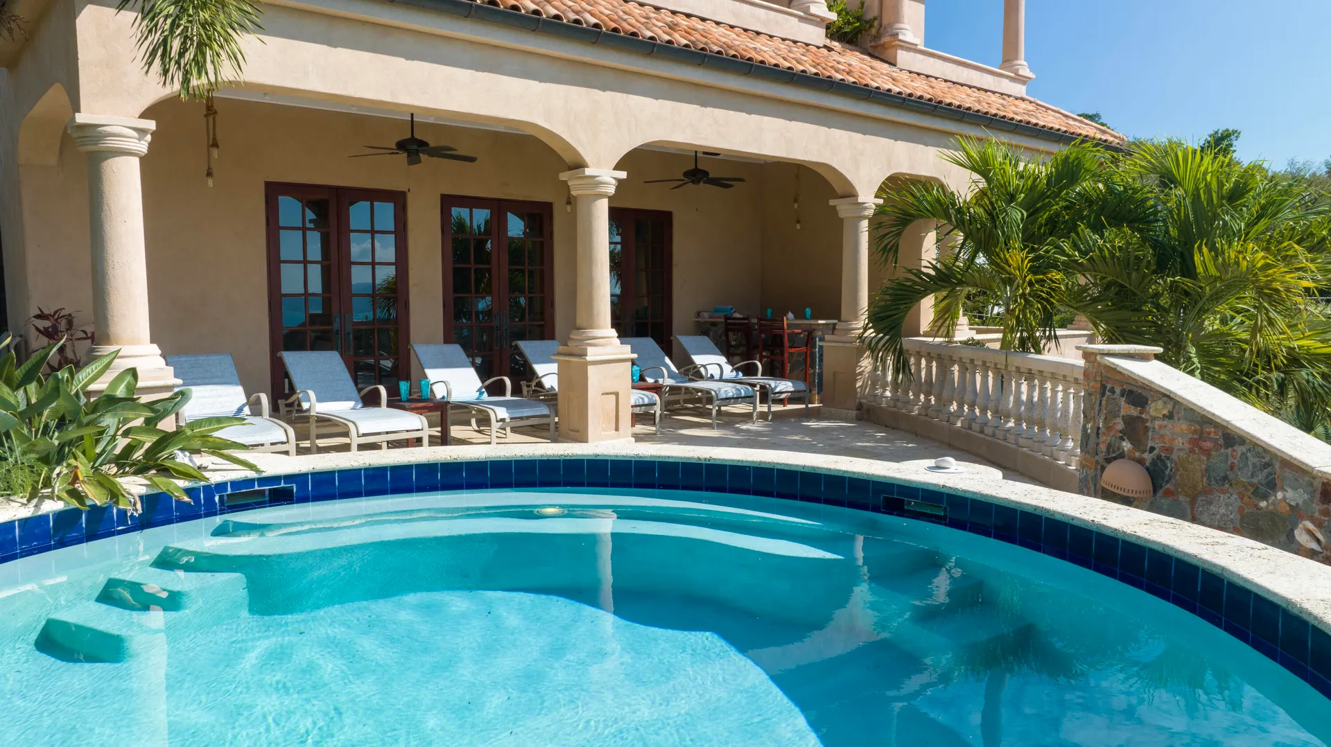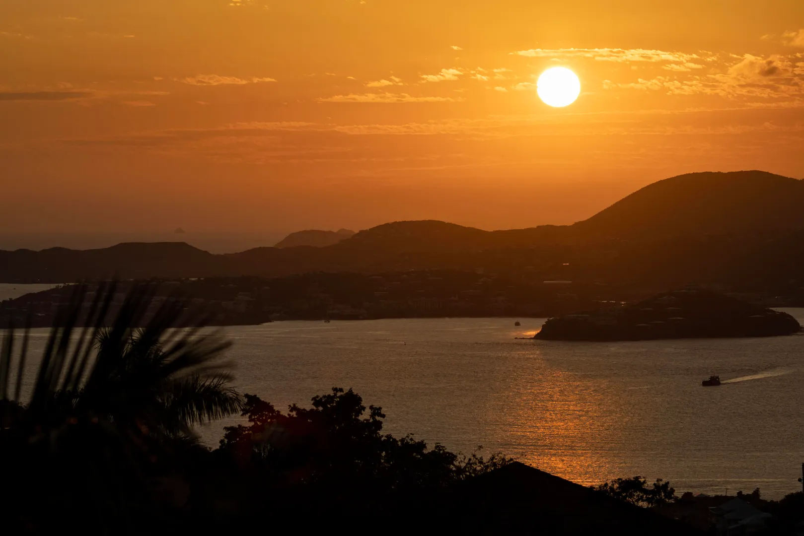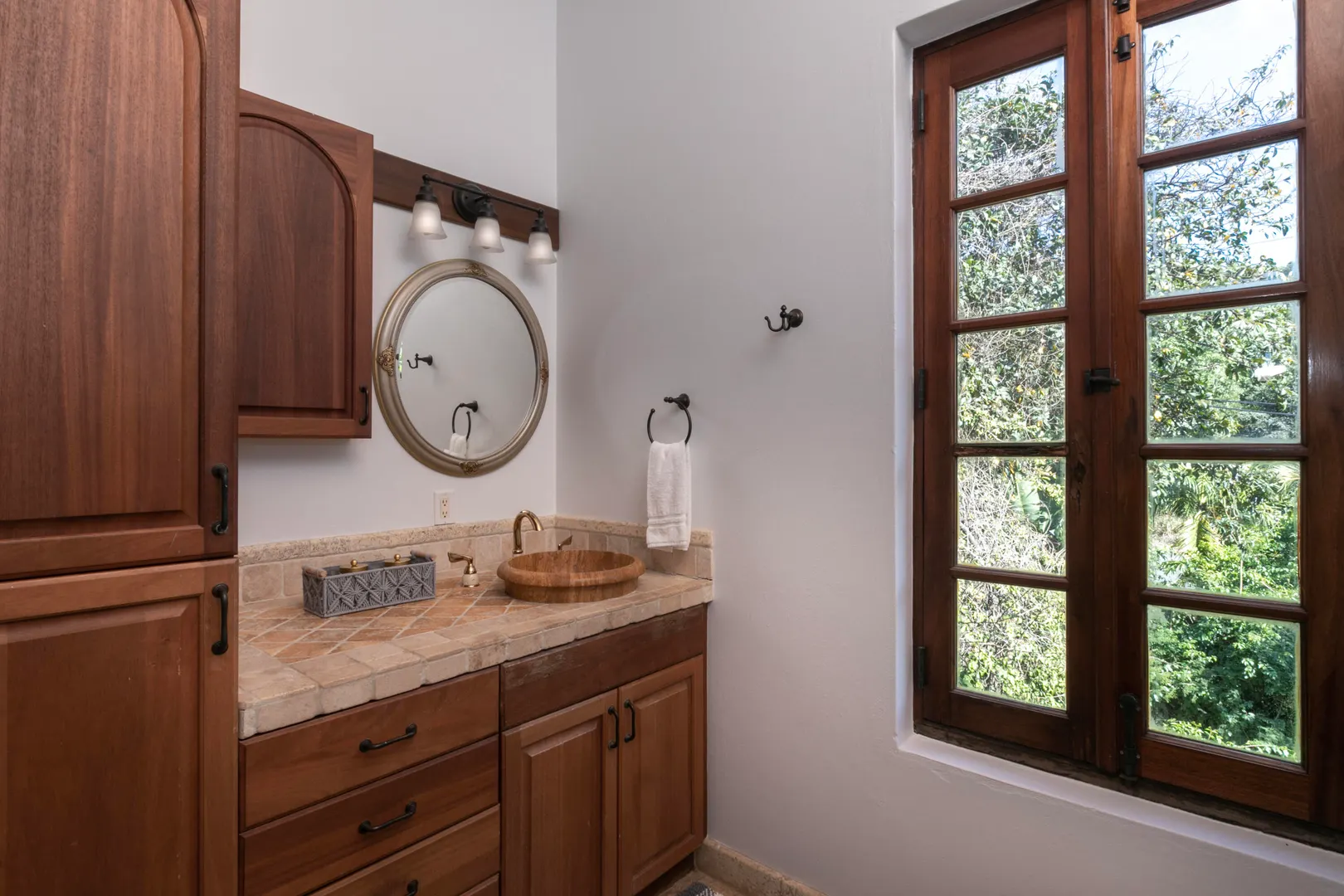 Casa Sonadores, the Dreamers' House, lives up to its name. Set within the gated heights of Virgin Grande Estates and framed by sweeping south-to-west views that capture St. Croix, Pillsbury Sound, and year-round sunsets, this elegantly crafted Michael Oxman villa blends timeless Caribbean design with thoughtful modern upgrades. A private gated entry leads to a gracious courtyard and stonework details that set the tone for the home's quality. Coral stone floors, custom mahogany doors and windows, soaring 12-foot ceilings, and hand-selected architectural finishes run throughout. The main terrace features a round pool and generous outdoor dining. A true Dreamers' House--crafted with vision, enhanced with care, and ready for its next chapter.The residence offers spacious bedroom suites with King beds, private verandas, travertine-and-coral stone baths, and two outdoor showers. Below, a 1,000-sq-ft game and bunk room creates a retreat of its own with TVs, billiard tables, two sets of bunks and arcade gamesideal as an extra space for fun and extra sleeping accommodation.