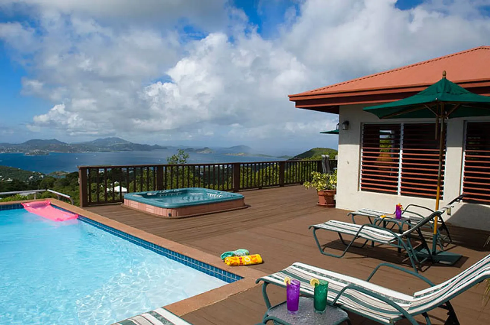''Sunset Serenade'' is a well-built masonry home with stunning, unobstructed 180 degree views of St. Thomas, Pillsbury Sound and beyond. Privately situated at the end of a country road, you can enjoy breath taking sunset views from the spacious deck area with pool and hot tub. Main house is a comfortable 2 bd x 2 bath with a well equipped kitchen, large great room and is currently in a short term rental program. The lower apartment has separate entry & driveway and is a spacious 1 bd x 1 bath with full kitchen, living/dining area with deck that also enjoys nice views. Apartment currently has a long term caretaker tenant. *Buyer & Seller shall equally split the transfer tax. *Please note this property is in probate.