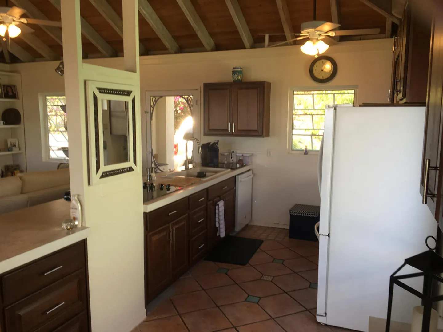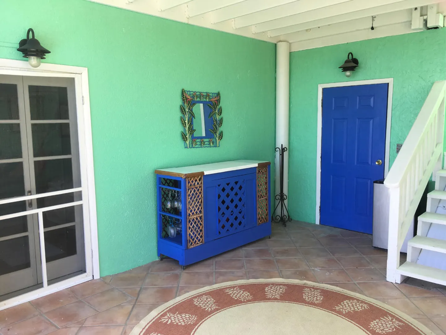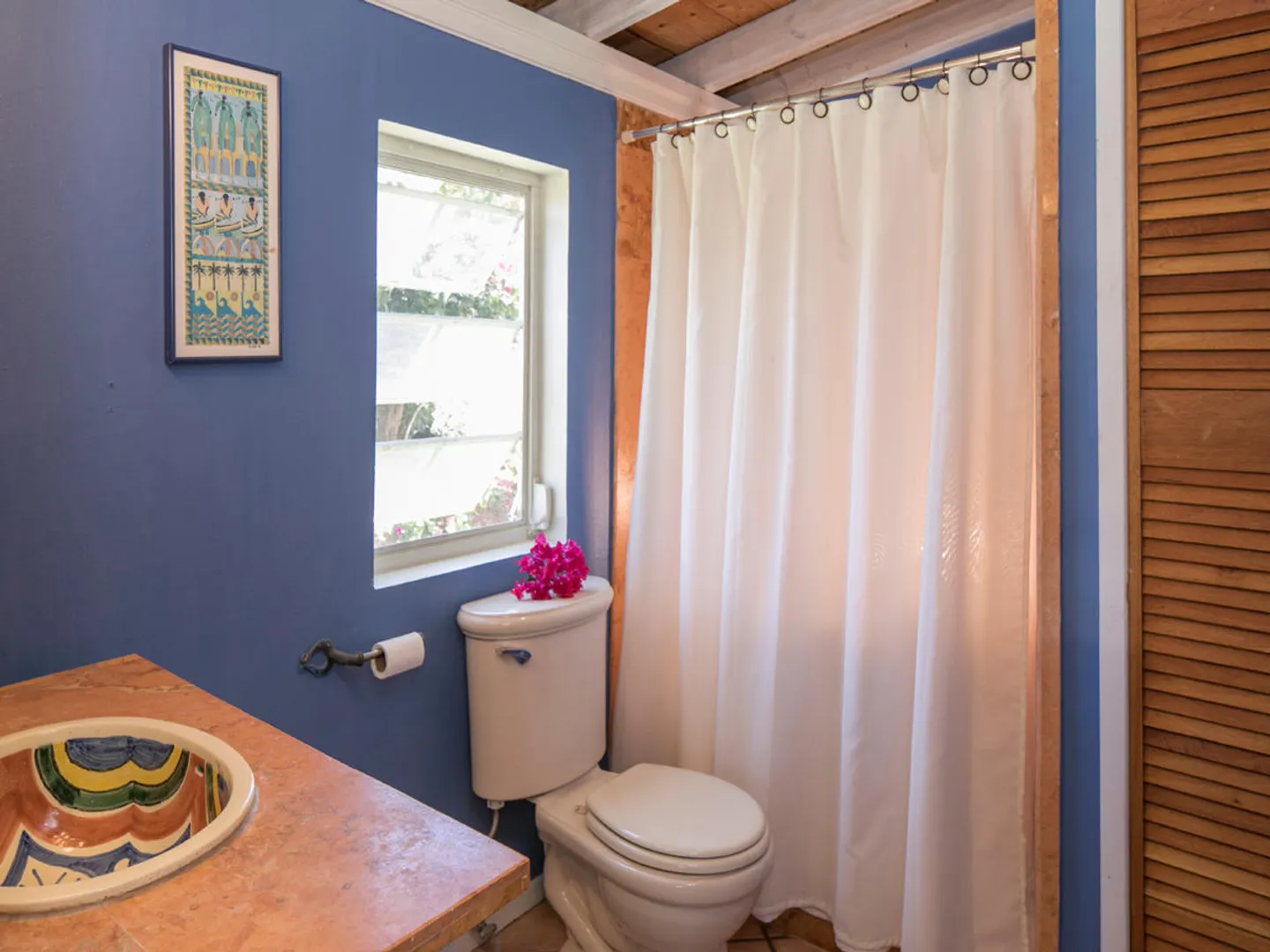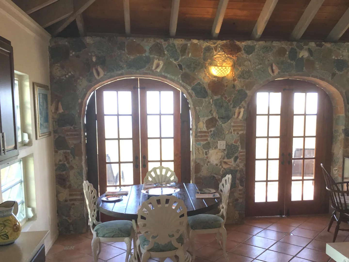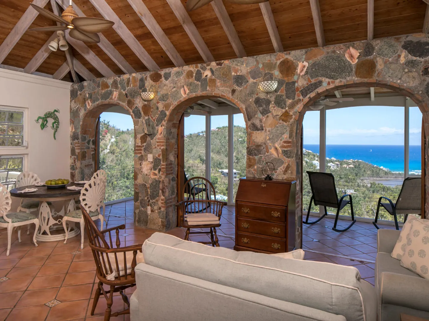 'Caribbean Colors' is a recently renovated all masonry home in upscale Chocolate Hole North. Motivated sellers. Features include a large pool deck, native stone arches, and an interior staircase to lower bedrooms. It faces southeast to catch the tradewind breezes, sun and moon rises and water views of Chocolate Hole, Hart Bay and the South Shore.Just minutes from Cruz Bay and a short walk to the Westin Resort. There are many custom features such as tile floors inlaid with Mexican accent tiles, mahogany trim, hand painted bathroom sinks, and vaulted cypress ceilings. The covered, screened gallery is wonderfully cool and breezy. Other features include brand new custom kitchen, professional colorful landscaping, fruit trees, fire pit and storm shutters.