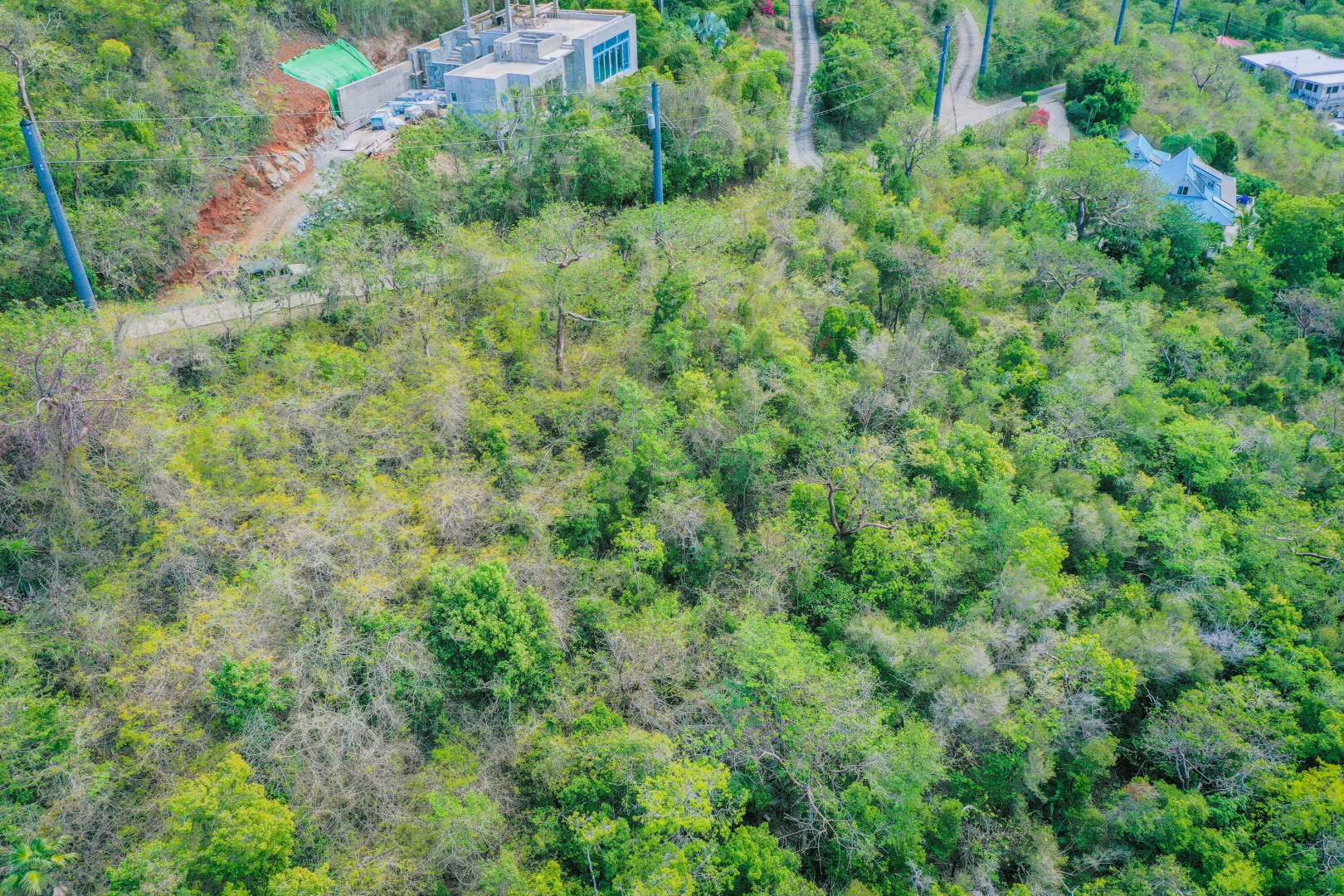 Attractive downhill build in established Estate Chocolate Hole with sunset sky views. Lovely views of Chocolate Hole and beyond from this oversized building site with a downhill slope. Paved roads and deeded beach rights to Chocolate Hole and Hart Bay.