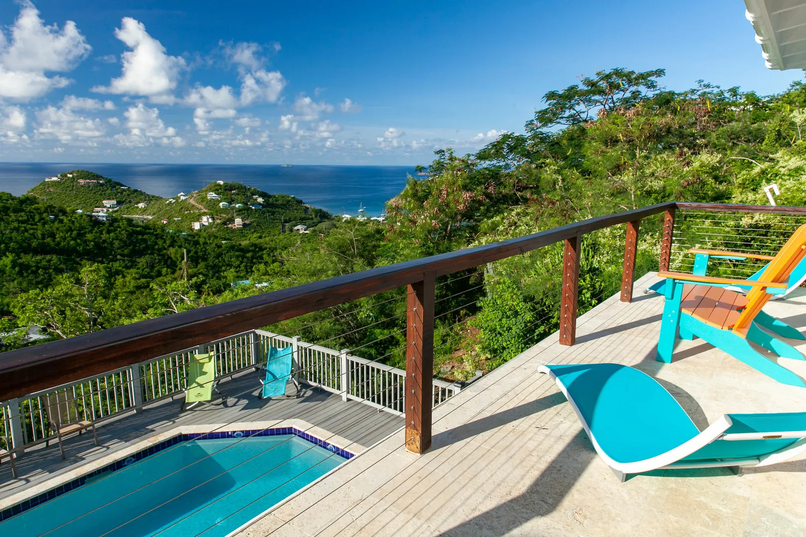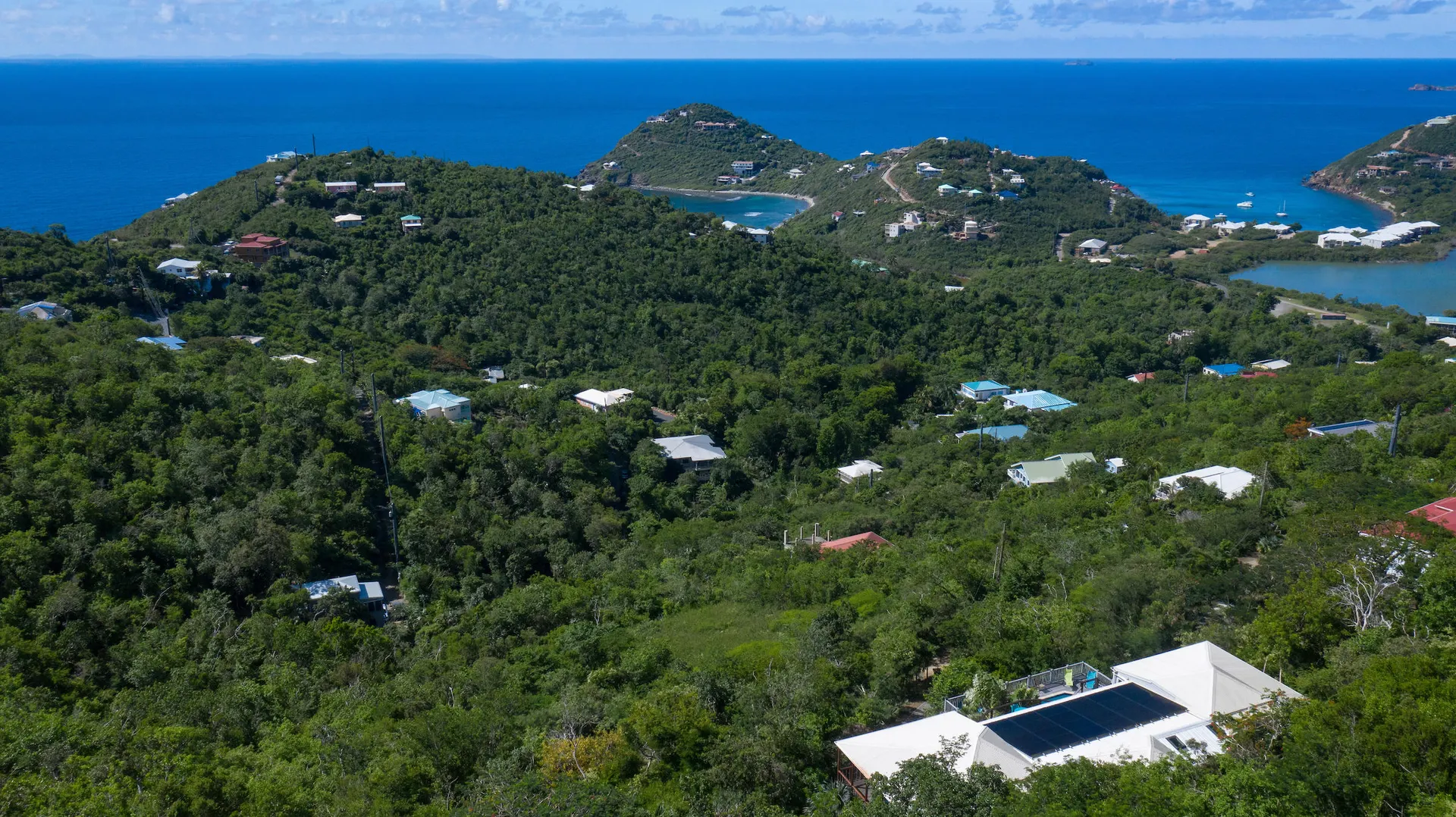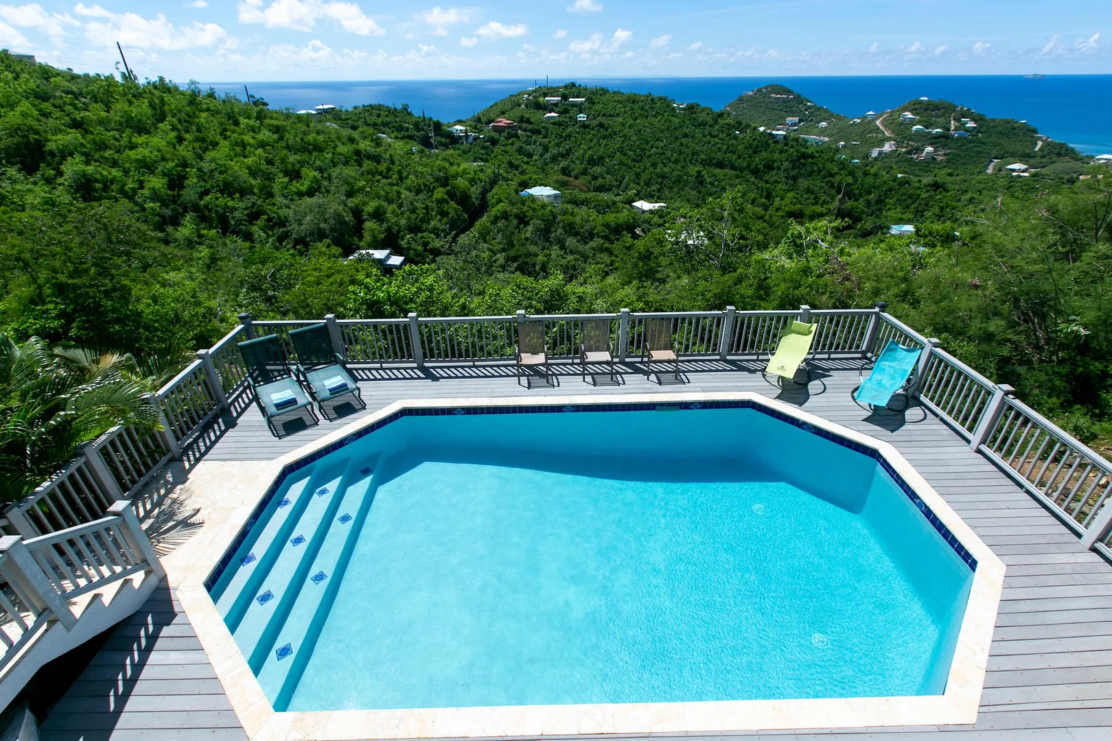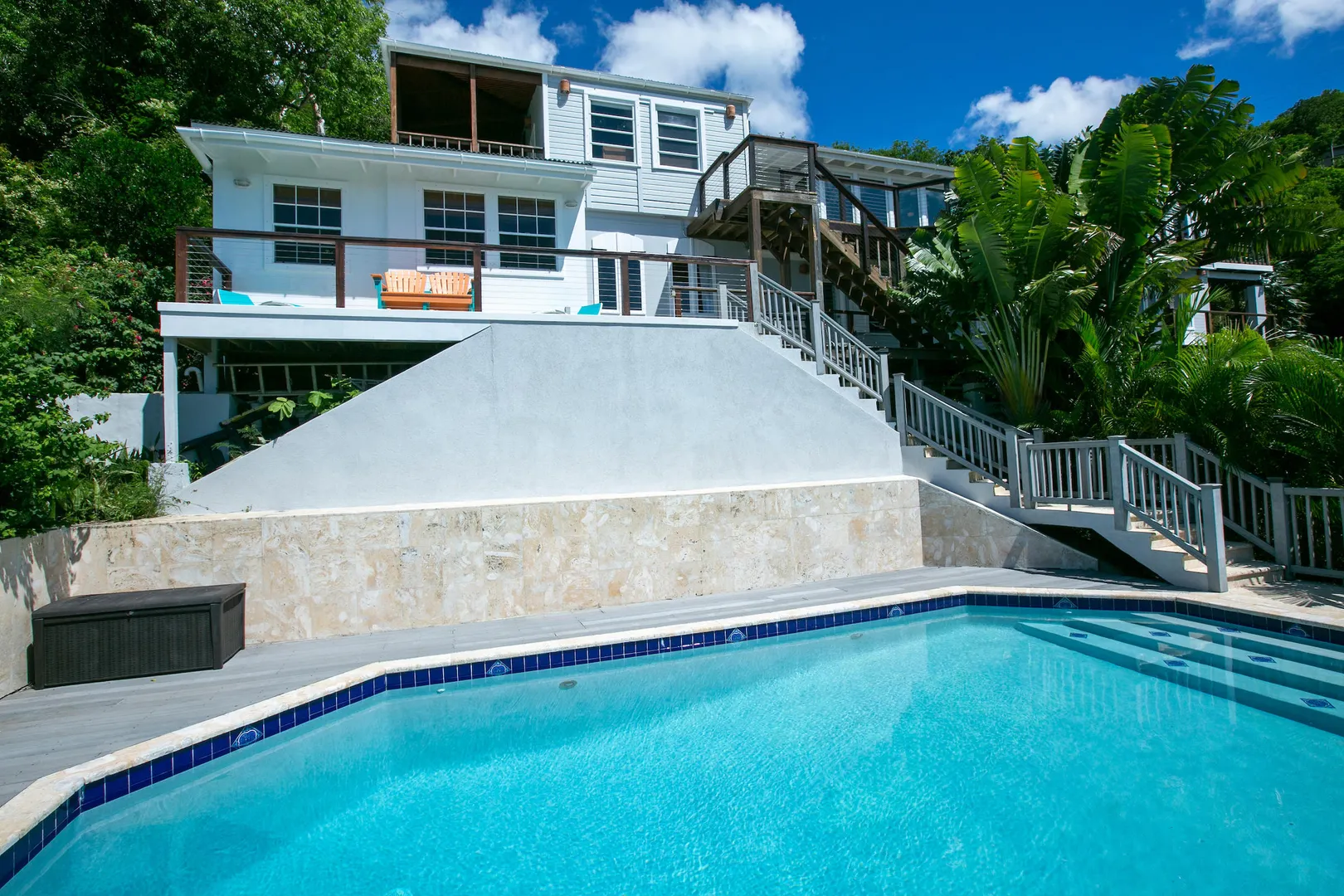 Newly renovated, fully air conditioned tropical hardwood and masonry home located in Chocolate Hole North on a private end of road site. Amenities inclue a large pool surrounded by lush landscaping, Solar power with 2 Tesla walls for backup, and expansive private and common area decks and patios. The large, bright new kitchen with eat-in bar overlooks a sunken living/dining area. Three very private bedrooms with baths en-suite plus caretaker's studio unit and 5th bedroom (currently used as owner storage). Just minutes from Cruz Bay, this location is ideal for an island home or as short term rental. New furnishings throughout complete the package.