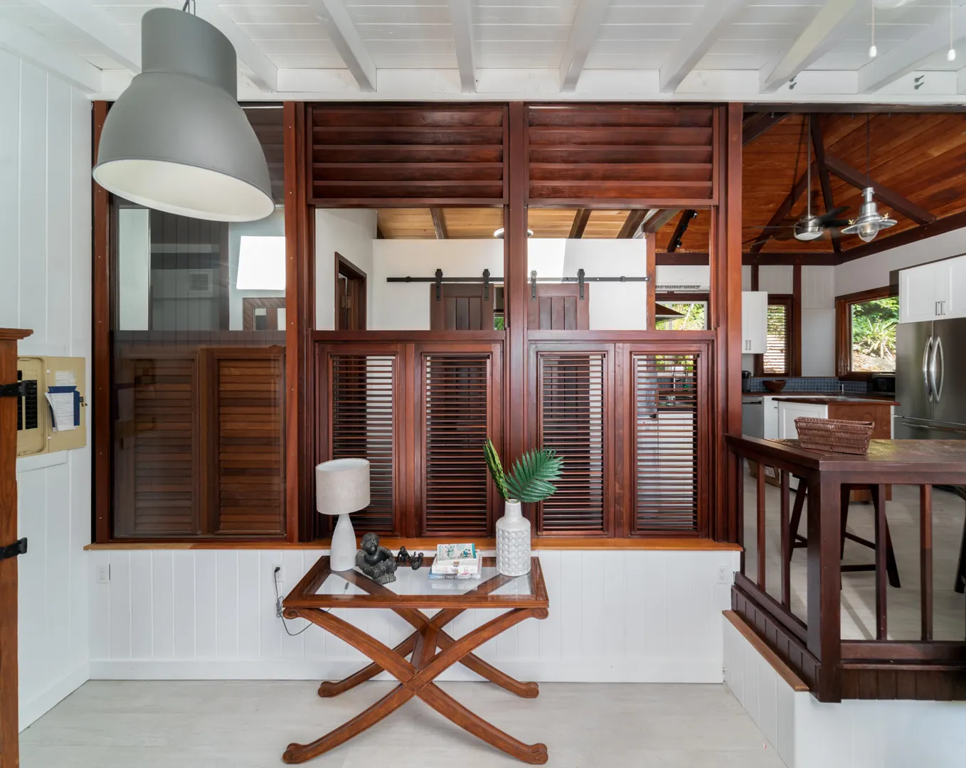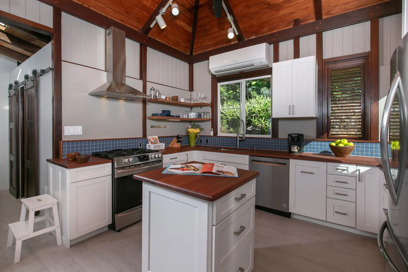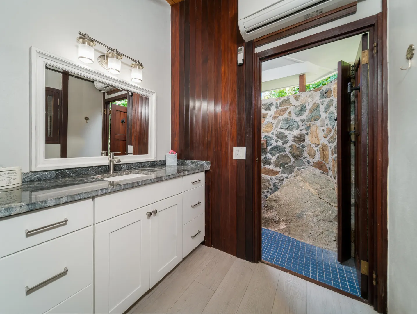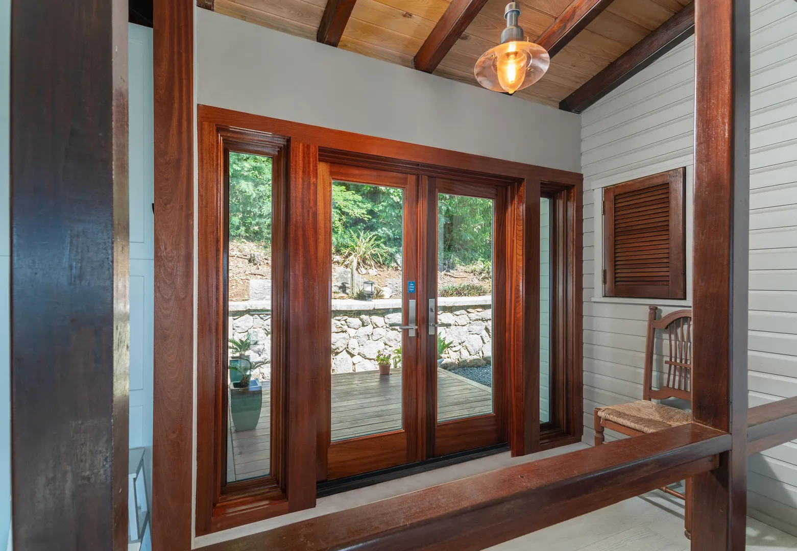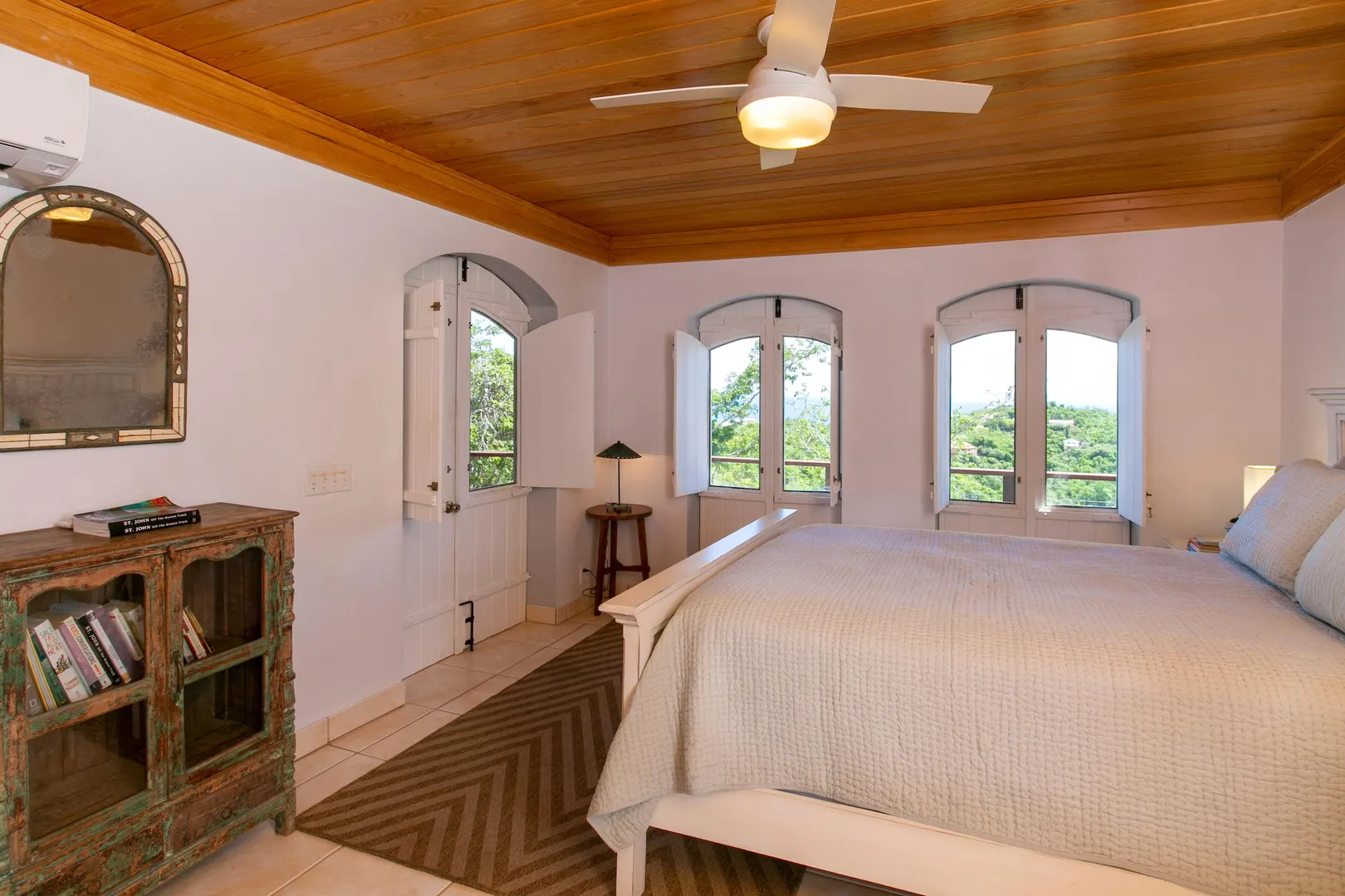 Newly renovated, fully air conditioned tropical hardwood and masonry home located in Chocolate Hole North on a private end of road site. Amenities inclue a large pool surrounded by lush landscaping, Solar power with 2 Tesla walls for backup, and expansive private and common area decks and patios. The large, bright new kitchen with eat-in bar overlooks a sunken living/dining area. Three very private bedrooms with baths en-suite plus caretaker's studio unit and 5th bedroom (currently used as owner storage). Just minutes from Cruz Bay, this location is ideal for an island home or as short term rental. New furnishings throughout complete the package.