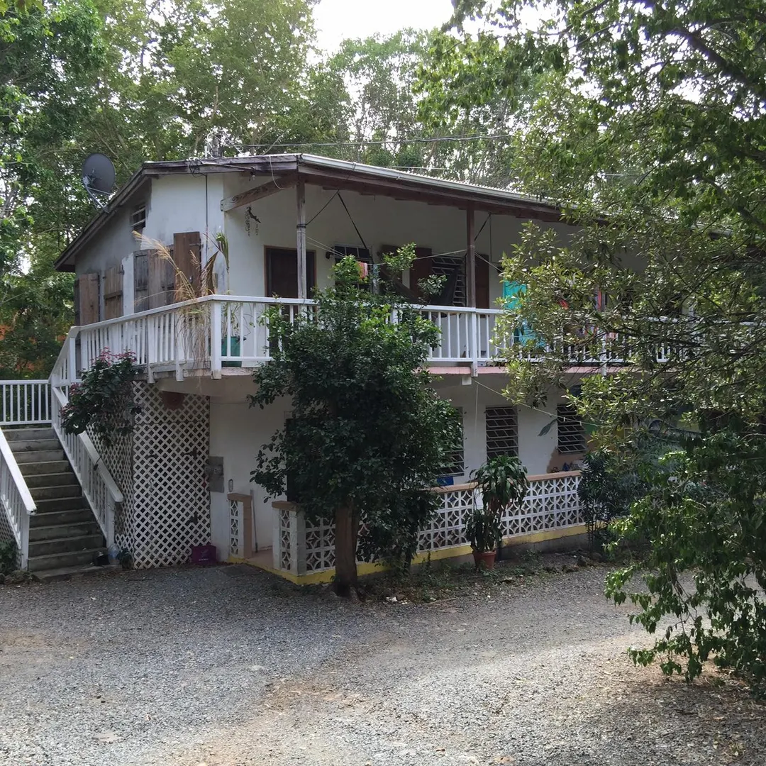 Impressive long-term rental income from this 2 unit masonry home in Chocolate Hole East. The upper level 3 bedroom, 2 bath unit rents for $1800, and the lower 2 bedroom, 1 bath unit for $1300 monthly. Separate cisterns & electric meters for each level. Ideal set up for a new owner to live in one unit, and rent the other to help pay the mortgage. Plenty of flat parking area for many vehicles, gentle valley location, convenient to town. Property sold in as-is condition.