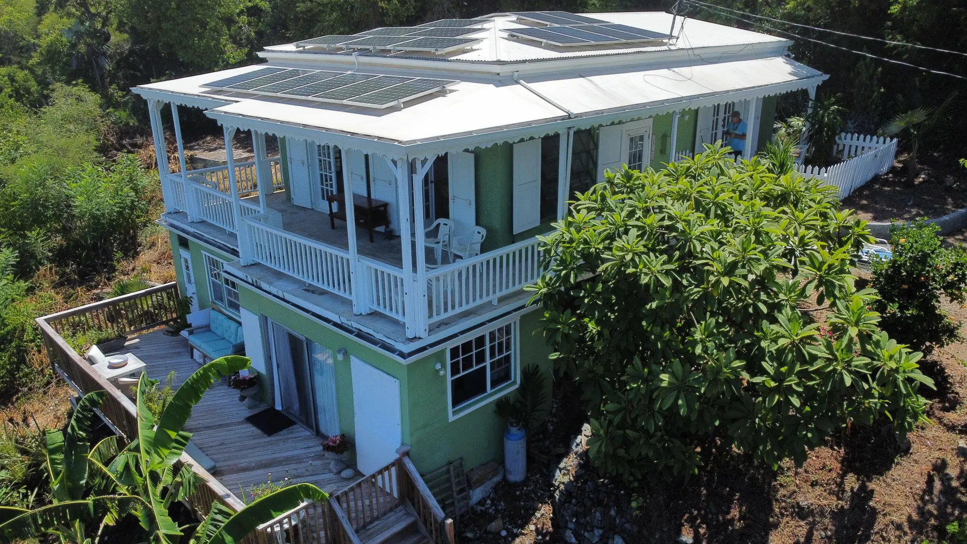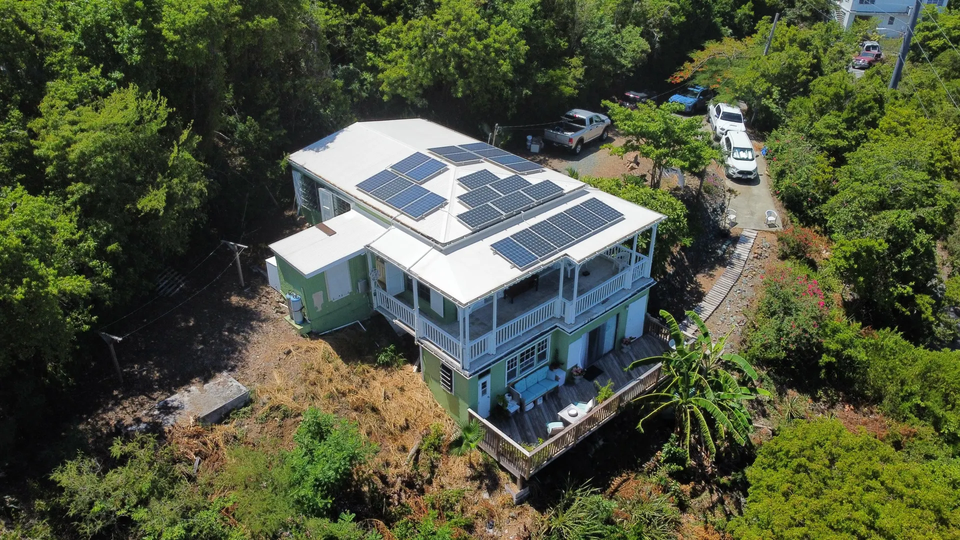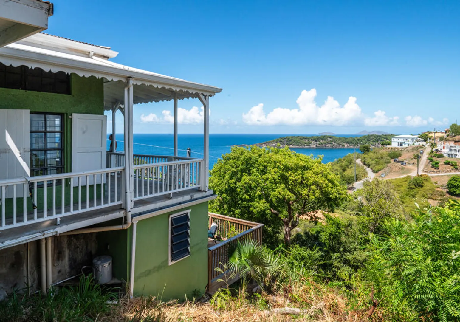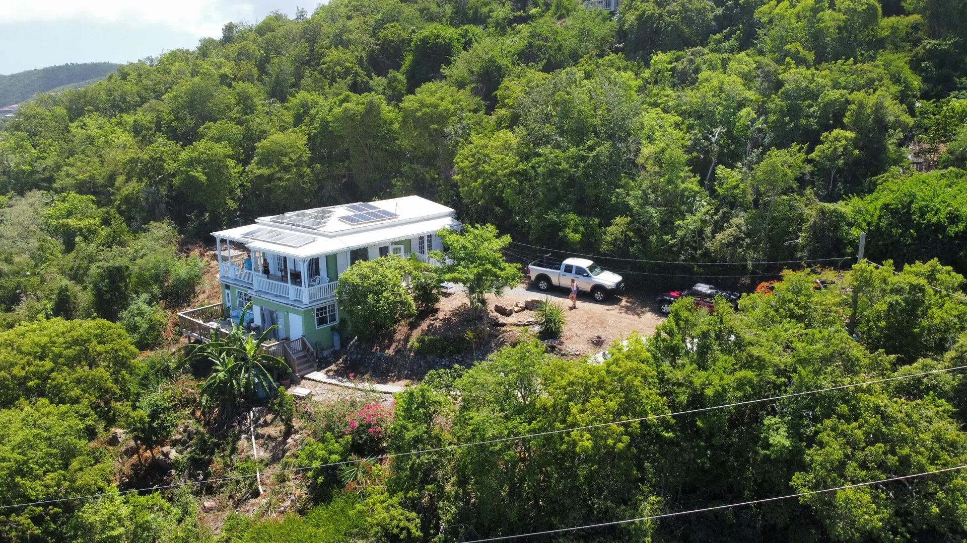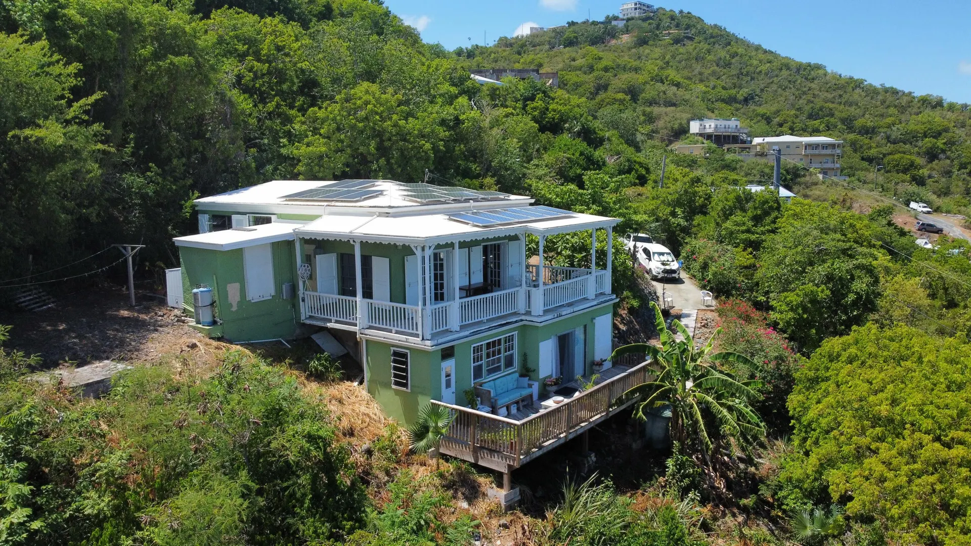 Adorable masonry cottage on the East End with income producing studio apartment. Full solar array with Tesla powerwall.High on the hillside with beautiful views and pleasant breezes. Large, semi flat lot and nice driveway. Bonus storage room.