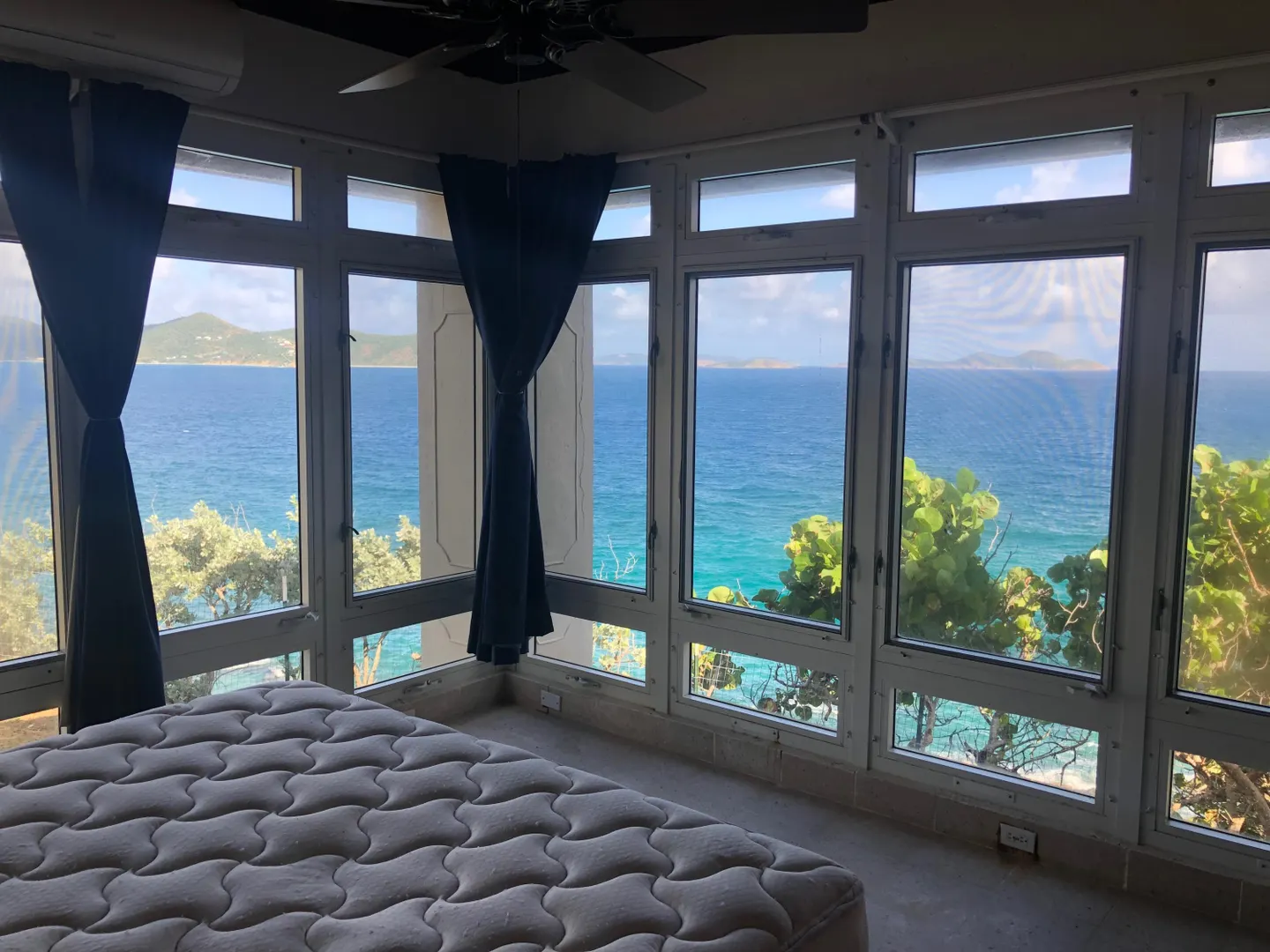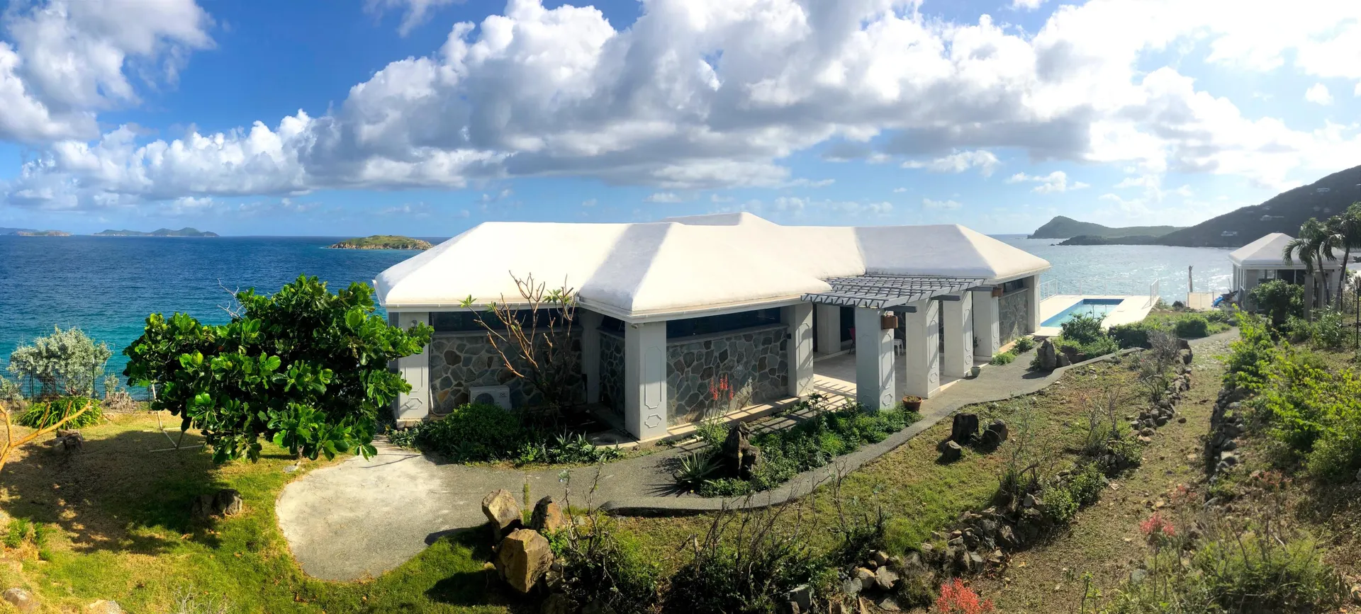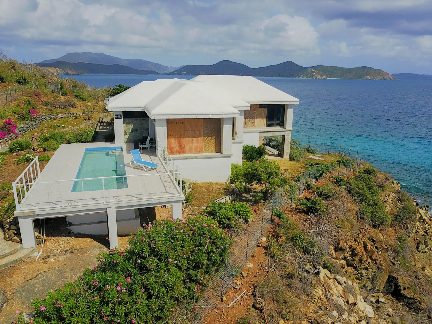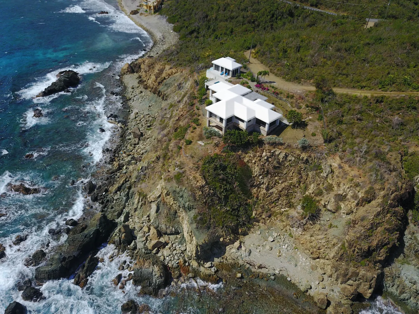 ''Maison Miele'' is a three bedroom, three bath breathtaking home with stunning ocean views in Coral Bay. This home was custom designed for a chemical sensitive individual. All building materials with Volatile Organic Compounds (VOC). Open unobstructed ventilation with quality indoor air, and constant cooling tradewind breezes. High performance sustainable architecture and construction methods that ensure longevity, save energy and have low environmental impact. Sustainable design and construction to capture spectacular views and wind as if from the bow of a ship. Panoramic views in a very private waterfront setting, 75 feet above the ocean. Home sustained damage in hurricanes.
