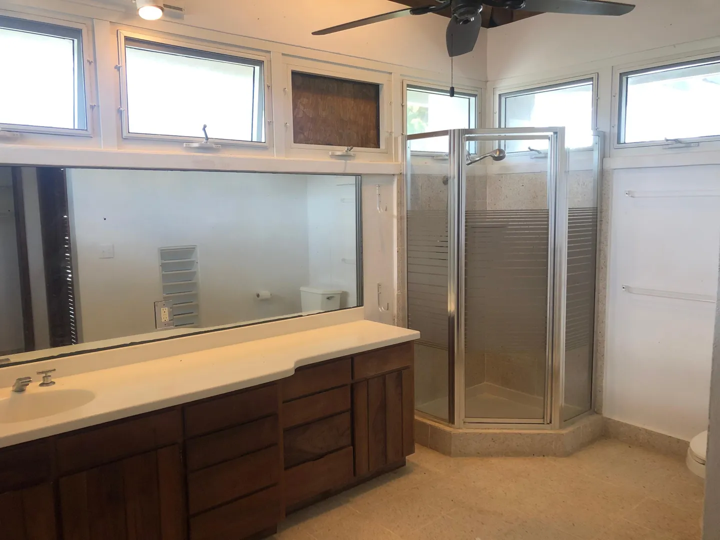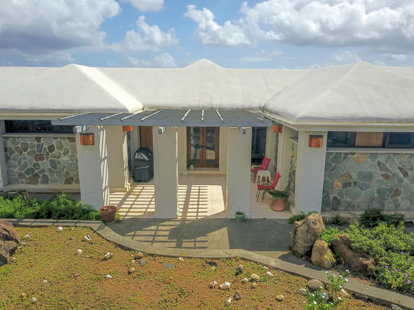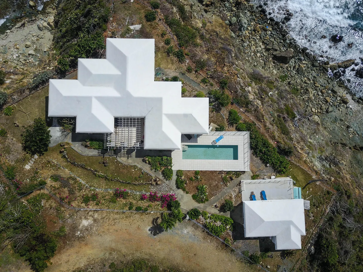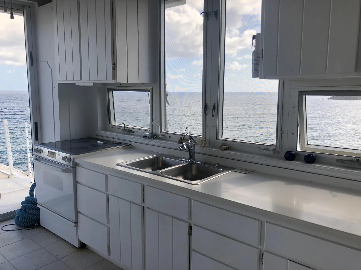 ''Maison Miele'' is a three bedroom, three bath breathtaking home with stunning ocean views in Coral Bay. This home was custom designed for a chemical sensitive individual. All building materials with Volatile Organic Compounds (VOC). Open unobstructed ventilation with quality indoor air, and constant cooling tradewind breezes. High performance sustainable architecture and construction methods that ensure longevity, save energy and have low environmental impact. Sustainable design and construction to capture spectacular views and wind as if from the bow of a ship. Panoramic views in a very private waterfront setting, 75 feet above the ocean. Home sustained damage in hurricanes.