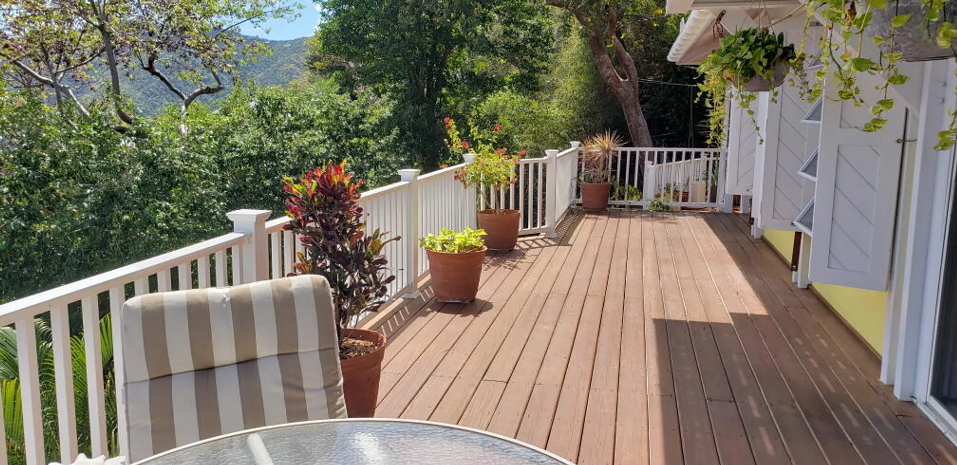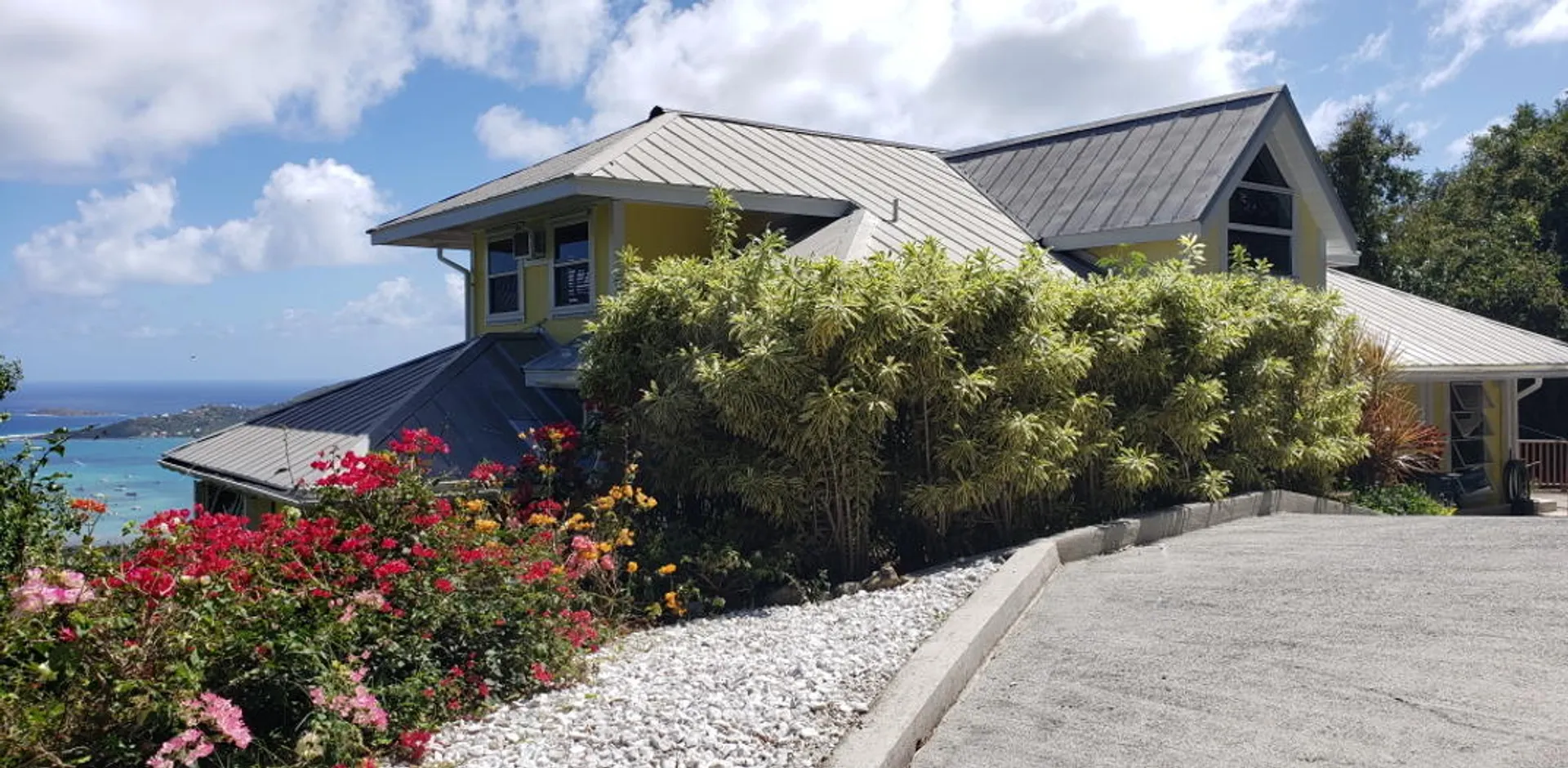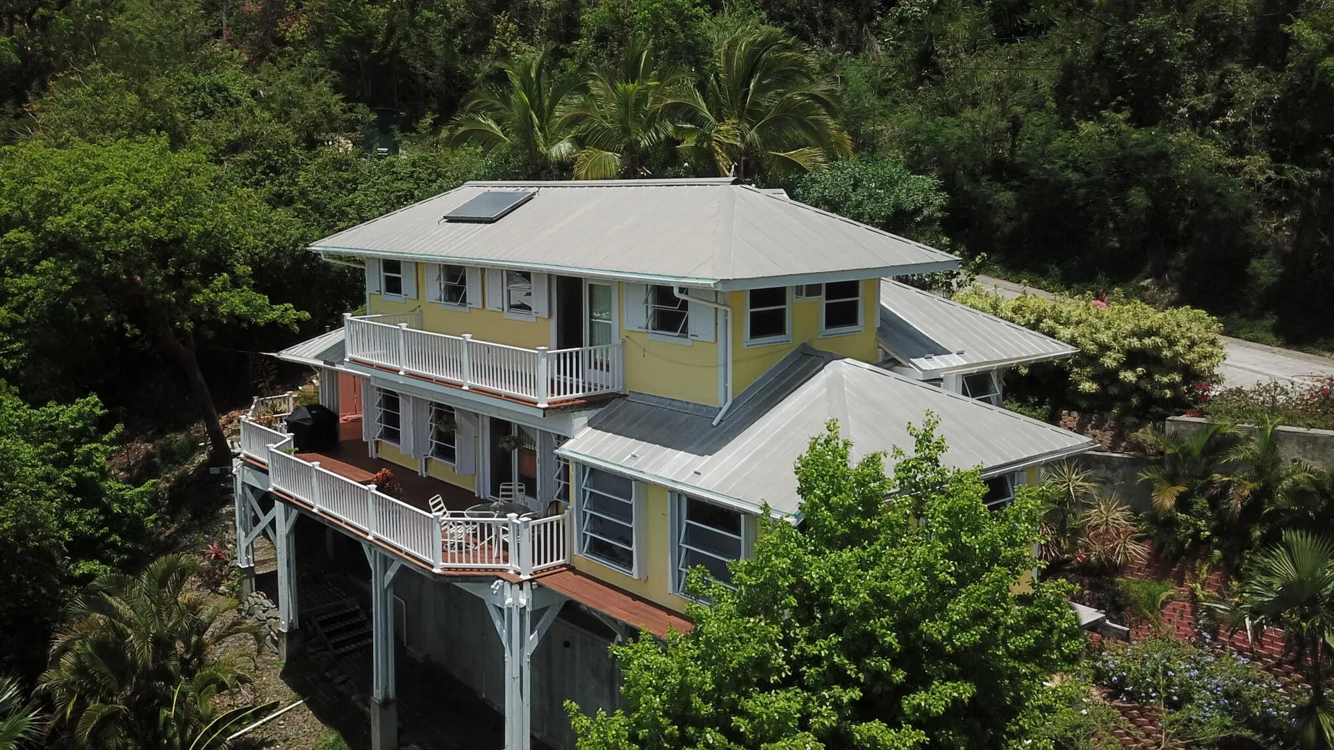Casa Amarilla (Yellow House) is a 3-bedroom/3-bath split level home in Upper Carolina with water views of Coral Bay to Norman Island. The original owners are ready to downsize. The home features an air conditioned master suite which occupies the entire upper floor, with full bath, large closets, private deck and adjoining den/office. Mid-level bedrooms are air-conditioned and have their own full bath. In the great room on the main level you'll find spacious living and dining areas and a bright airy kitchen with an island and a water view. The home is well maintained, freshly painted inside and out. Plenty of deck on three levels. The side deck was designed to support a large spa. Or it would be a perfect place to add a pool. Seller is a licensed Realtor in the USVI.