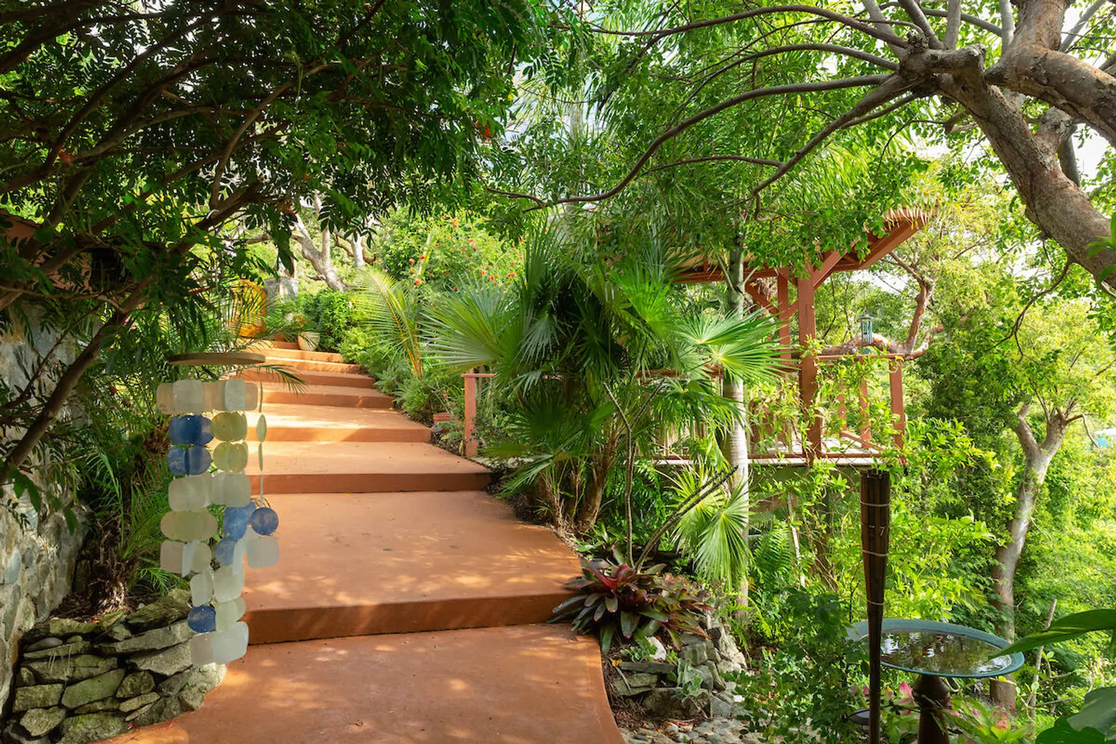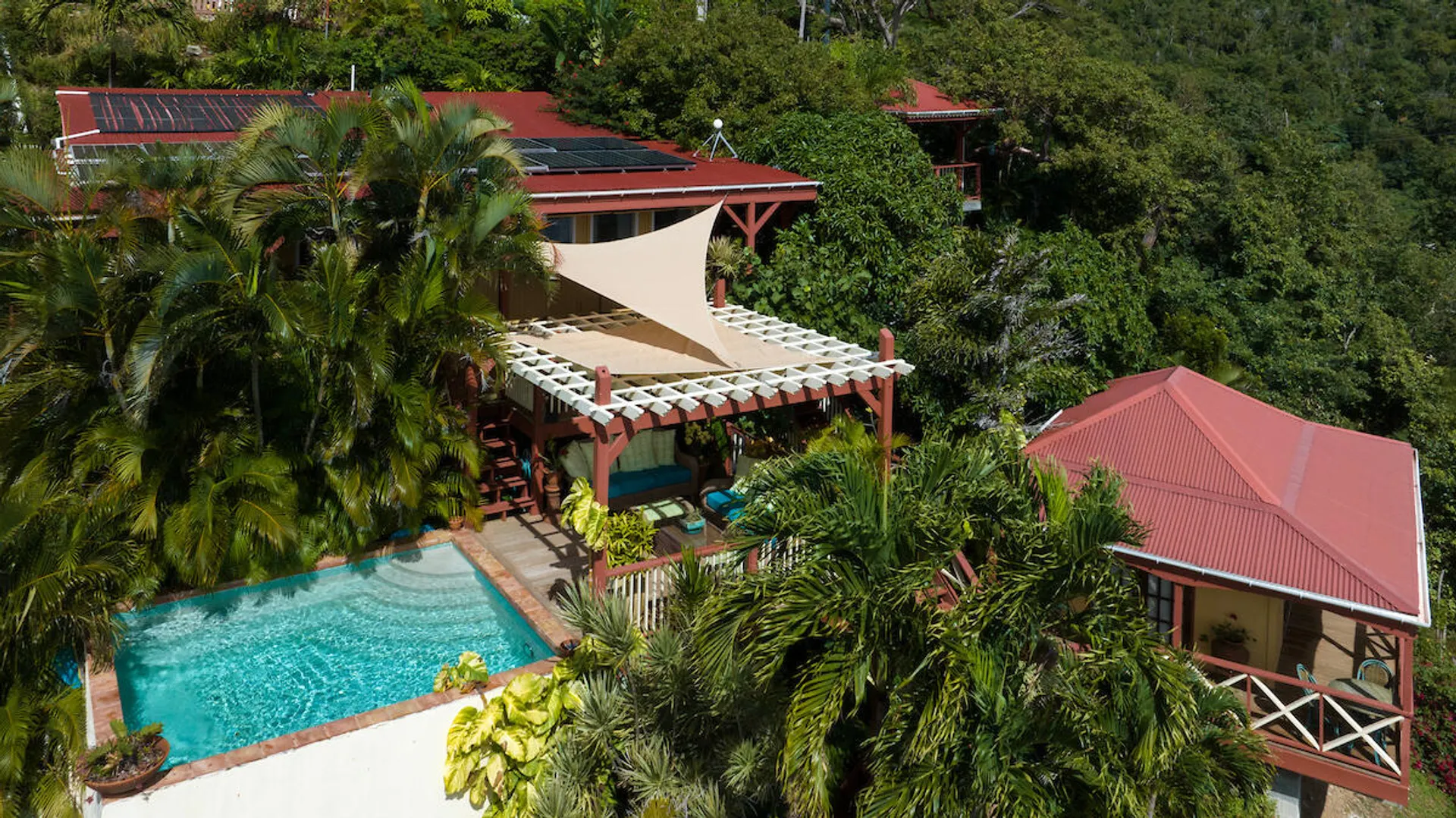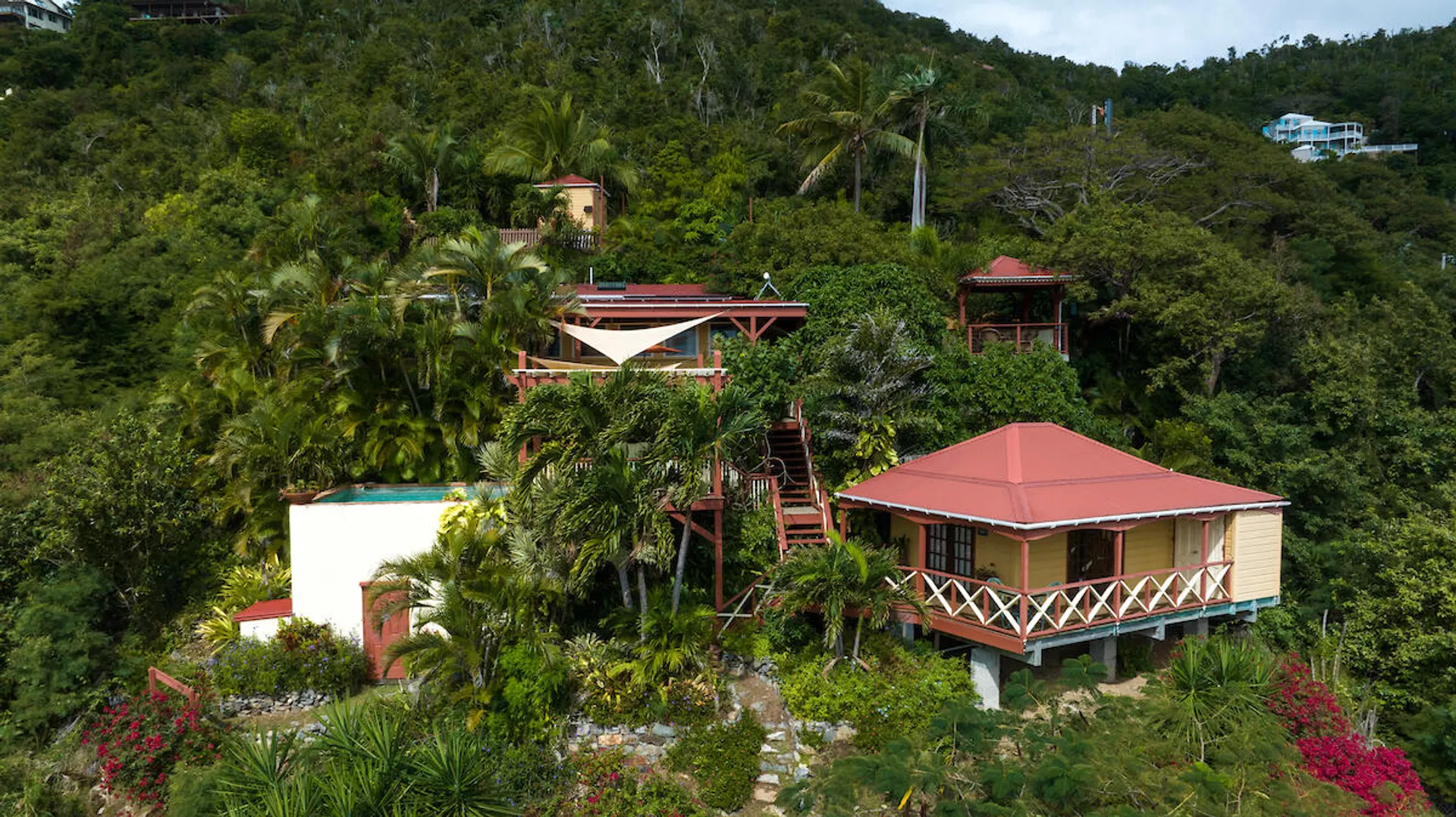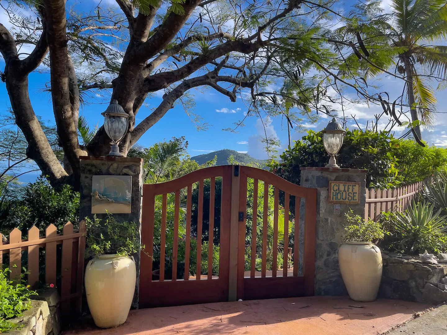 ''Cliff House'' is a lovely jewel box of a home sited on a lushly landscaped half acre that offers a picture perfect framed view of Coral Harbor and beyond. Architect designed, the cozy inviting interior is crafted of stone and rich, warm woods. It features a gated entry in a private ''end of road'' setting located in Upper Carolina with deeded beach access to Johnson's bay. This well-maintained home consists of a beautifully furnished main house with open floor plan, main house and outdoor gazebo joined together by a solar-heated saltwater dipping pool and trellised sundeck. There are multiple outdoor areas from which to enjoy the views and breezes. Currently used as a secondary private residence but could be a short-term rental if desired.