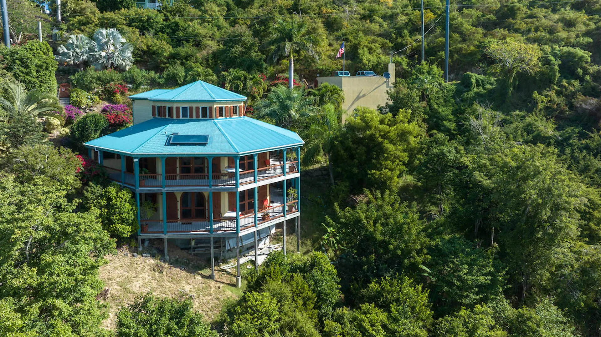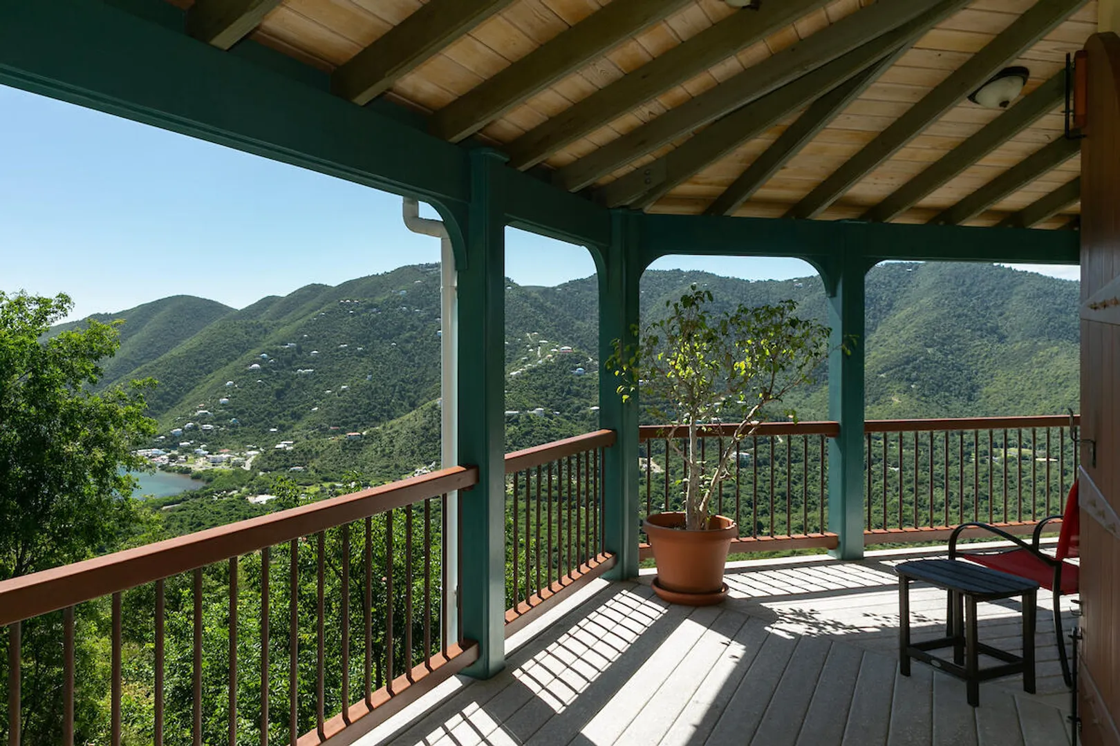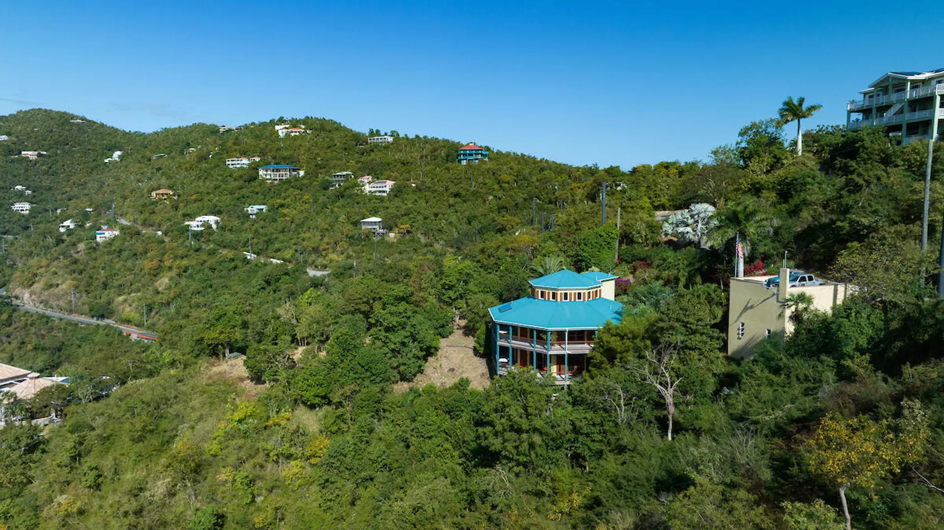 ''Angels' Roost'' is a well maintained 3 bdrm x 3 bath concrete villa on a spacious .51 acre parcel with beautiful views overlooking Coral bay harbor and Bordeaux mountain located in Upper Carolina neighborhood with paved roads and deeded beach access to Johnson's bay beach. The main level consists of a 1 bdrm and 1 loft bdrm with 2 full baths, a well-equipped studio apartment on the lower level and a large workshop located under parking pad. There is room to add a pool if desired and the flexible floorplan offers options to live in main house & rent apartment or rent the whole house. *Buyer & Seller to equally split the costs of the transfer stamp tax. Buyer shall confirm square footages and cistern capacity.