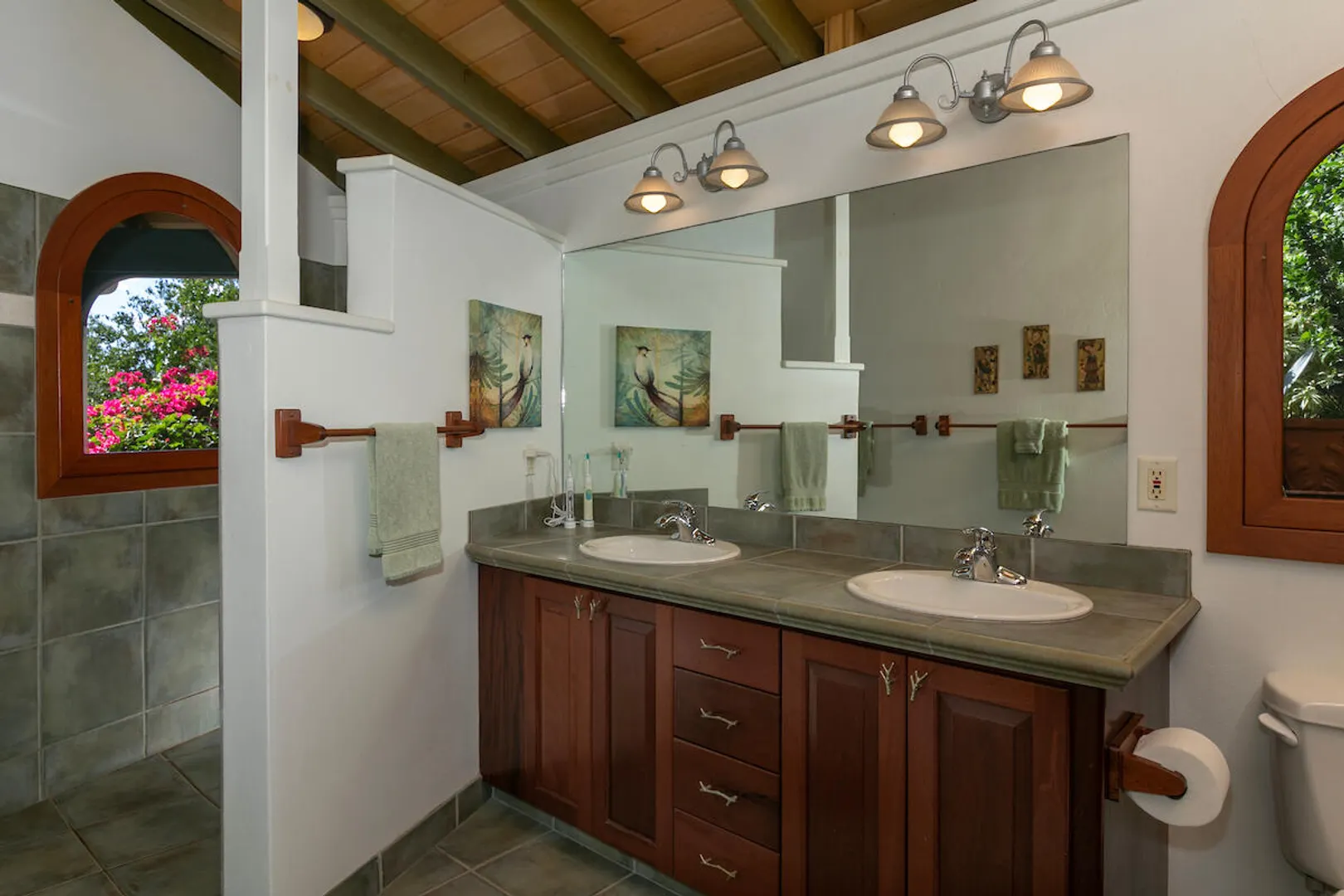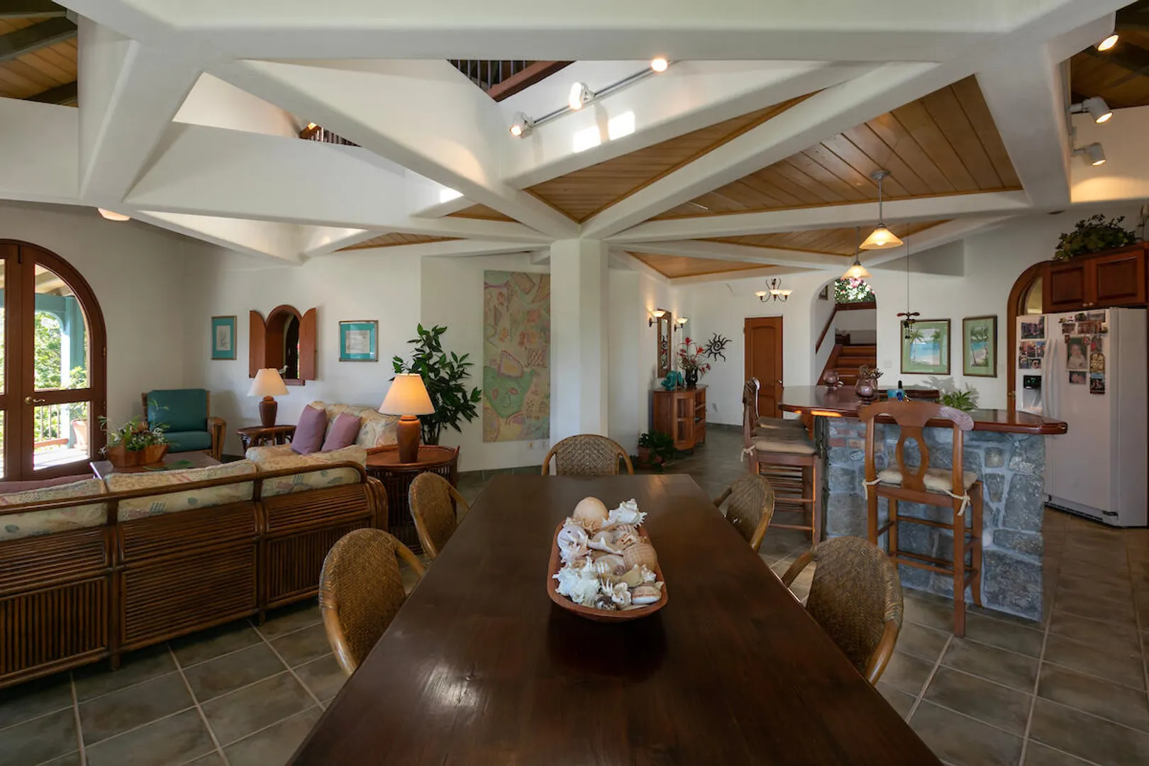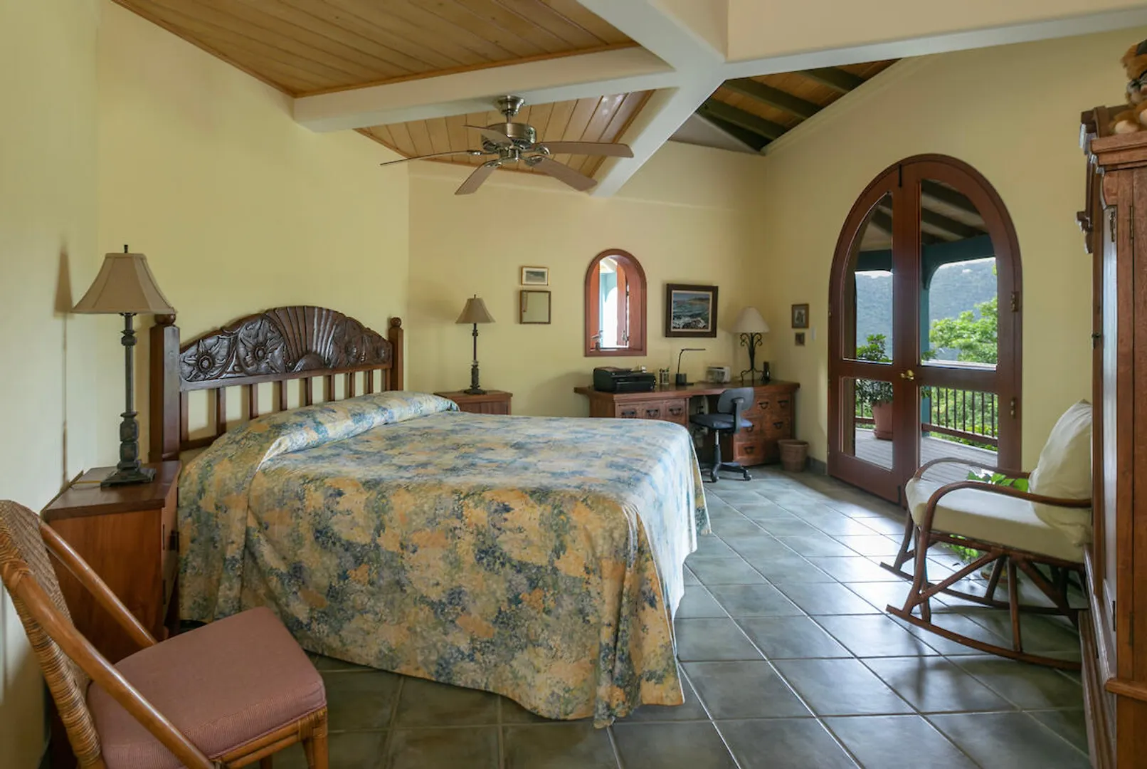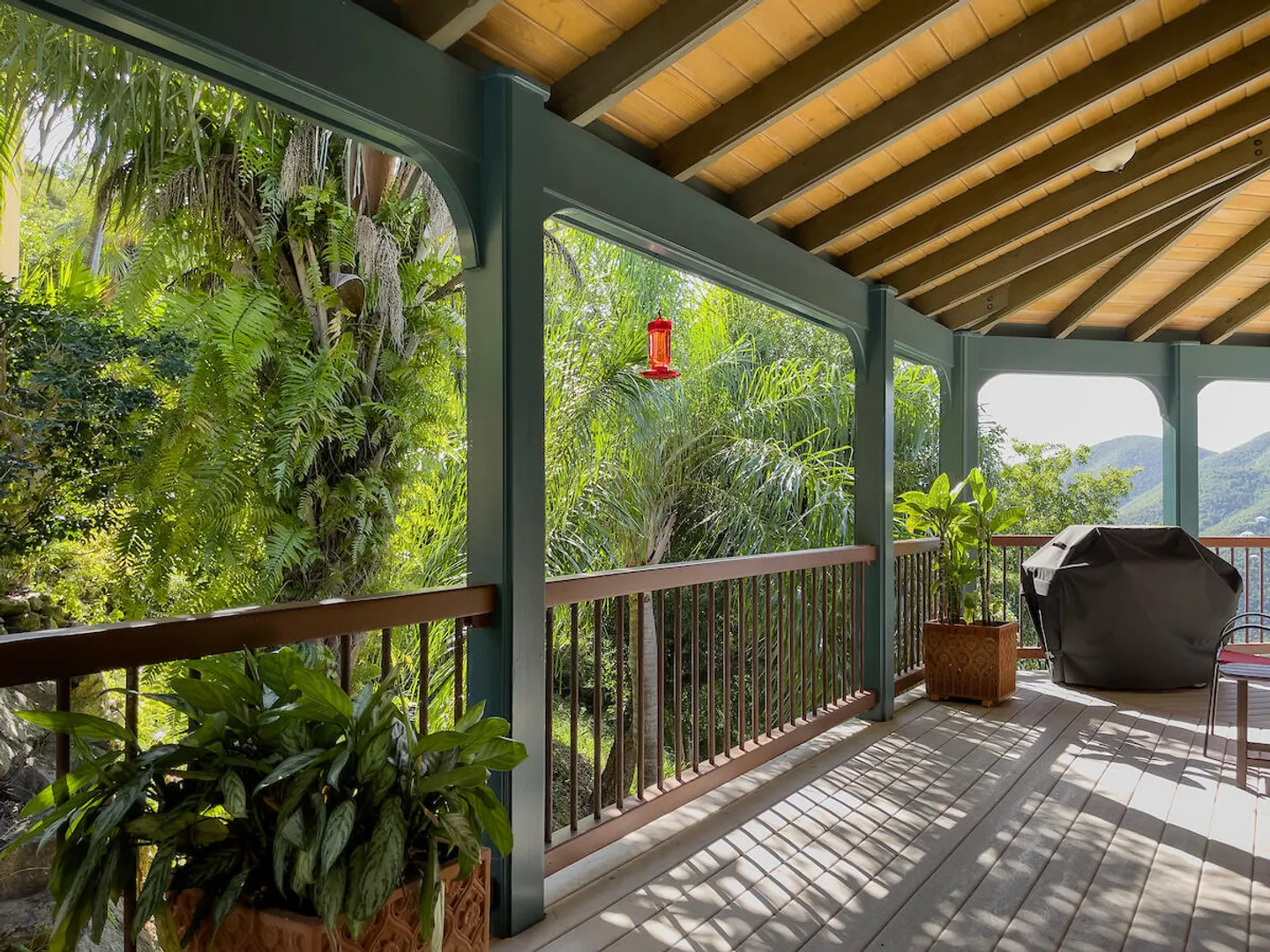''Angels' Roost'' is a well maintained 3 bdrm x 3 bath concrete villa on a spacious .51 acre parcel with beautiful views overlooking Coral bay harbor and Bordeaux mountain located in Upper Carolina neighborhood with paved roads and deeded beach access to Johnson's bay beach. The main level consists of a 1 bdrm and 1 loft bdrm with 2 full baths, a well-equipped studio apartment on the lower level and a large workshop located under parking pad. There is room to add a pool if desired and the flexible floorplan offers options to live in main house & rent apartment or rent the whole house. *Buyer & Seller to equally split the costs of the transfer stamp tax. Buyer shall confirm square footages and cistern capacity.