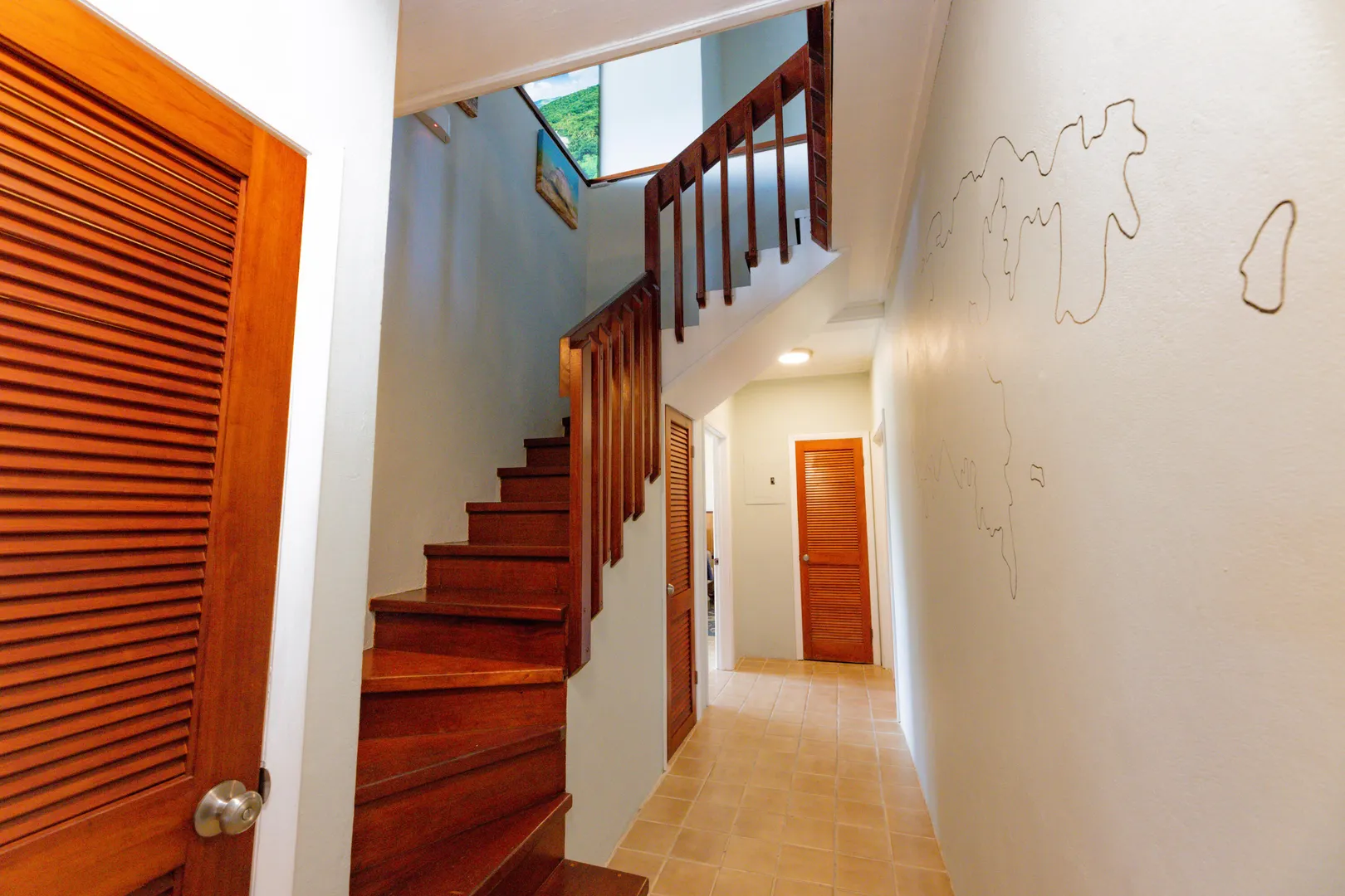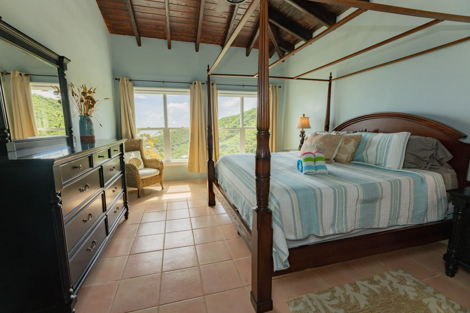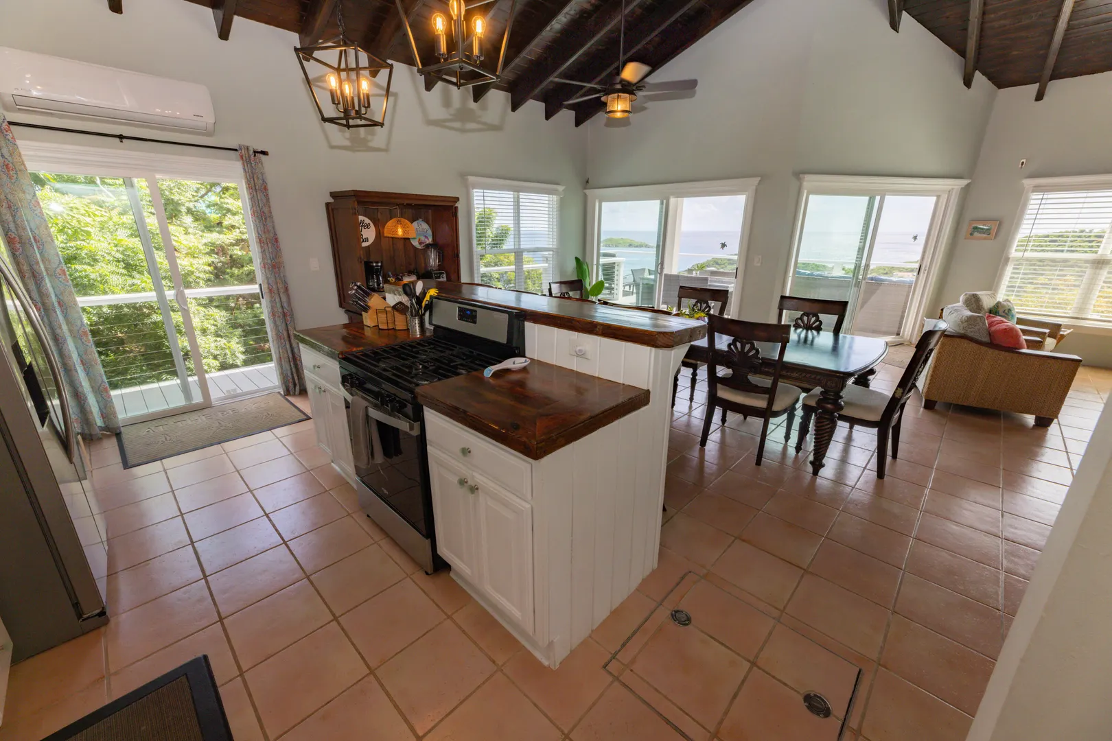 Casanita is a well-built masonry home with stunning water views across the Caribbean to the British Virgin Islands. This 3 bed 3 bath home was recently renovated with a new roof, windows, doors, hurricane shutters, appliances and more. It has an open floor plan and a spacious master suite on the main level. All of the openings on the main level are 36 inch wide door frames for easy access from room to room. An internal staircase connects to the other two bedrooms with ensuite baths and laundry room. Each bedroom has a balcony to take in the views and provides comfort with AC. The flat driveway and only two steps to the main living area and primary bedroom suite makes this home easily accessible. It would be the perfect island residence or could continue as a successful short term rental.