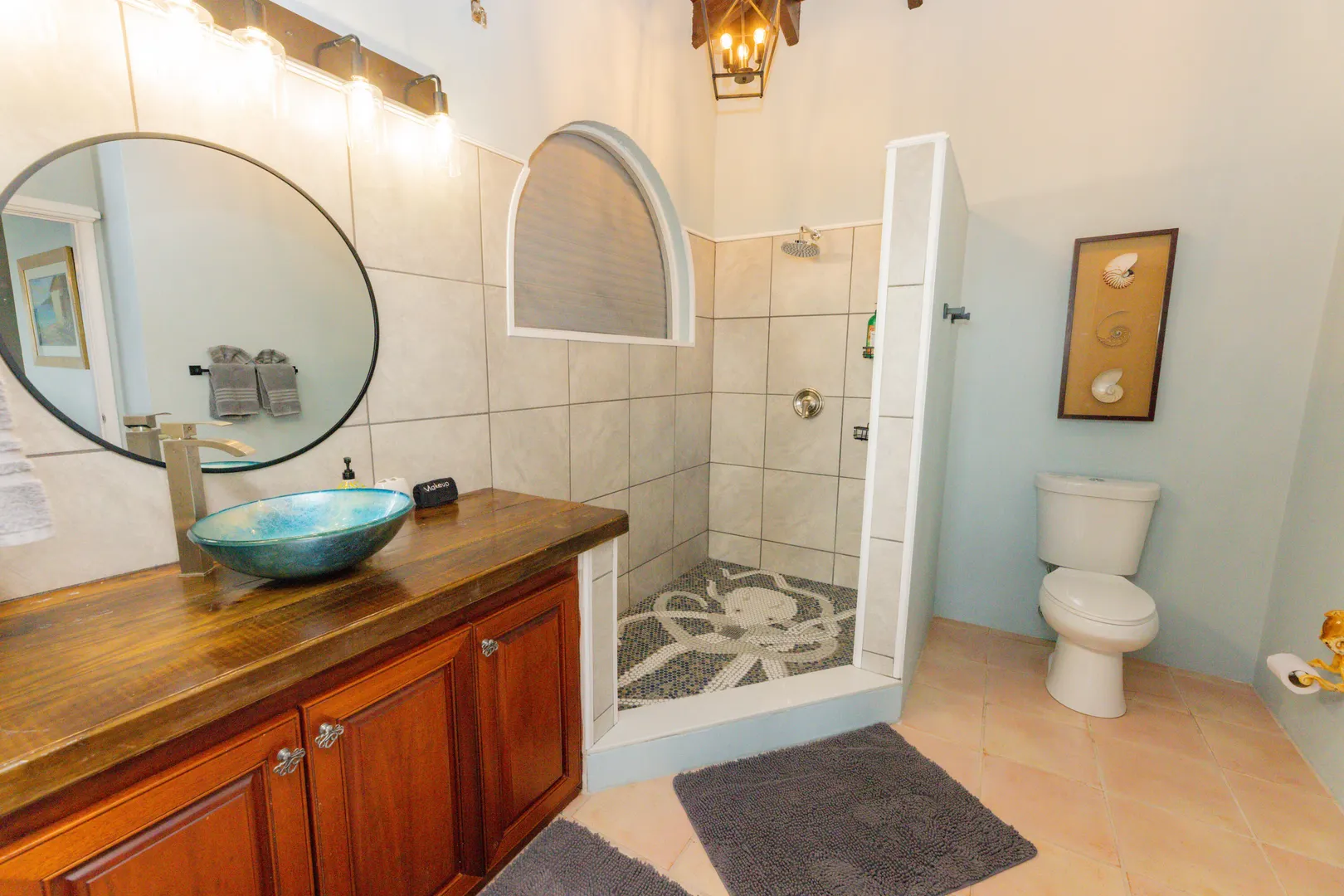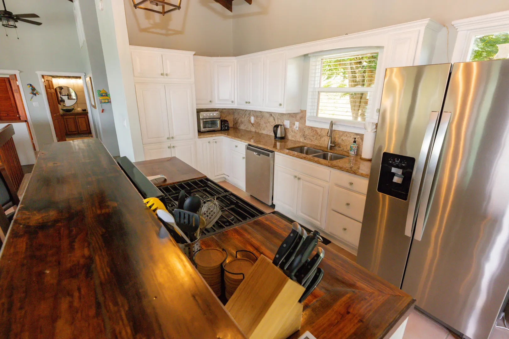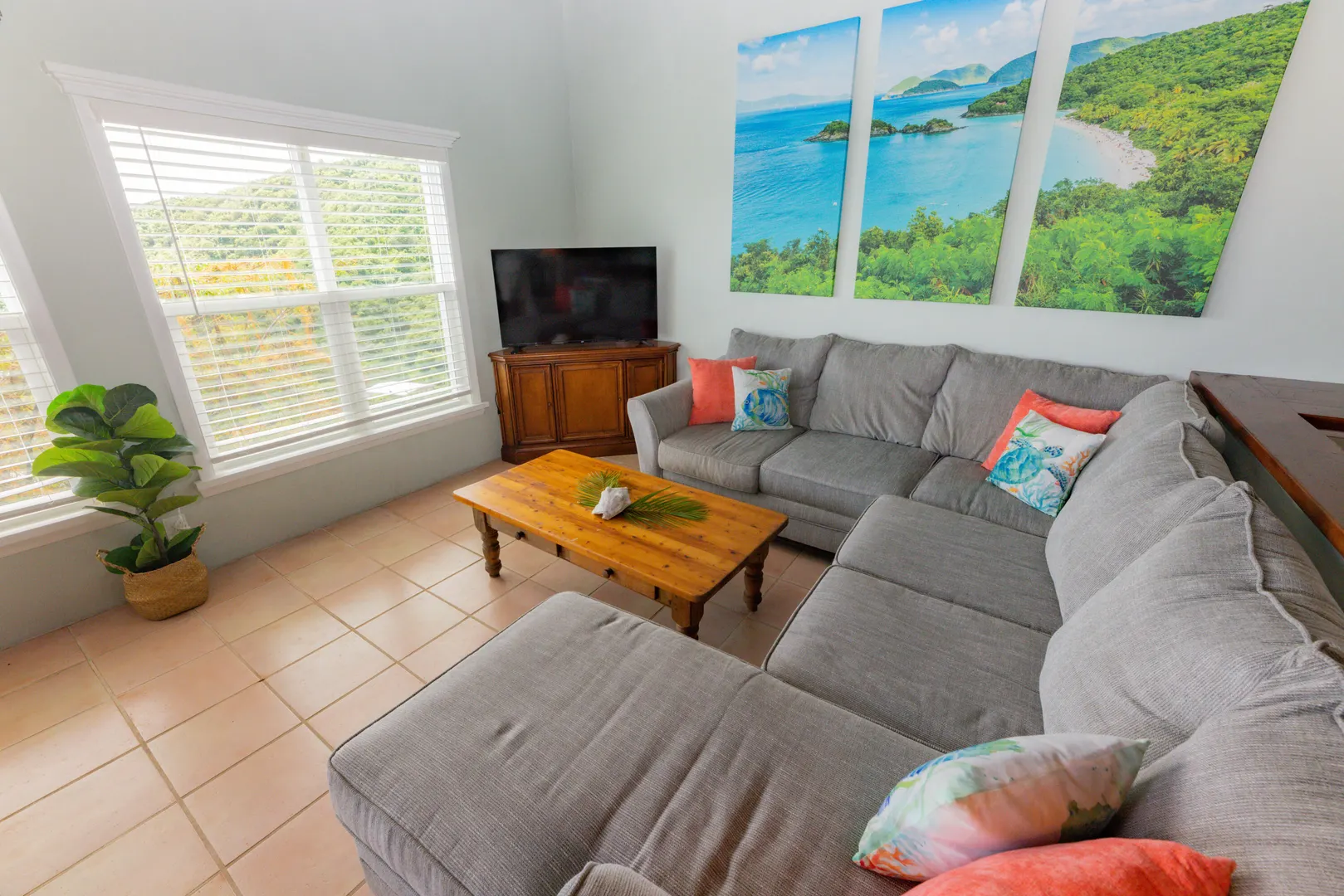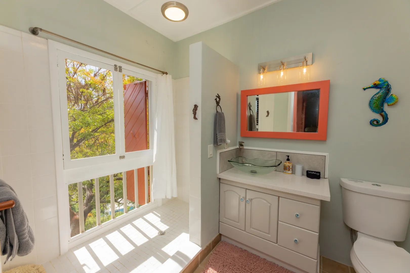 Casanita is a well-built masonry home with stunning water views across the Caribbean to the British Virgin Islands. This 3 bed 3 bath home was recently renovated with a new roof, windows, doors, hurricane shutters, appliances and more. It has an open floor plan and a spacious master suite on the main level. All of the openings on the main level are 36 inch wide door frames for easy access from room to room. An internal staircase connects to the other two bedrooms with ensuite baths and laundry room. Each bedroom has a balcony to take in the views and provides comfort with AC. The flat driveway and only two steps to the main living area and primary bedroom suite makes this home easily accessible. It would be the perfect island residence or could continue as a successful short term rental.