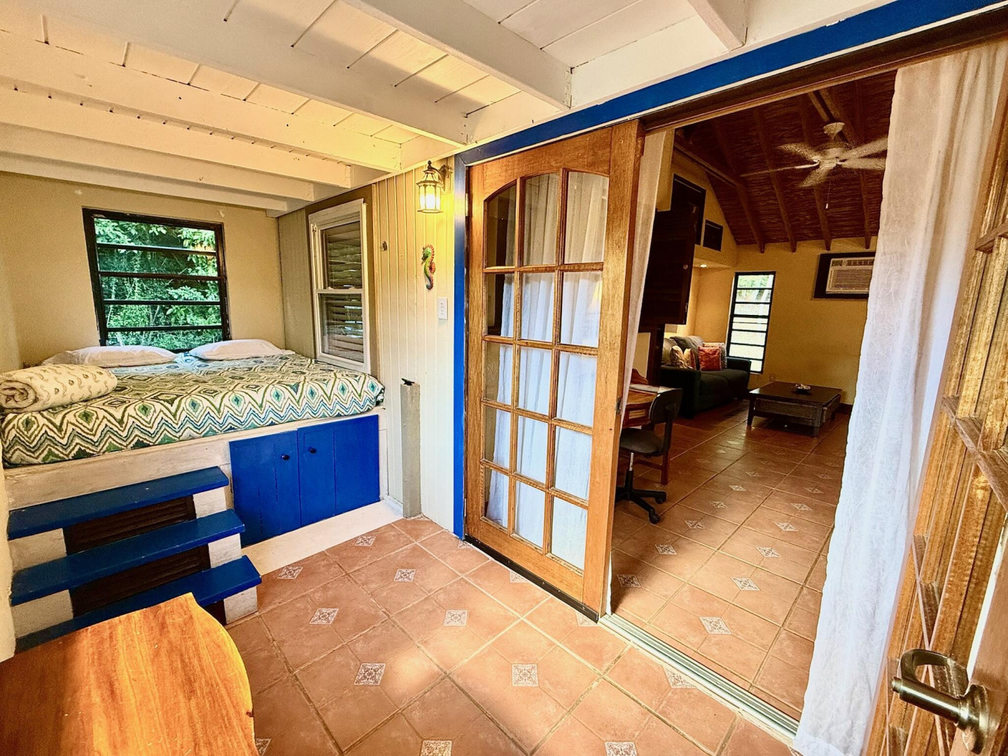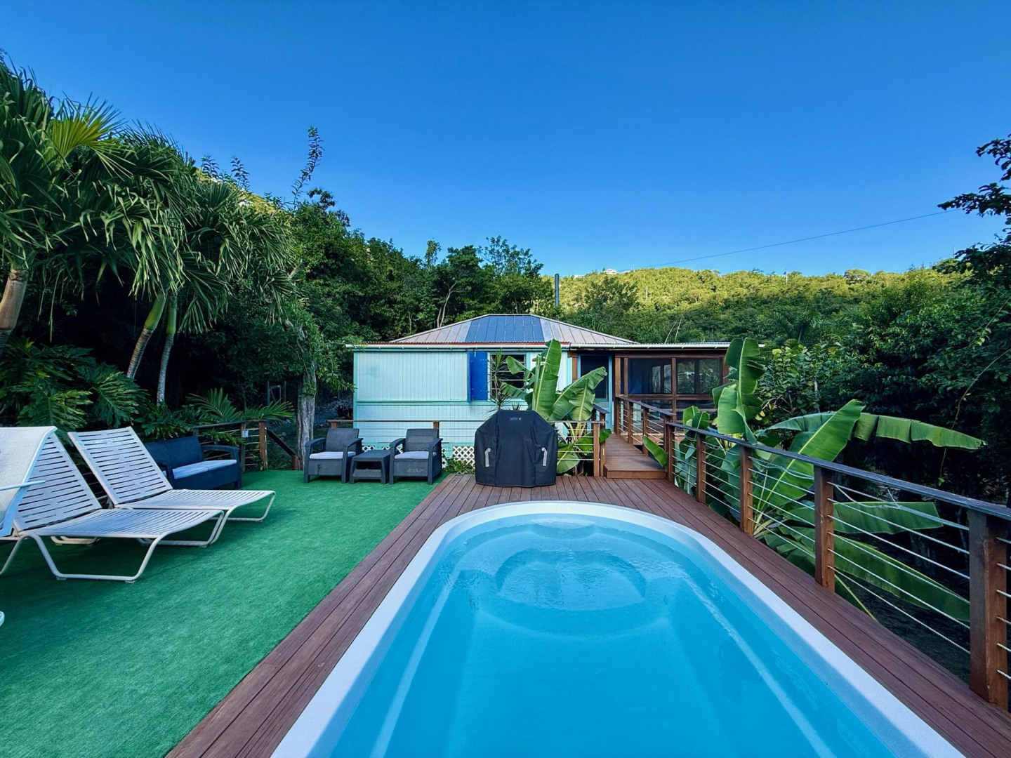 NEW MOON ESCAPE is the whole package - one stop shopping for a fresh new lifestyle. Successful vacation rental, boat, car, separate caretaker cottage or long-term rental and located in one of the best kept secret neighborhoods on island. The sprawling property has so many different features and so much potential. Besides the simple but effective poolside villa featuring brand new(2025) automatic back up Generator and AC throughout and with over 15 years of dedicated repeat guests, this property also has a 2nd stand-alone building ready to be a long-term rental, owner/operator cottage or extension of the short-term offering. It comes with a newly re-powered Grady White on a trailer complete with boat house and separate dingy and a Toyota Land Cruiser to pull the boat in & out of Coral Bay!