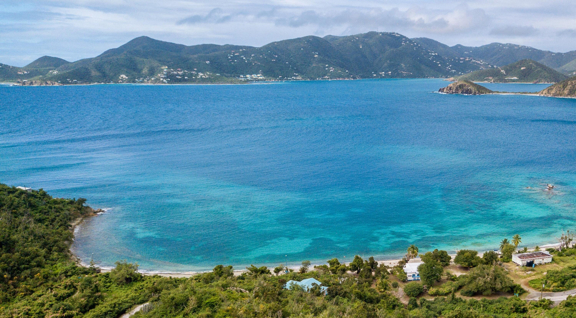Magnificent views over Round Bay and the Caribbean Sea from this southwest facing site in Privateer Bay Estates. Driveway access from the main roadway above and from below across 6-O-1B. Amenities include paved roads, underground utilities and two large beaches, one with two charming beach cottages available for homeowners' exclusive use.