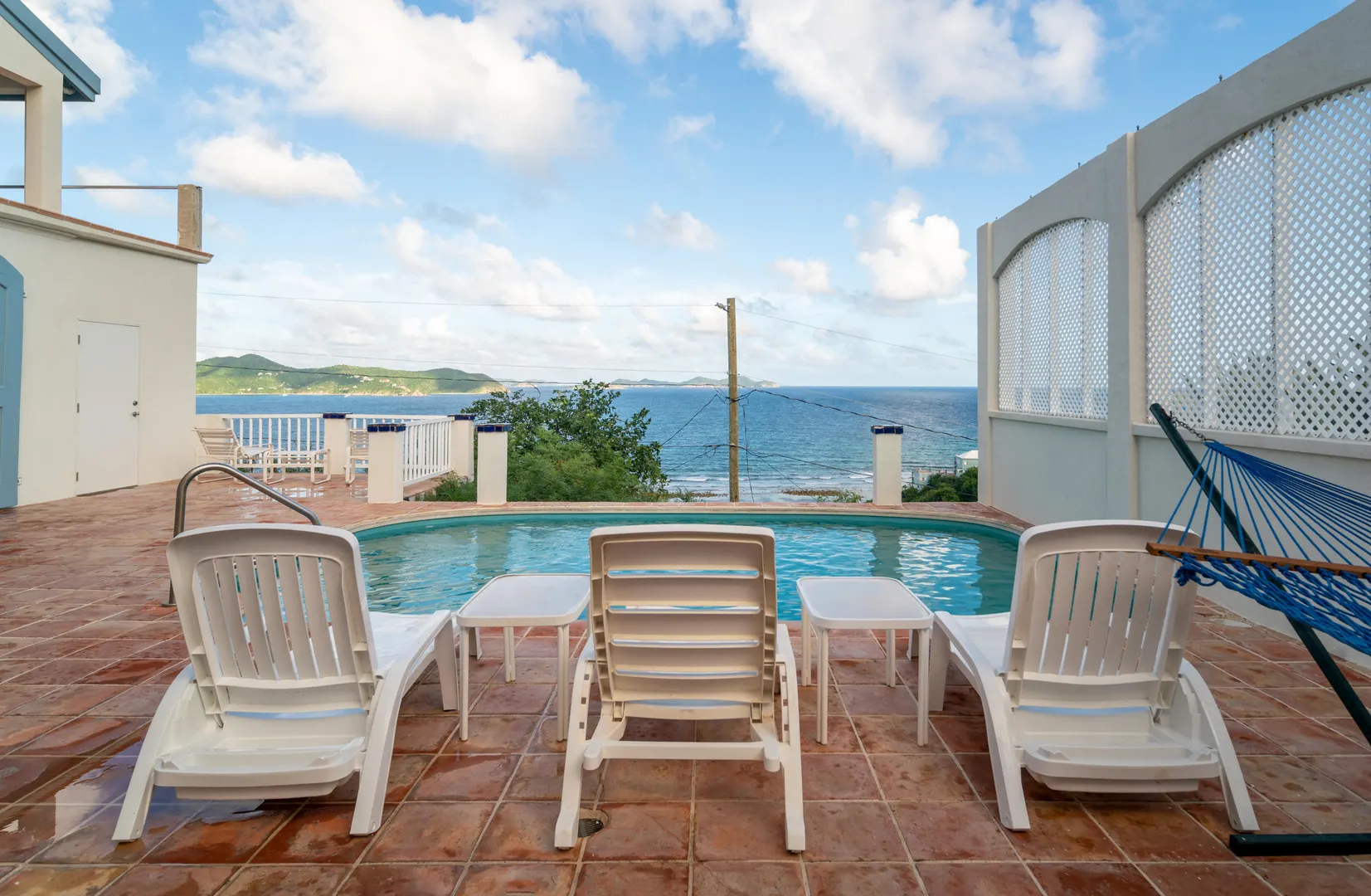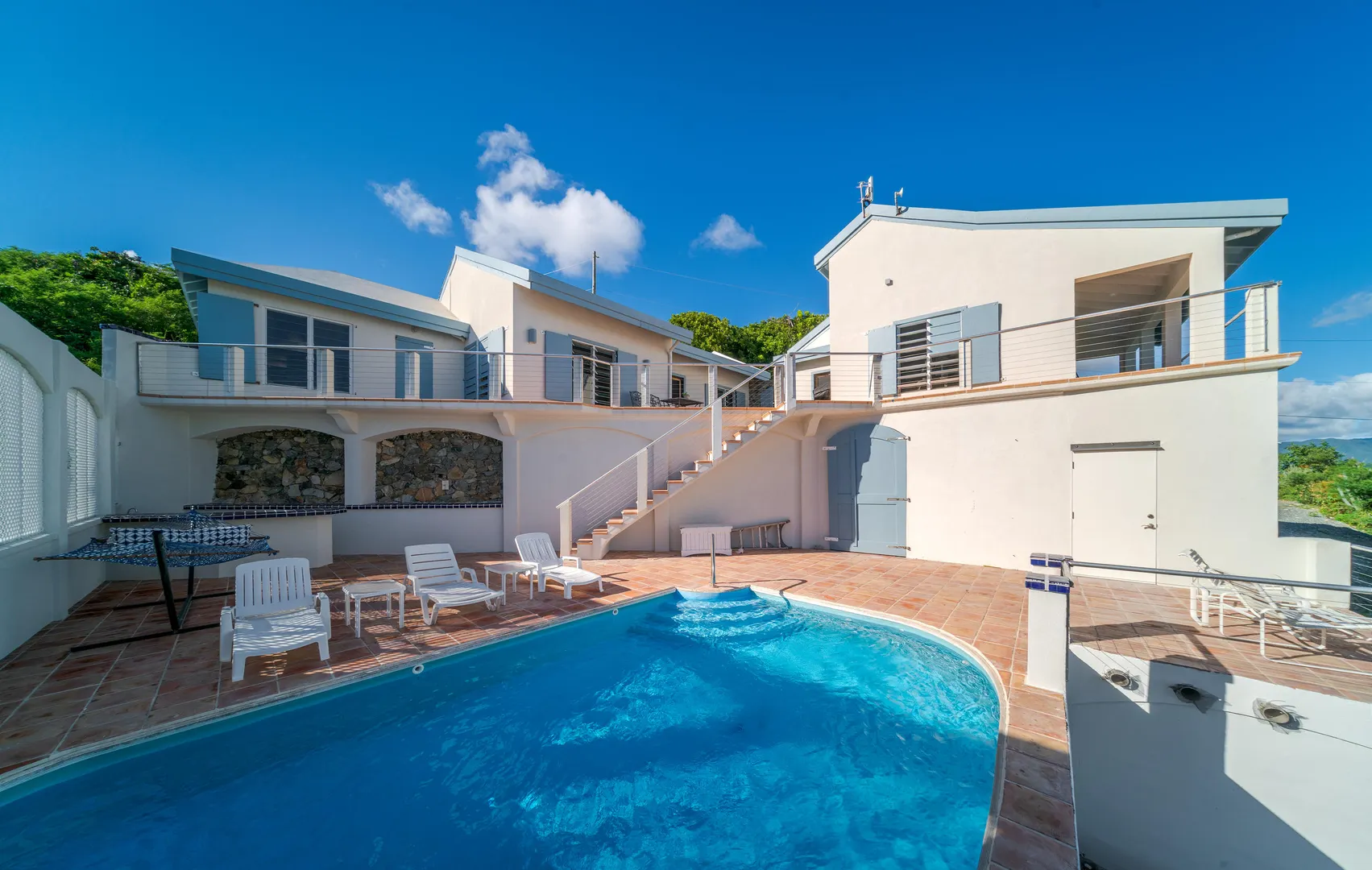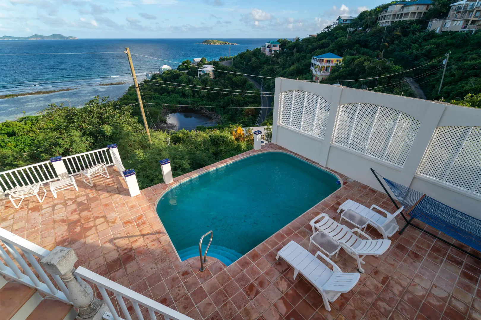 Enjoy the quiet side of St.John! This newly remodeled family home or seasonal residence, is located in St.Quacco & Zimmerman. Just 10 minutes from Coral Bay you can enjoy mesmerizing views overlooking Friss Bay, the East End, LeDuck and BVI islands in a peaceful neighborhood setting.The upper level features a main living pod and two adjoining bedroom pods. The lower level is an independent apartment, with a wonderful new kitchen, washer/dryer and private driveway. A new spacious concrete deck w/ cable railing provides for an outdoor living area to enjoy the consistent breeze and views. Masonry pool and wet bar are perfect for entertaining!
