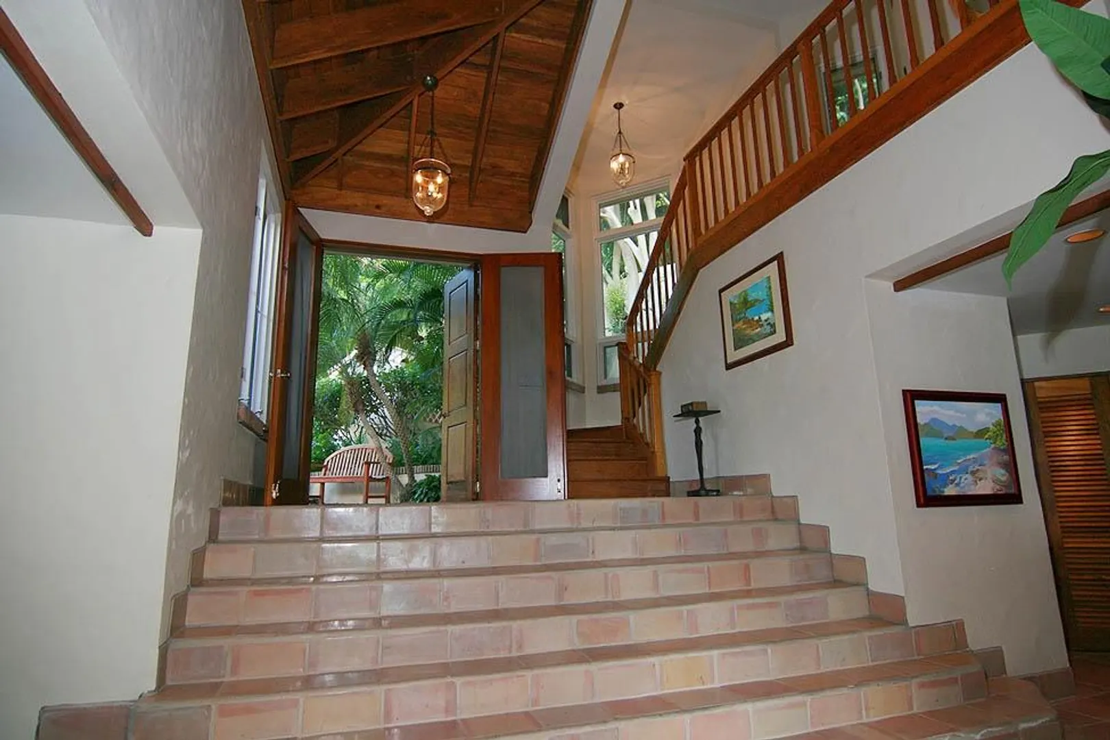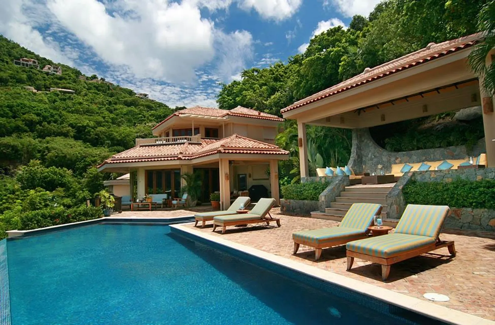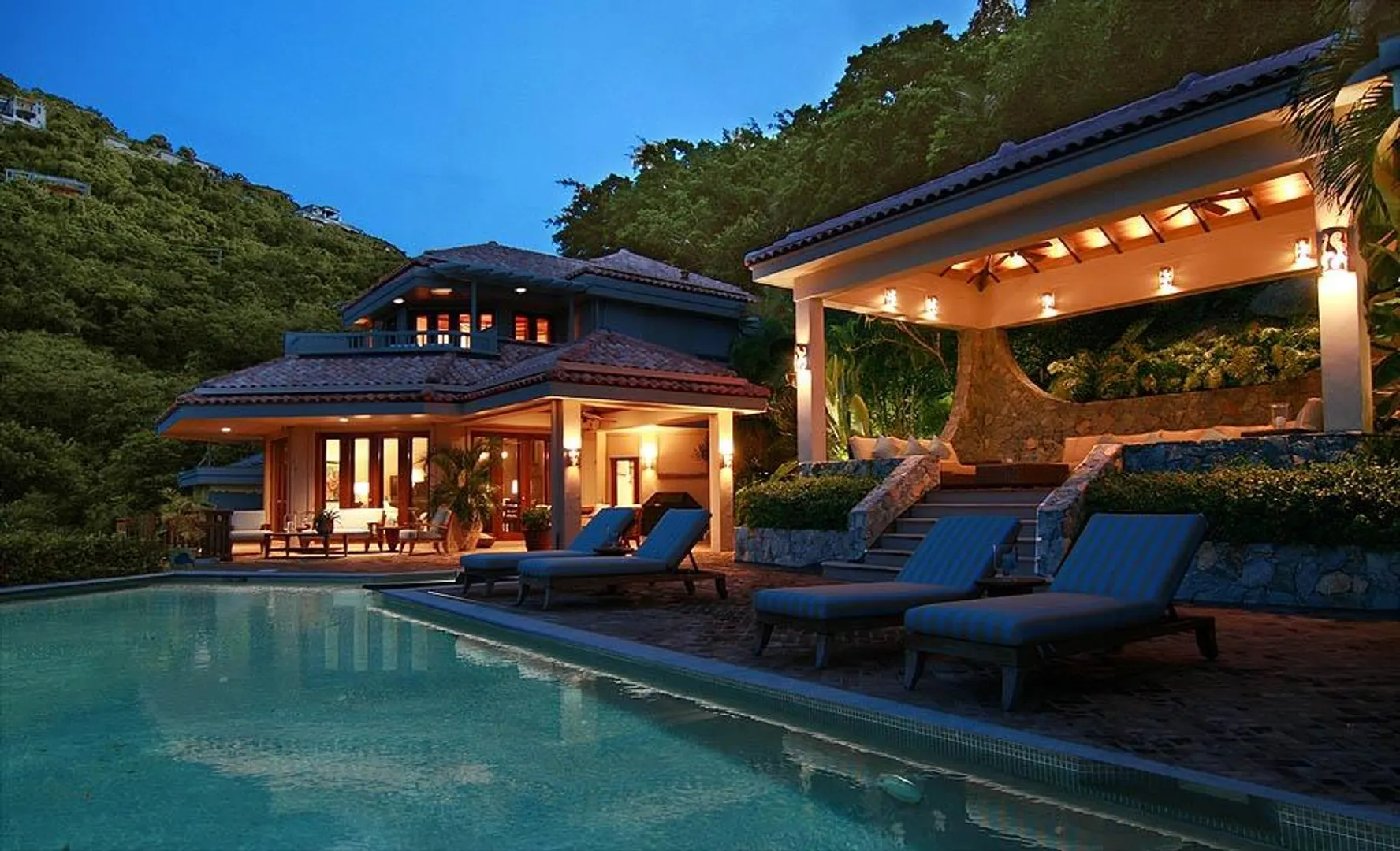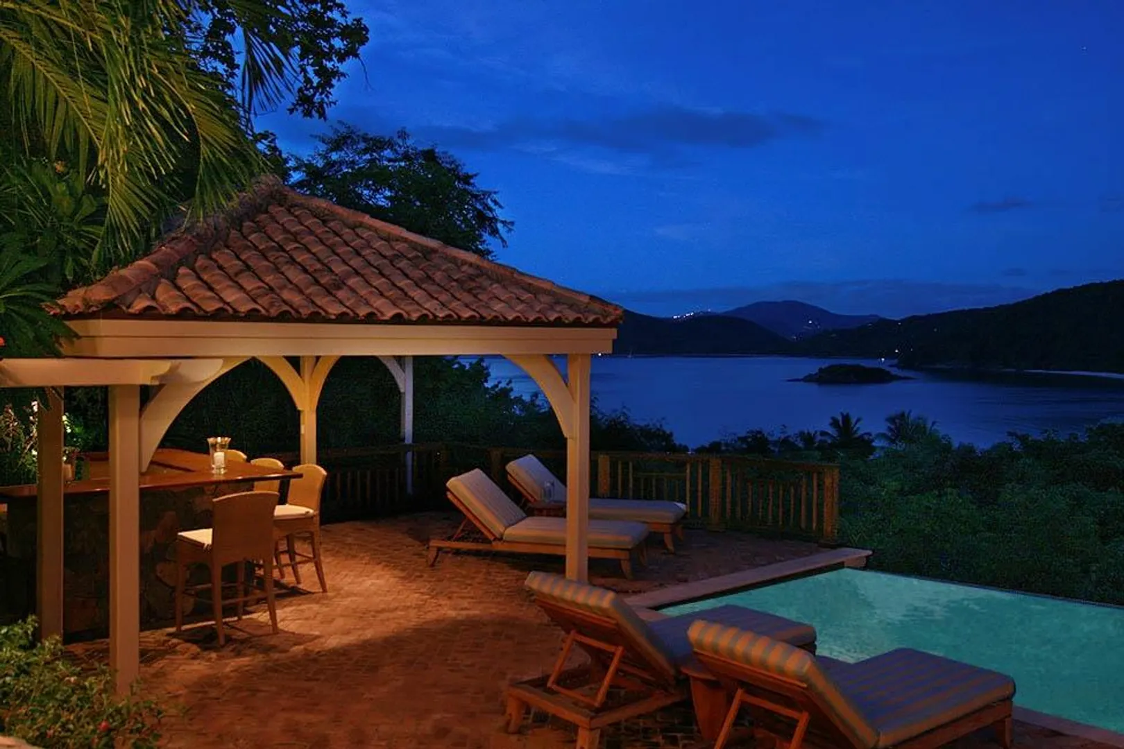 VILLA SUNSPOT is the ultimate in luxurious living in exclusive lower Peter Bay. Featuring stunning views from every room, this elegant 4 bedroom/4.5 bath home has a tastefully furnished living room/dining area and the sprawling outdoor living area provides an ideal setting for entertaining from the alfresco outdoor dining area to the inviting 50 ft. infinity pool to the deluxe pool cabana to the pool side wet bar to the charming gazebo. Surrounded by lush tropical gardens, it is steps away from a beautiful white sand beach. The expanded parking area accommodates at least 5 vehicles including 2 covered carport spaces. Expired Michael Oxman plans/permits are available for a separate private guest suite. The finest in island living and design.....