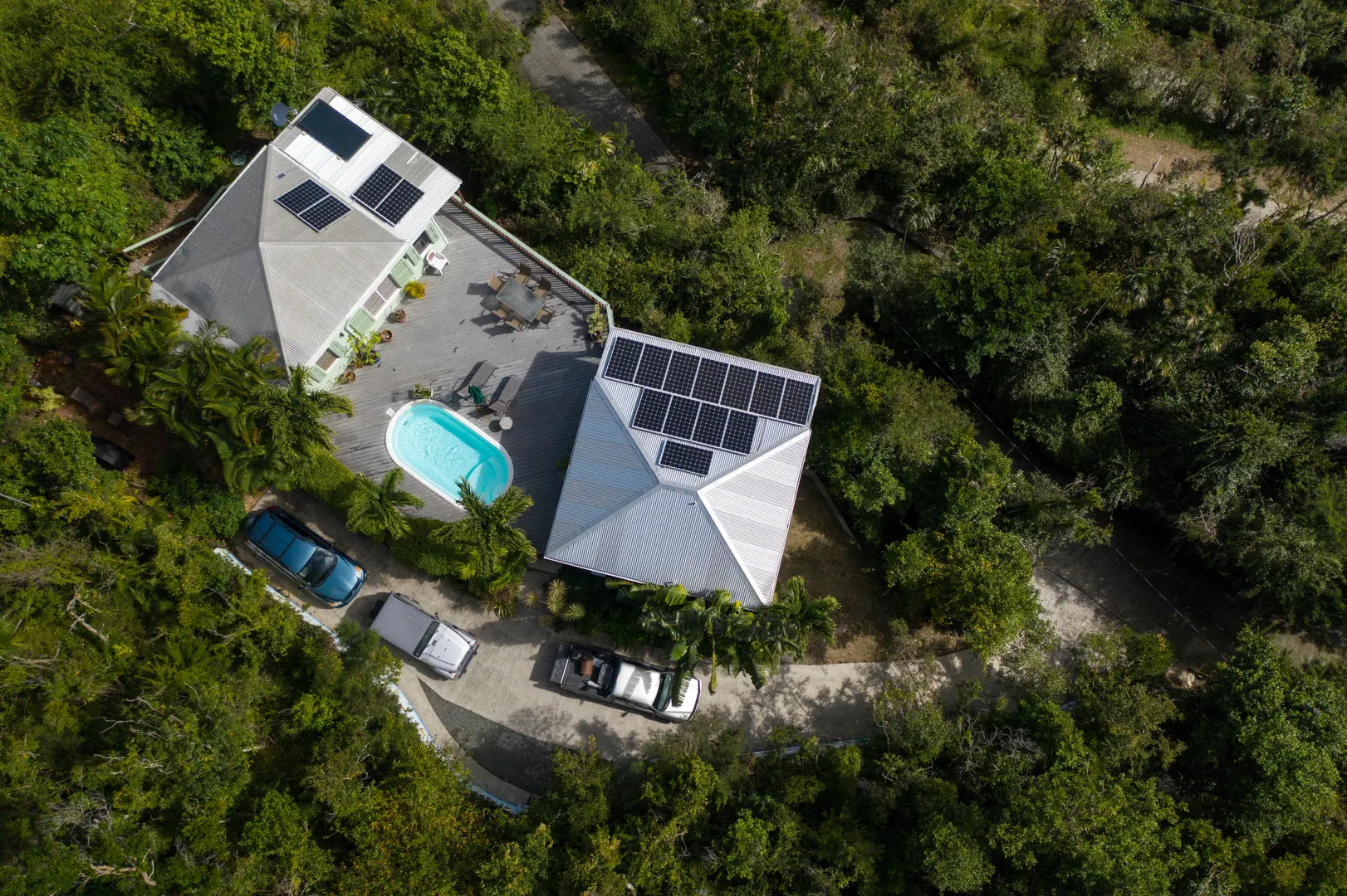 • Roof: Galvanized, Solar Panels