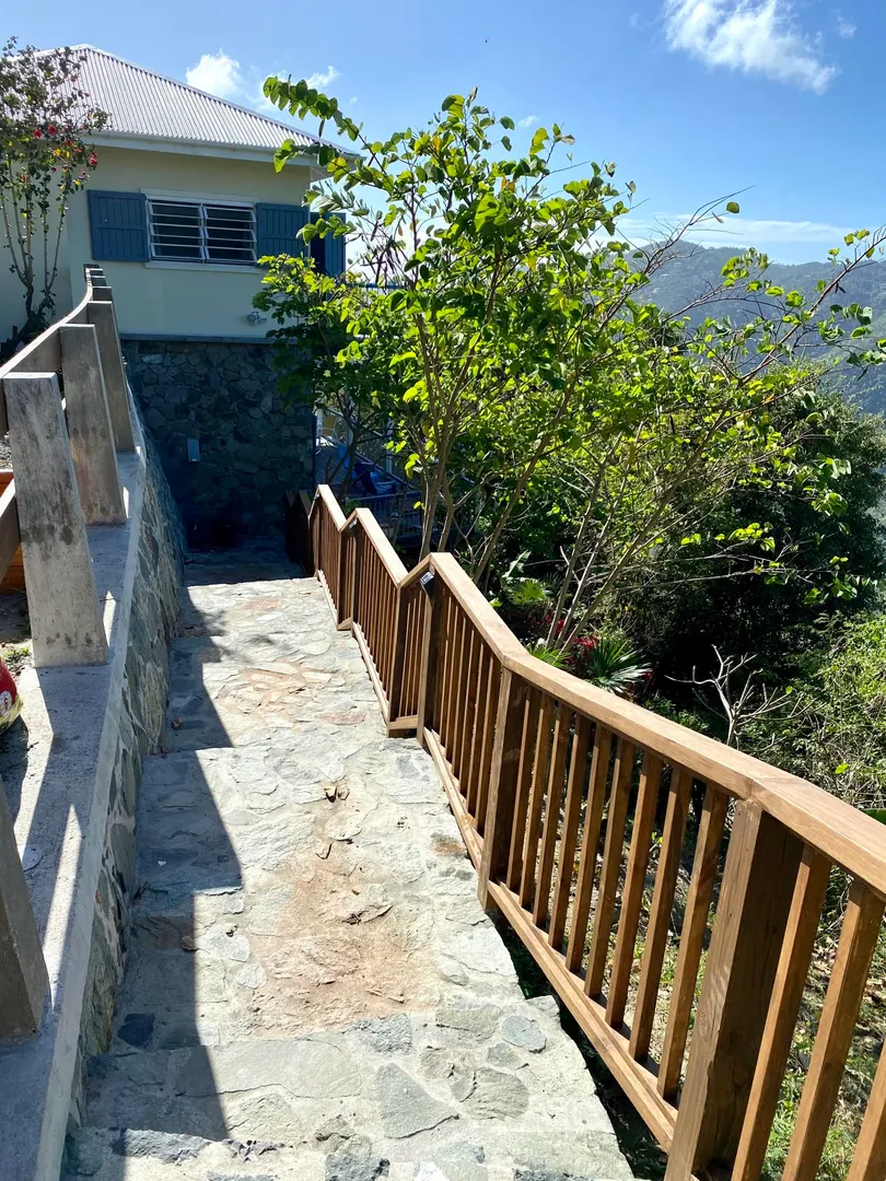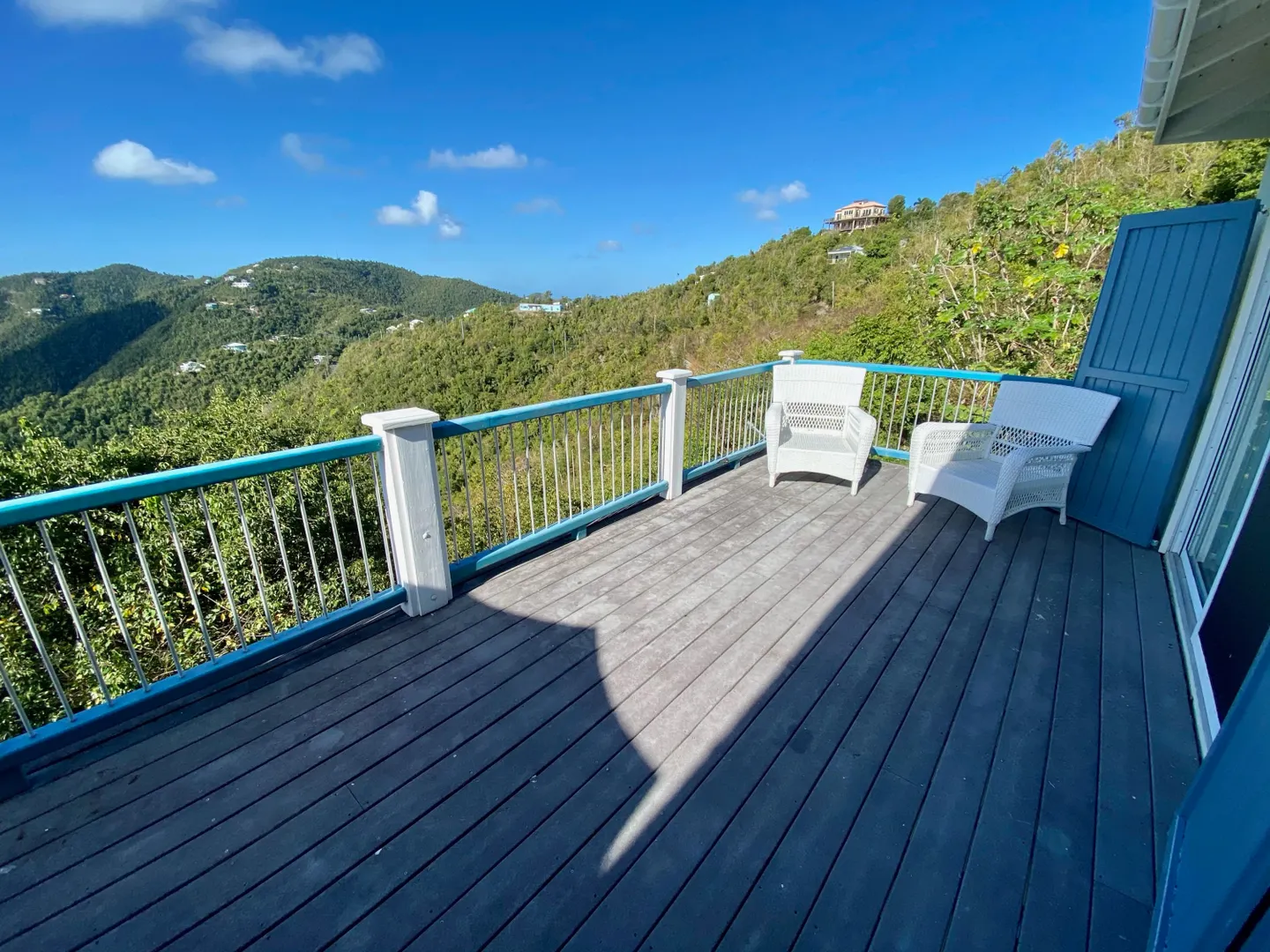Just a 5 minute drive to Francis & Maho Bay beaches, Paradise on the Rocks rests high on the hilltop of desirable Ajax Peak. Beautiful Bordeaux Mountain and valley views from the main living area and the generous deck invite expansive panoramic sights including east/sunrise, Coral Bay harbor, and the valley across to the west/sunset. This well-built masonry home consists of a 2 units, offering a 2 bedroom, 2 bath main level with a 1 bedroom, 1 bath apartment on the lower level, both with private spacious decks and plenty of storage space. Resting on a .62 acre parcel, this home has an easy, flat driveway with ample parking. This income producing property offers flexibility of long or short term rentals, or a space for visiting family and friends.