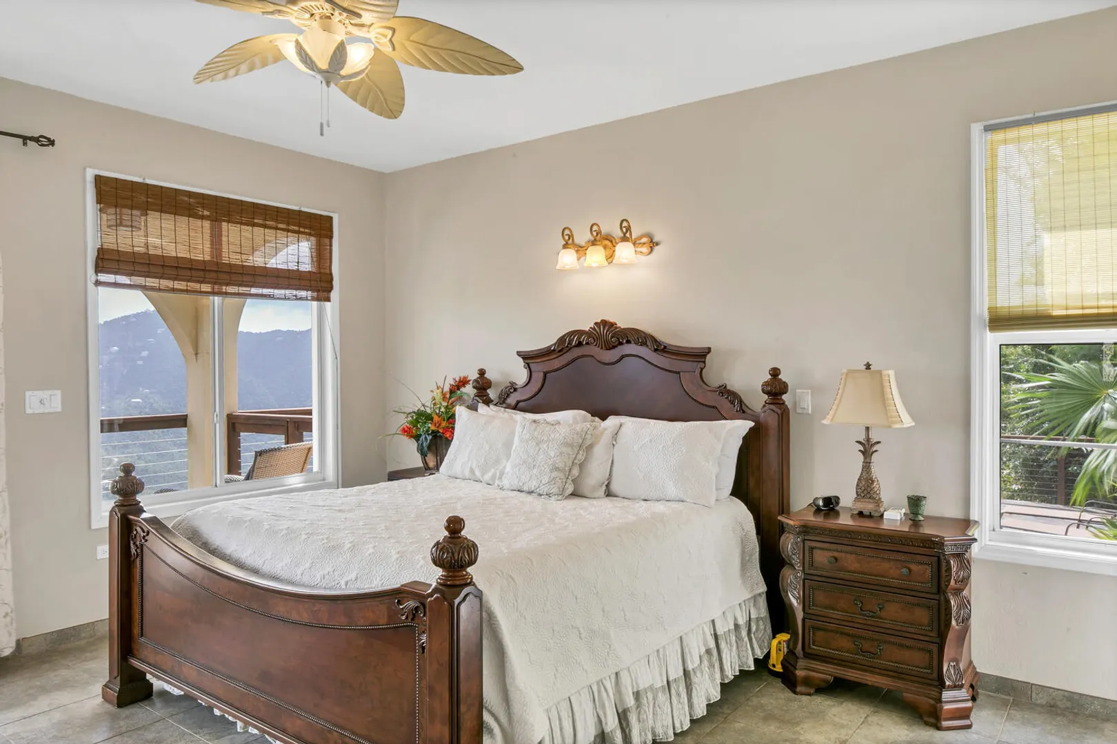 Caribbean Jewel is exactly that...your ideal little Caribbean hideaway! Bright and light, open concept layout highlights the expansive views over Coral Bay Harbor and beyond. Masonry construction with quality finishes this two-bedroom, two and a half bath is the ideal short term rental property. The Ajax Peak location affords privacy yet is a midway point between Coral Bay and Cruz Bay with easy access to the North Shore Beaches. Short term rentals to be honored.