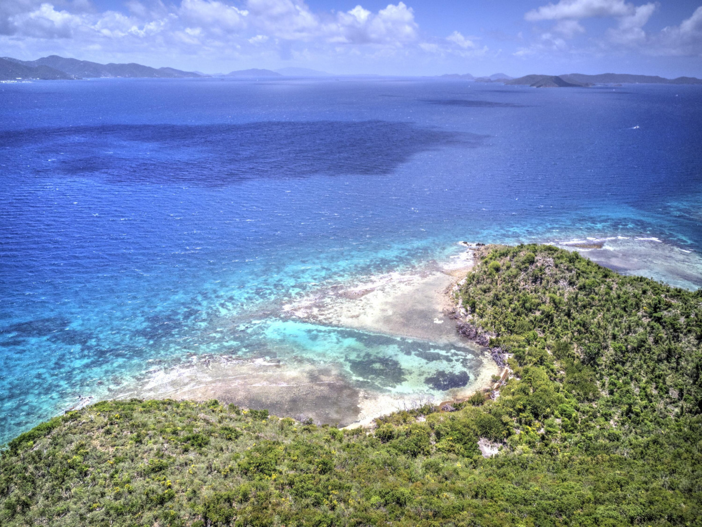 Amazing 2.07 Acre lot that touches the water. Stunning sunrise and down island views of Tortola and Virgin Gorda.