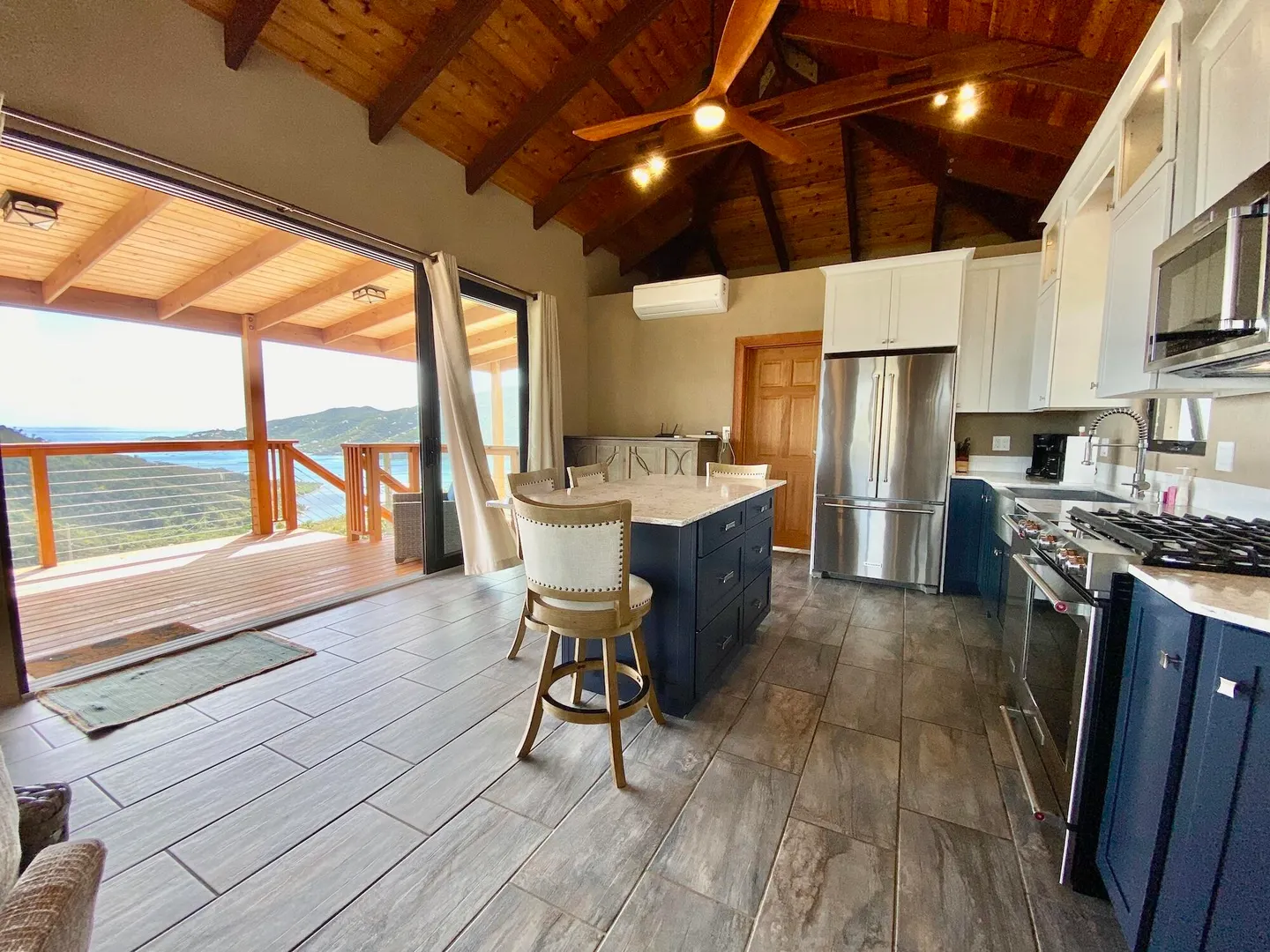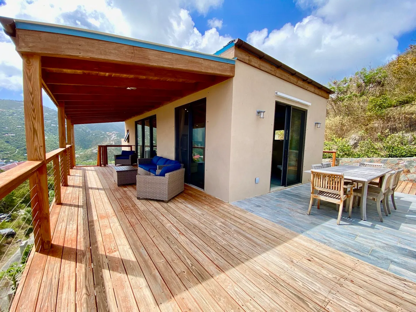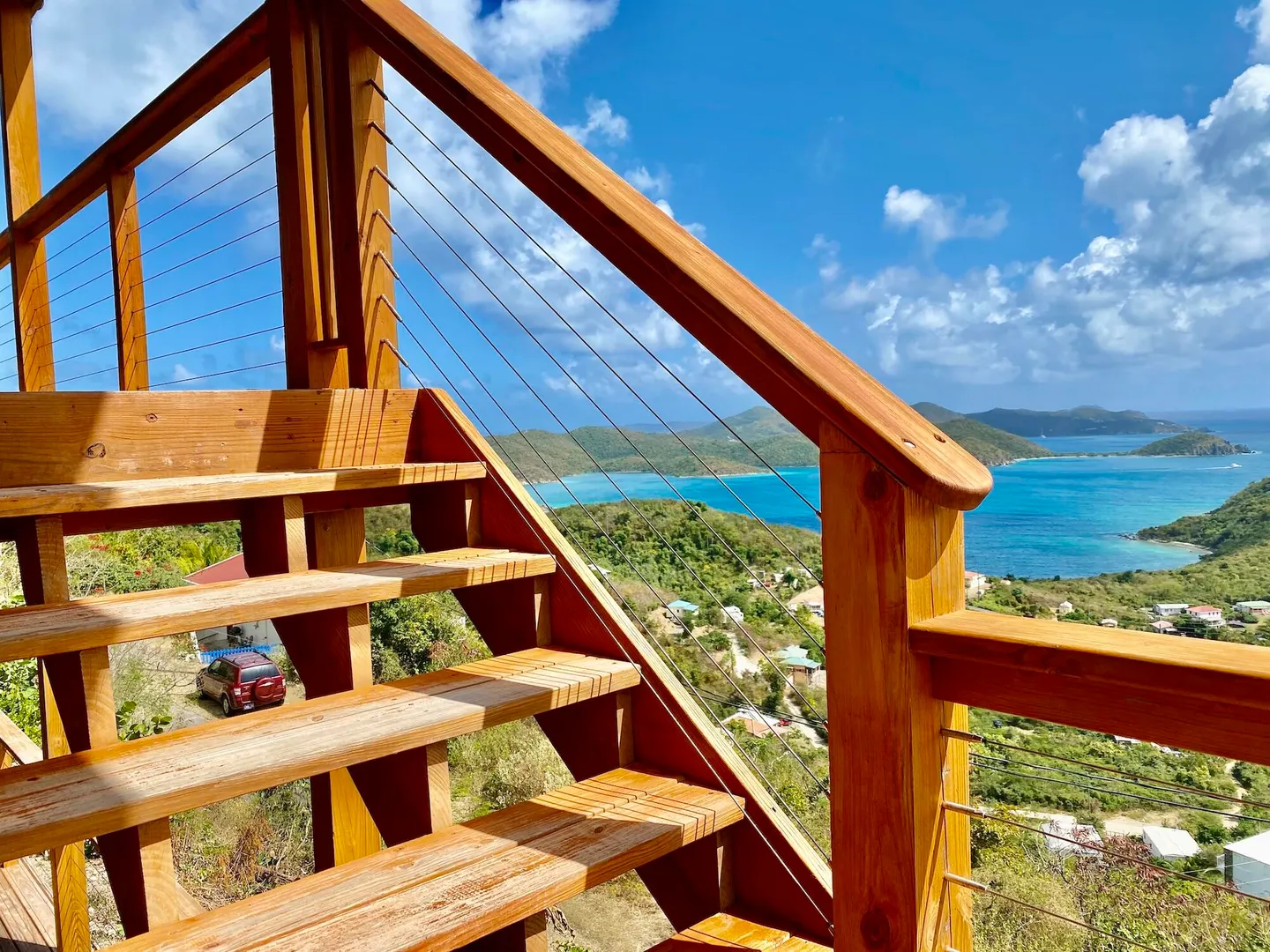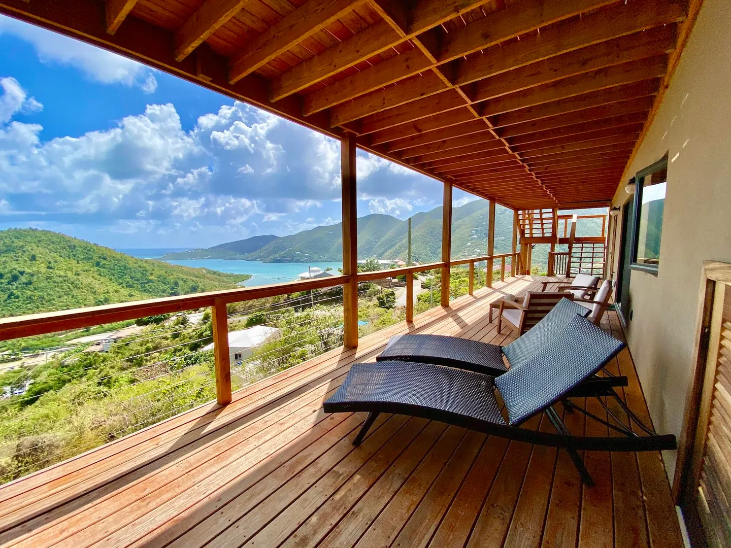 Located in the Sea Grape Hill, this recently built property is extreme quality and boast impressive rental performance. Aptly named Huis Aan Zee (House by the Sea), there are sweeping views of Coral Bay, the British Virgin Islands, and beyond. Interior finishes all higher-end. There is flexibility and room to expand, or add an additional building pod if desired. Currently, this house can comfortably sleep 4 with the use of the custom-made Murphy bed in the upper unit, which also enjoys its own full size bathroom. With cooling breezes, and stunning views, you can comfortably spend your days lounging on the expansive decks, and relaxing in the saltwater pool.
