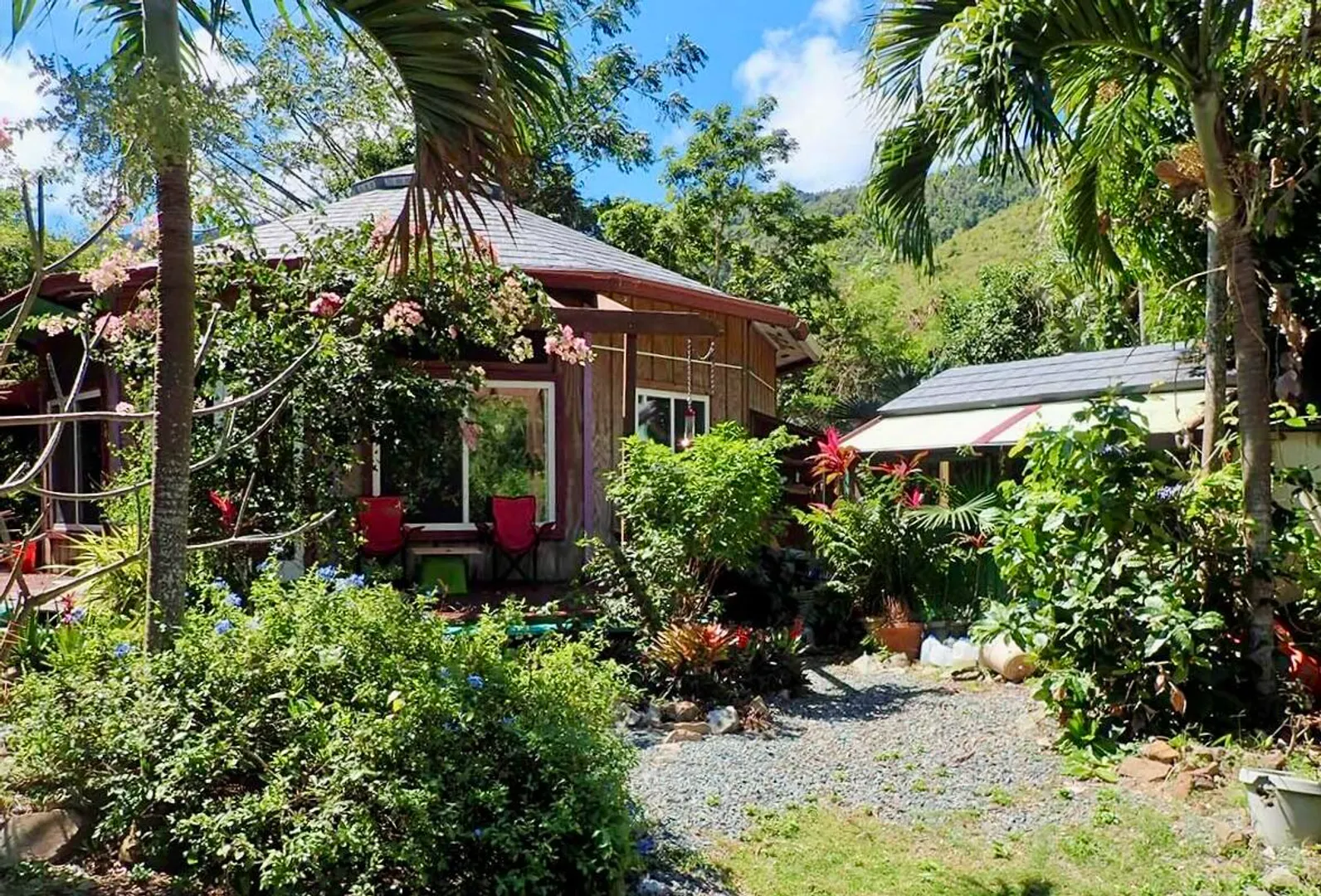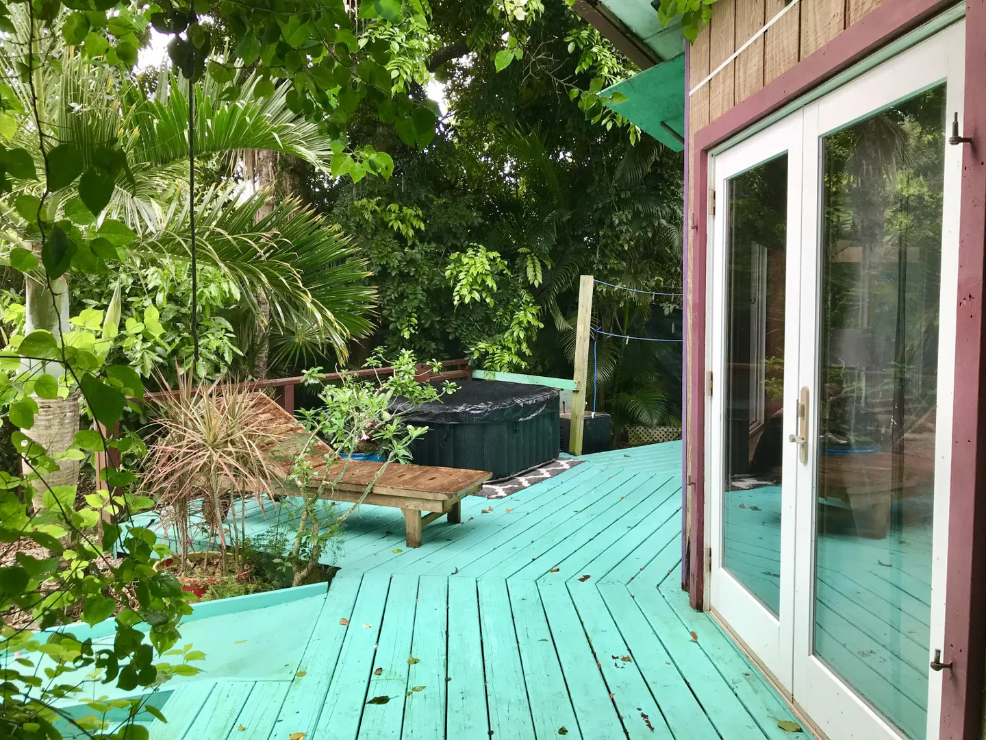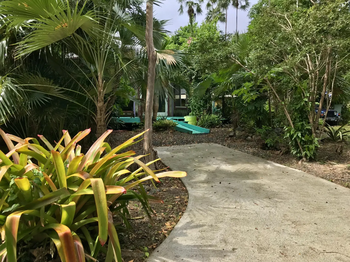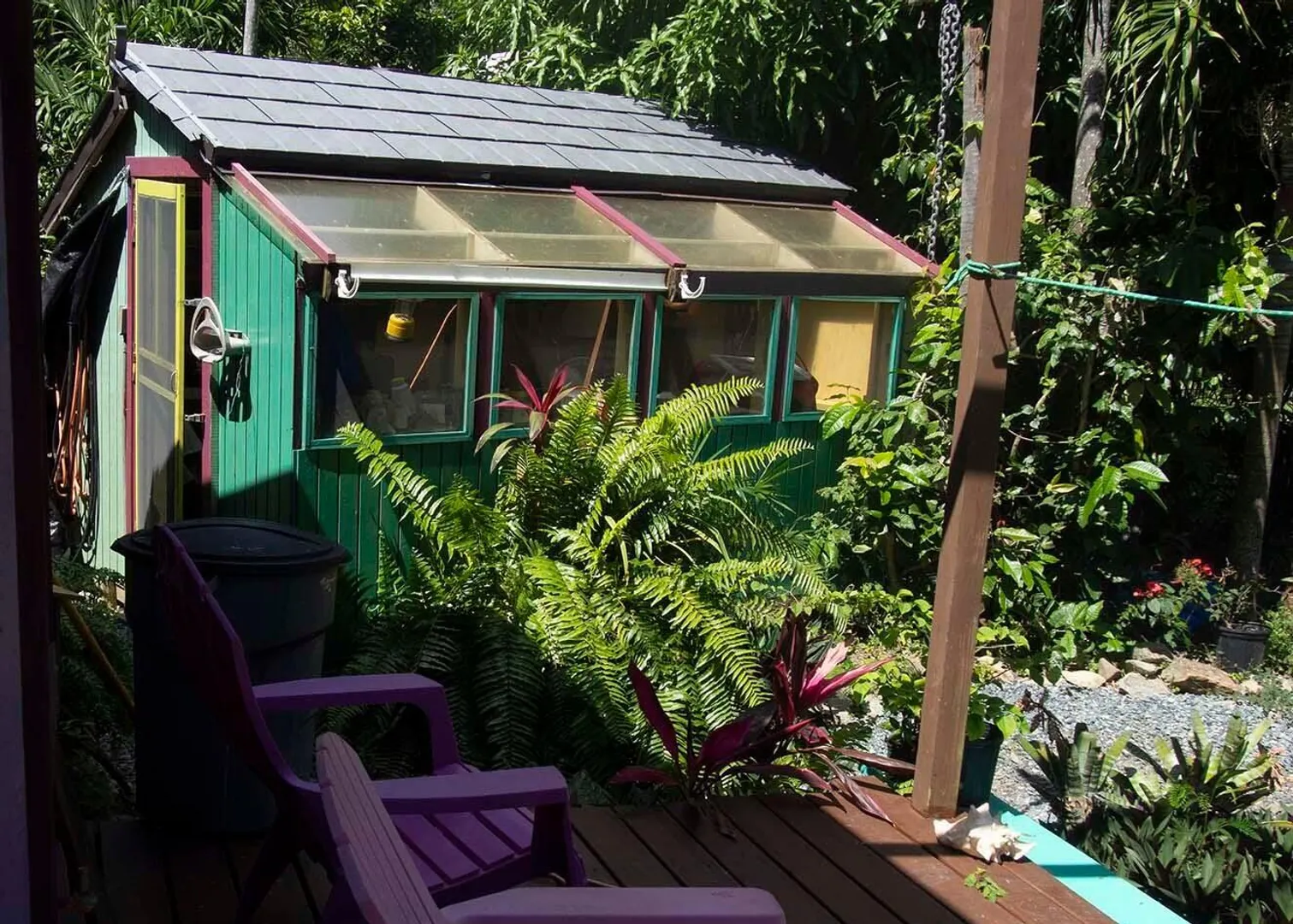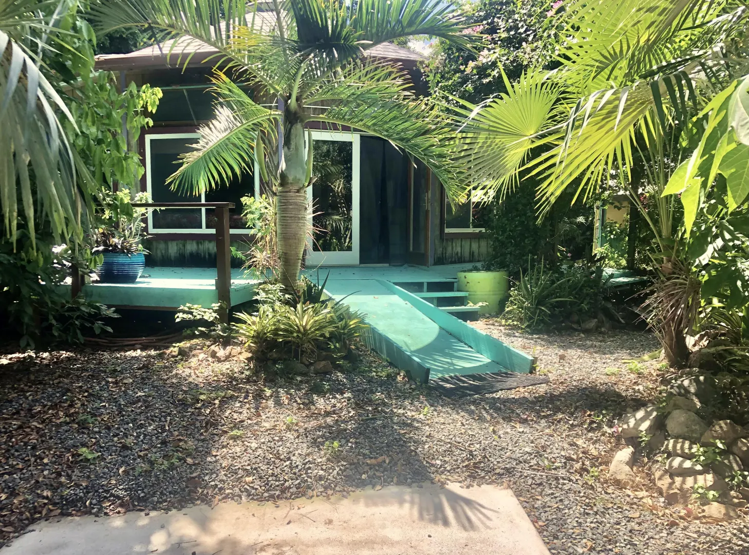 Gardeners Oasis! Flat lot with mature fruit trees and plantings with room for another small home and/or pool. Home has a certificate of occupancy and permanent power. Deltec home with deck surround. Another bedroom could be easily added, mahogany wood panels available to screen area for second bedroom. Deltec homes have flexibility because interior partition walls are non load bearing. Paved driveway to the front door allows for easy access and disability access. There is a concrete slab for a hot tub/spa off the deck. Small shed has electricity and serves as an artist's studio. Outside living space with decks wrap around most of the home.Kitchen Island is movable and can be refigured to accommodate a full range in the kitchen.Aqua clear waste treatment used on plants rated for 3 BR house