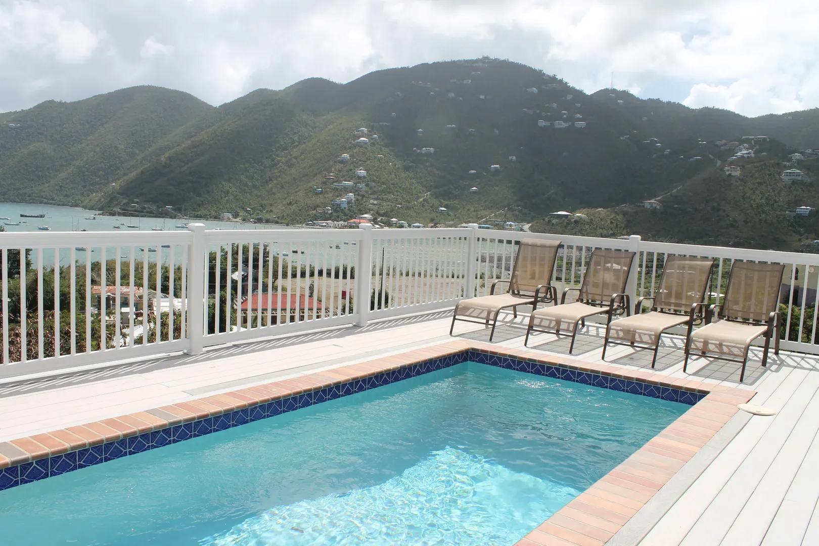 Villa Jumbie' is an immaculately maintained 2 Bed, 2.5 Bath custom-built home overlooking Coral Bay. This home enjoys a very private location with vacant adjoining lots and unrestricted views Coral Bay, the Bordeaux Valley and of the boats moored in Coral Harbor. This beautifully furnished home is fully air conditioned with individually controlled split systems and TV connected to Dish Network in the bedrooms and Great Room. The large, covered veranda deck is tastefully furnished and adjoins the open sun deck featuring a powder room bath, BBQ grill and storage closet all of which surrounds the 8' x 16' 'salt water' pool. The gourmet kitchen features granite counters and a convenient center island breakfast bar together with stainless steel appliances. Energy efficiency is optimized by the