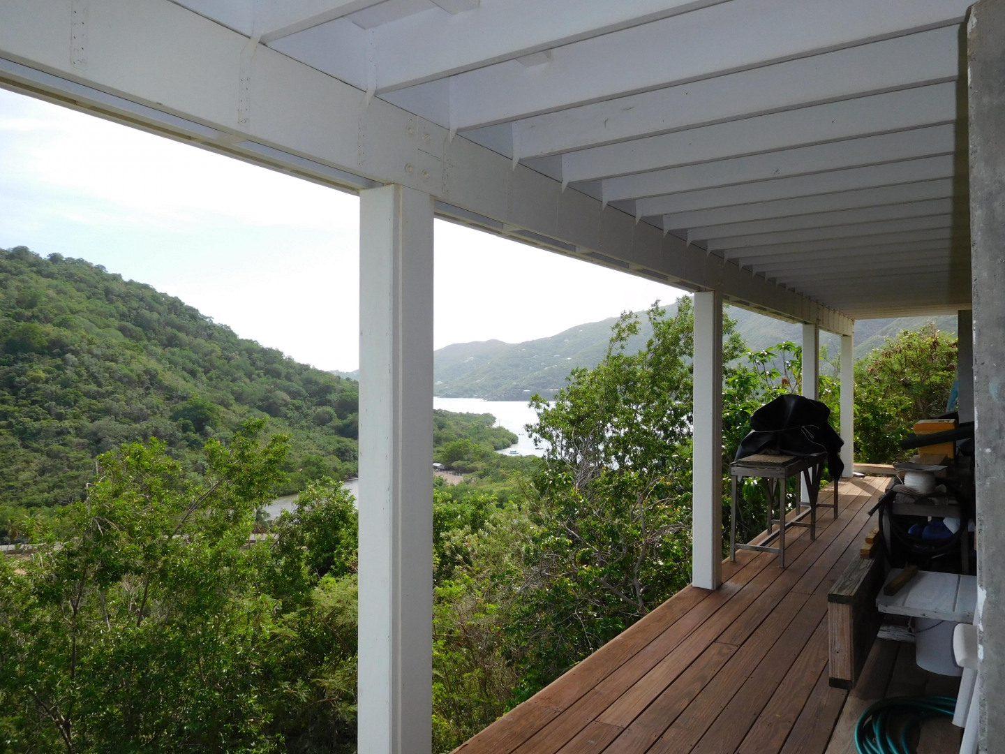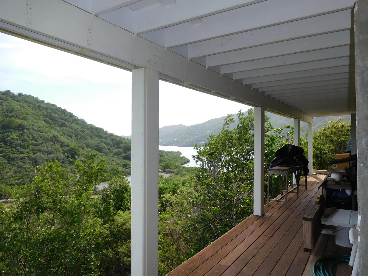 Exceptional craftsmanship with stunning water views! ''Coral Haven'' is a well-built (above & beyond code) frame guest house on a solid concrete foundation with two studio apartments situated on the main & lower levels located in the Seagrape Hill subdivision in Coral Bay with dual bay views over Hurricane Hole, Coral Bay harbor and beyond. Guest house completed in 2007 and main house started with 22,000 gallon concrete cistern in place with a workshop and expired plans for a 2 bed x 2 bath main house. Many options for new owner with much of the hard work completed! MUST SEE to fully appreciate the value, quality and Owner's pride int this exceptional property. Please see supplement for more information."Coral Haven" Guest House The guest house was completed in 2007 & issued a certificate of occupancy with a separate meter Hybrid construction with a 5,000 gallon concrete cistern foundation and frame construction similar to post & beam with 3x6 studs 24" on center with timber roof Roof is well built with 3x8 rafters; 3x10 hips; 3x12 ridge with 2 collar ties; Cyprus decking – purlins bolted – Rigid 1.5" insulation with ¾" plywood roof deck – elastomeric coating with water collection internalized Maxi-vue windows – most with redwood louvers Doors & windows all have full protection Caribbean style shutters Covered tile outside deck 30'x8' and 16'x6' Substantial 2 car concrete parking pad with gated stairway to guest house. Plenty of storage area below the parking pad and could be enclosed for dry storage. Garden shed has ample room for supplies, paint, etc. with a plastic 1,000 gallon water container for watering landscaping. The yard has lovely stone terracing and mature landscaping; a true gardener's delight with plenty of room to add your own personal touch! The guest house offers options for use. An owner can occupy upper and lower level; owner can occupy one apartment and long term or short term rent the other; long or short term rent both. Main house The main house has expired plans for a 2 bed x 2 bath house. Plans are available for review upon request. New owner can use existing plans or redesign. Current Owner was considering making main house 1 large bedroom x 1.5 bathrooms. Again, many options with this property for a new owner.