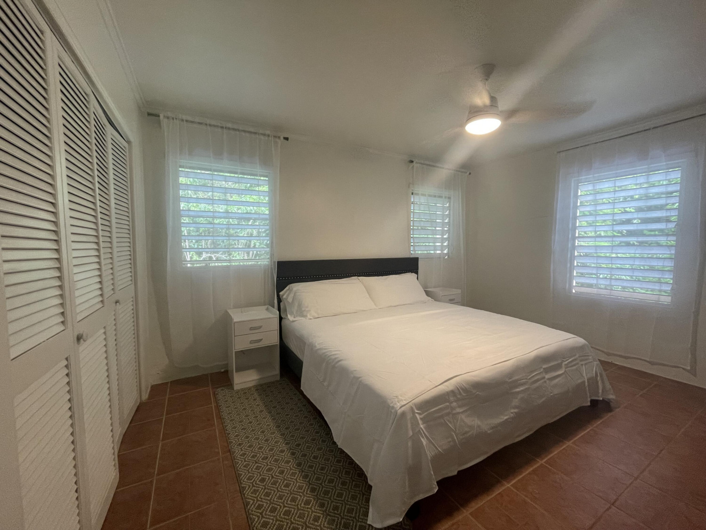 This beautiful 1 bedroom 1 bath top floor condo in Arawak Village features a renovated bathroom, new kitchen and comes fully furnished with new furniture and is ready and waiting for you. The bedroom is spacious with a brand new split AC unit and well appointed with a king sized bed. Situated in the tranquil Northside, central and located close to Sibs with a quick drive to town, this Condo will meet your every expectation. An added bonus is a washer and dryer in the unit.