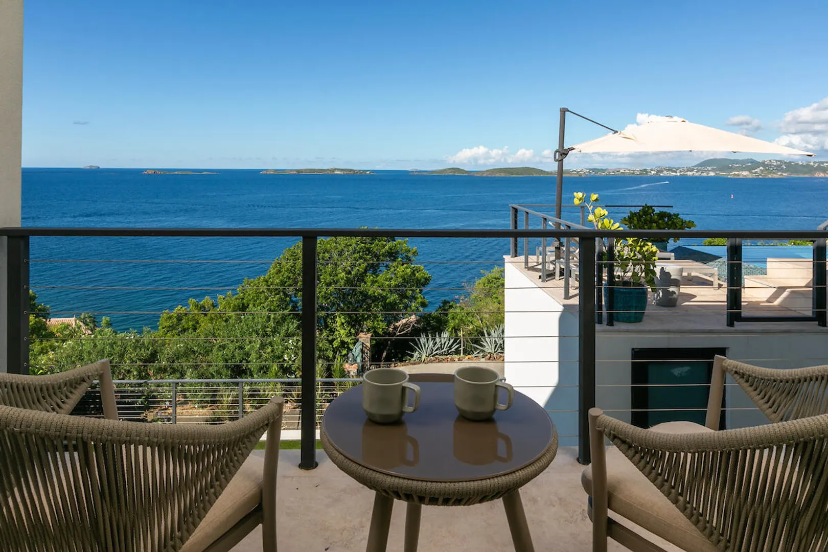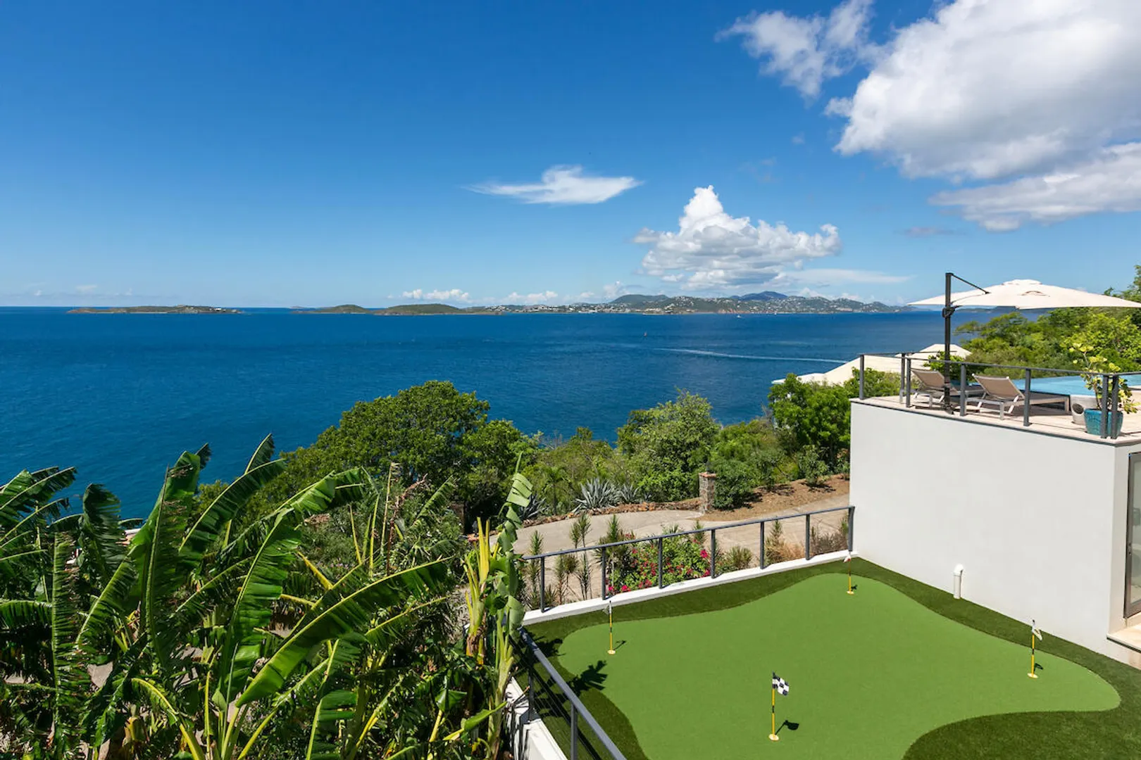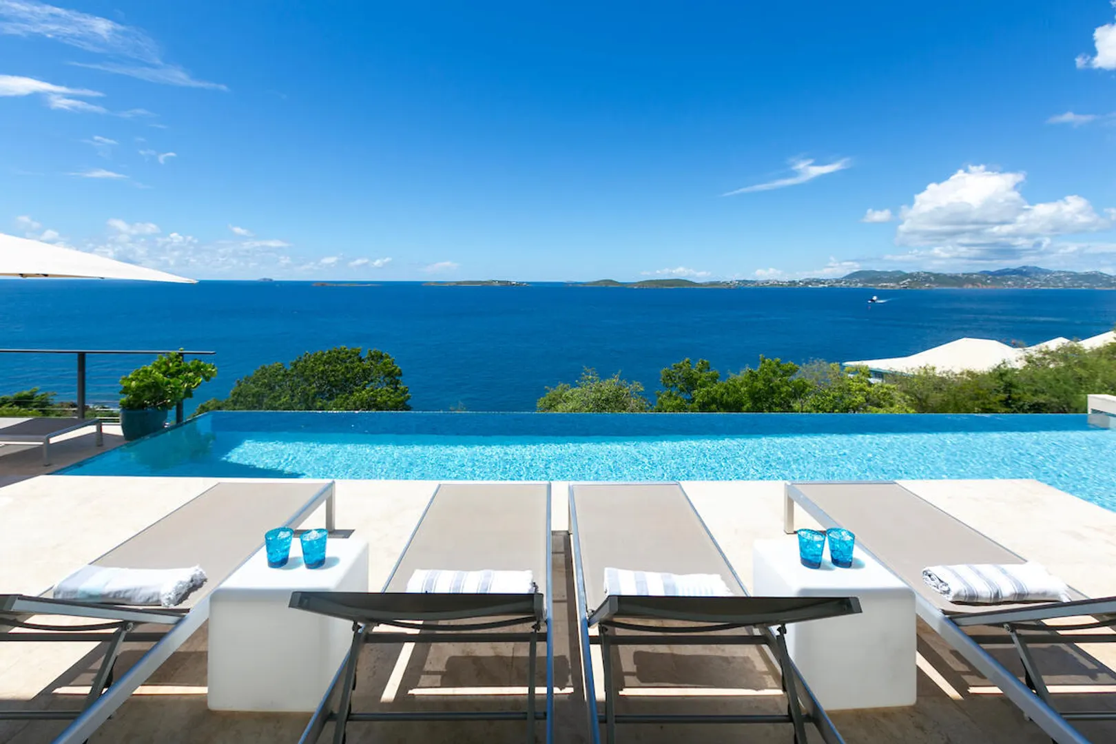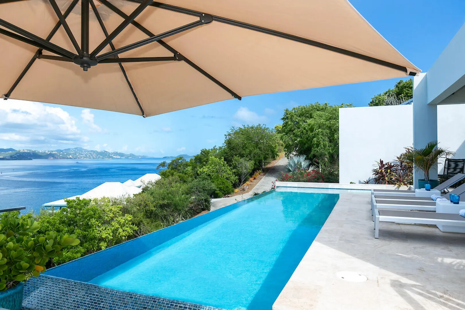Welcome to Gaia's Pearl, St John's premier modern villa with exceptional short-term rental income and a proven track record of success. This five-bedroom estate is just minutes from Cruz Bay, featuring sleek architecture designed to capture the trade wind breezes and frame unobstructed views over Pillsbury Sound. Every detail was carefully selected to create an upscale Caribbean experience, from the chef's kitchen and spacious indoor living area to the 45-foot infinity pool that overlooks year-round sunsets. Each of the five king suites has a private balcony with sweeping sea views. Energy efficient with a 32-panel solar array and battery backup, Gaia's Pearl is both a luxurious retreat and a smart investment.