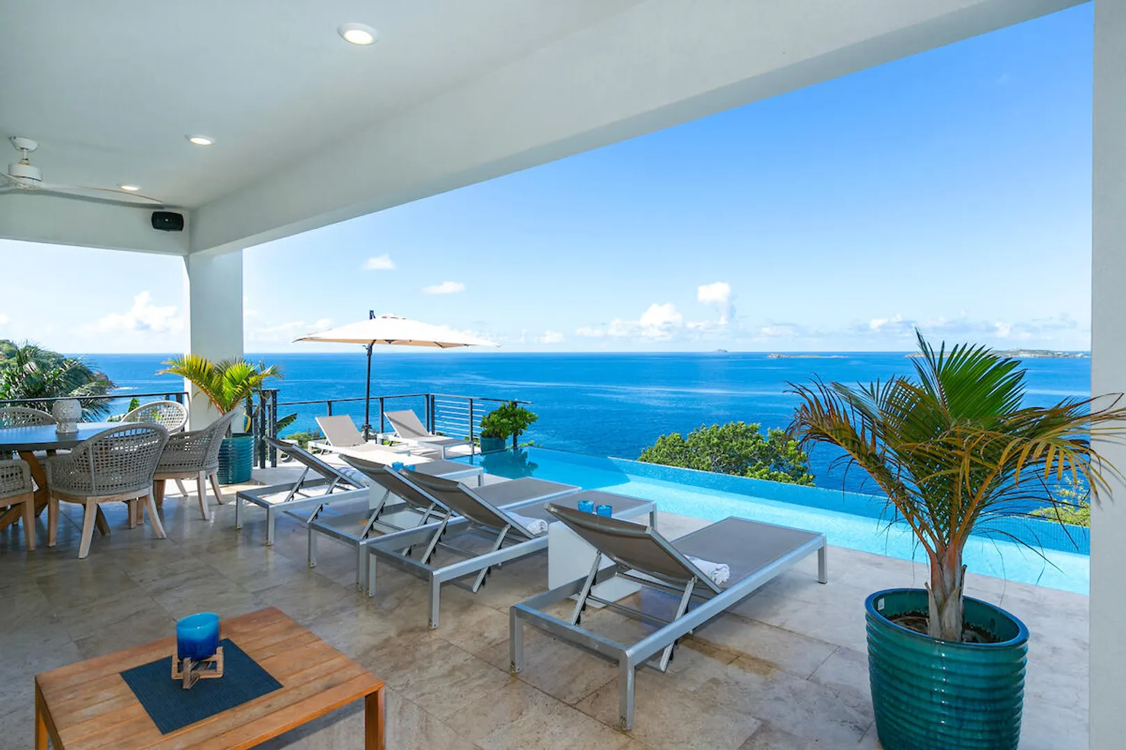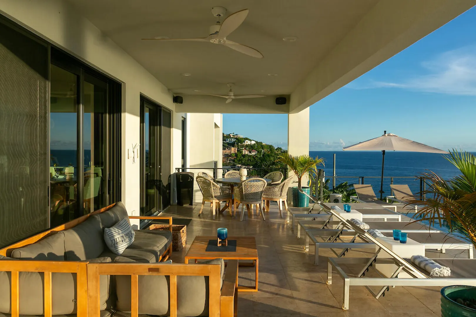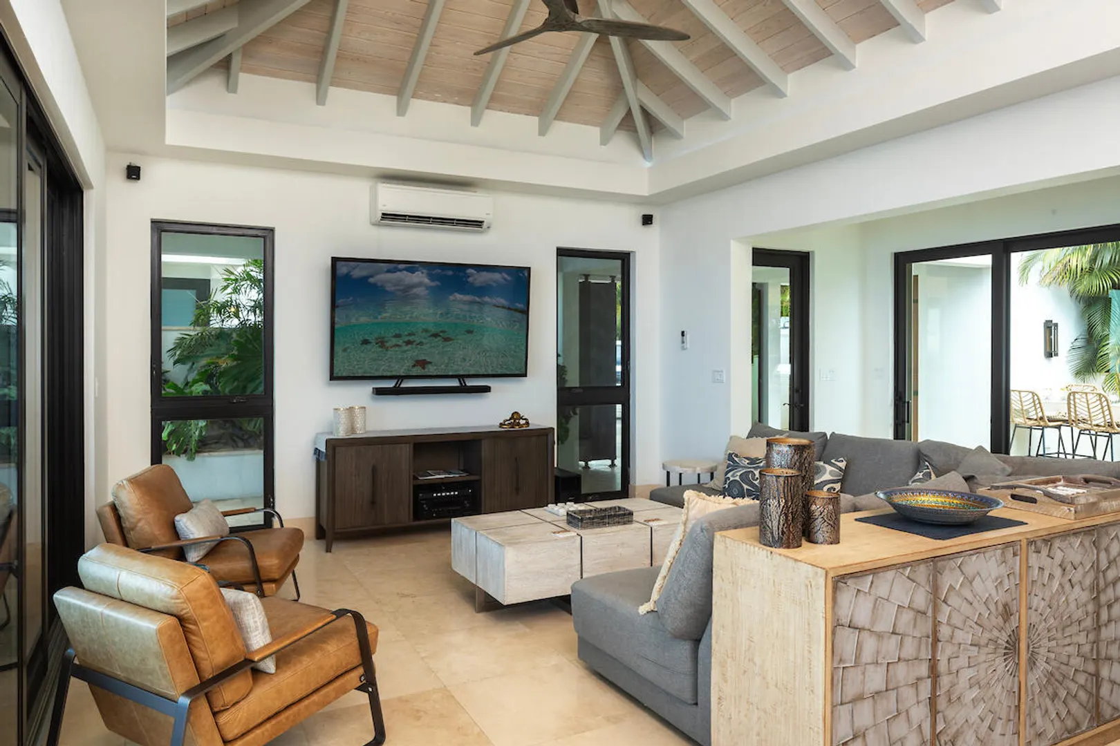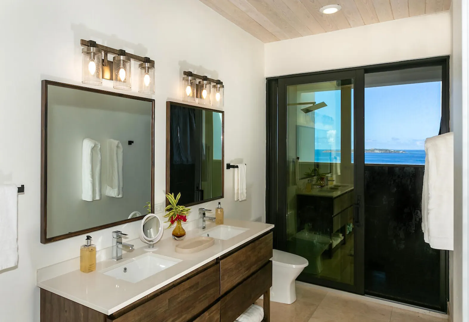 Welcome to Gaia's Pearl, St John's premier modern villa with exceptional short-term rental income and a proven track record of success. This five-bedroom estate is just minutes from Cruz Bay, featuring sleek architecture designed to capture the trade wind breezes and frame unobstructed views over Pillsbury Sound. Every detail was carefully selected to create an upscale Caribbean experience, from the chef's kitchen and spacious indoor living area to the 45-foot infinity pool that overlooks year-round sunsets. Each of the five king suites has a private balcony with sweeping sea views. Energy efficient with a 32-panel solar array and battery backup, Gaia's Pearl is both a luxurious retreat and a smart investment.