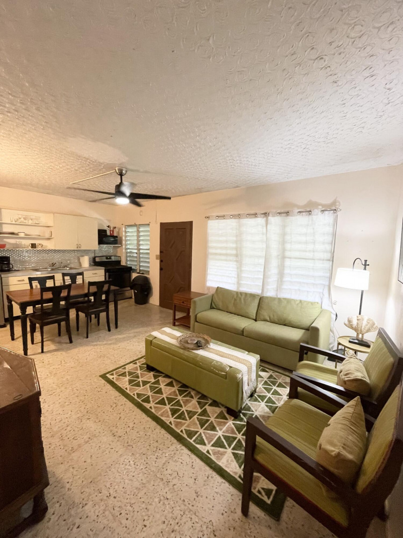 Spacious 1-bedroom apartment available for rent on the East End, near the safari route! UTILITIES INCLUDED (electricity with 150 cap, water, and Wi-Fi). It's just a 2-minute drive to the main to Red Hook area and within walking distance to Compass Point Marina, Food Center, Independent Boat Yard, Carigas, ect. Washer & dryer on private porch. AC in the bedroom. There is 1 off street parking space. and a flat yard. First, last, security required. 12-month lease. The owner is a real estate agent.