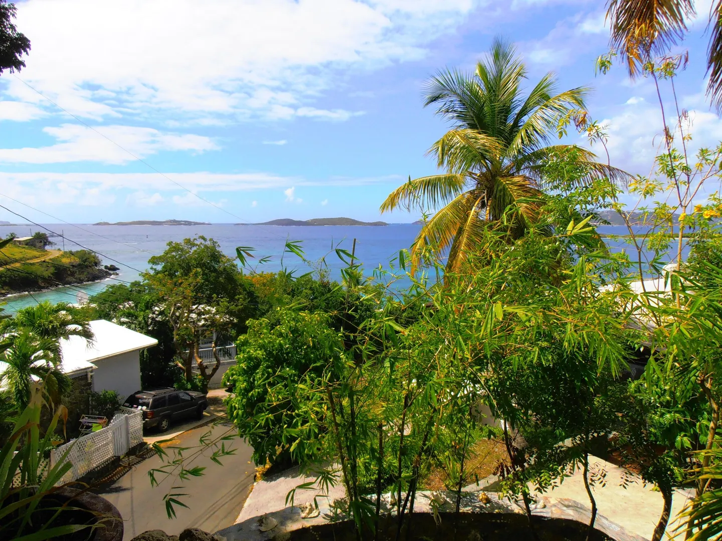 Villa Bougainvillea, nestled at the edge of Cruz Bay Town, offers a very nice sunset view from each level. St. Thomas, Pillsbury Sound and the azure blue waters are a sight to behold! Enjoy easy walks to town & Frank Bay Beach. This two level property features two spacious apartments. The upper level has 2 bedrooms, 2 baths & a spacious airy, big-view great room. The lower level offers 2 bedrooms & 1 bath, a spacious living area & generous view veranda. R-4 Zoning allows for future development. Buyer and Seller to equally split stamp tax.