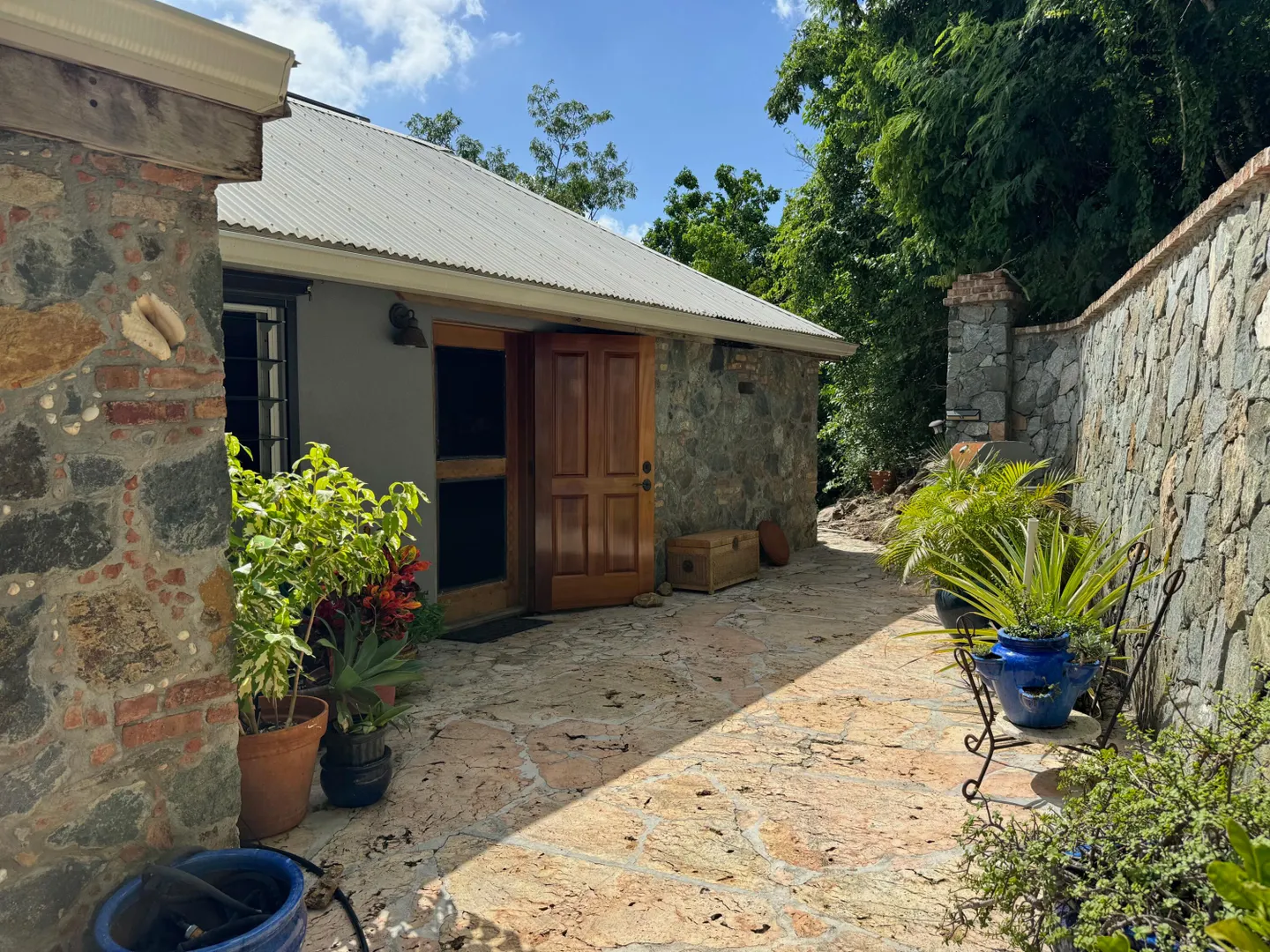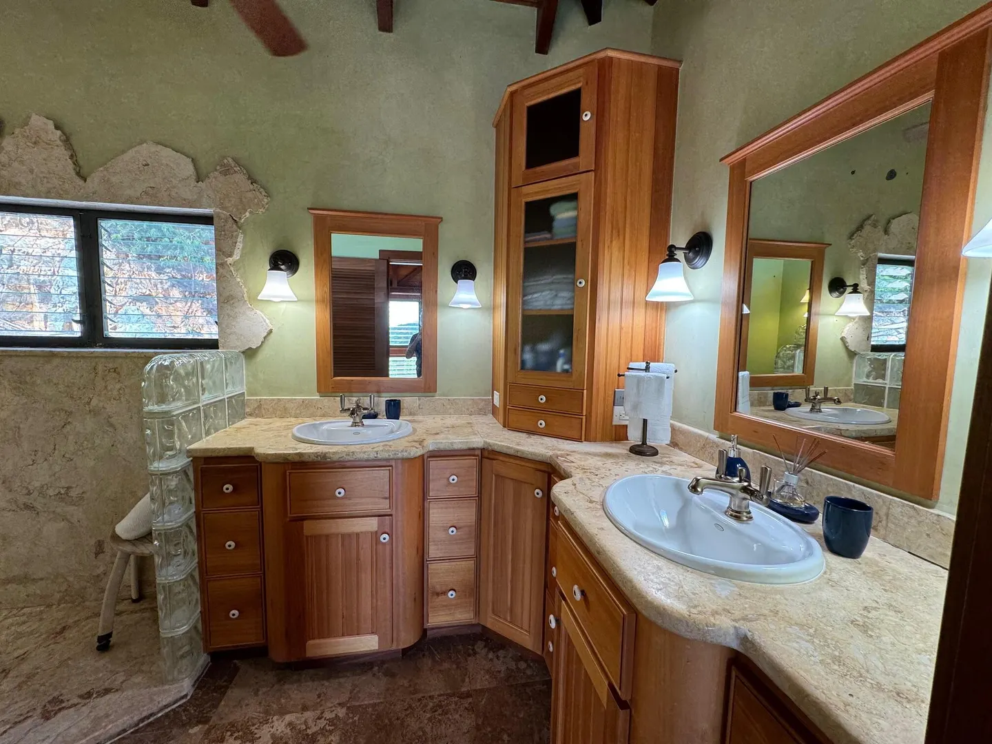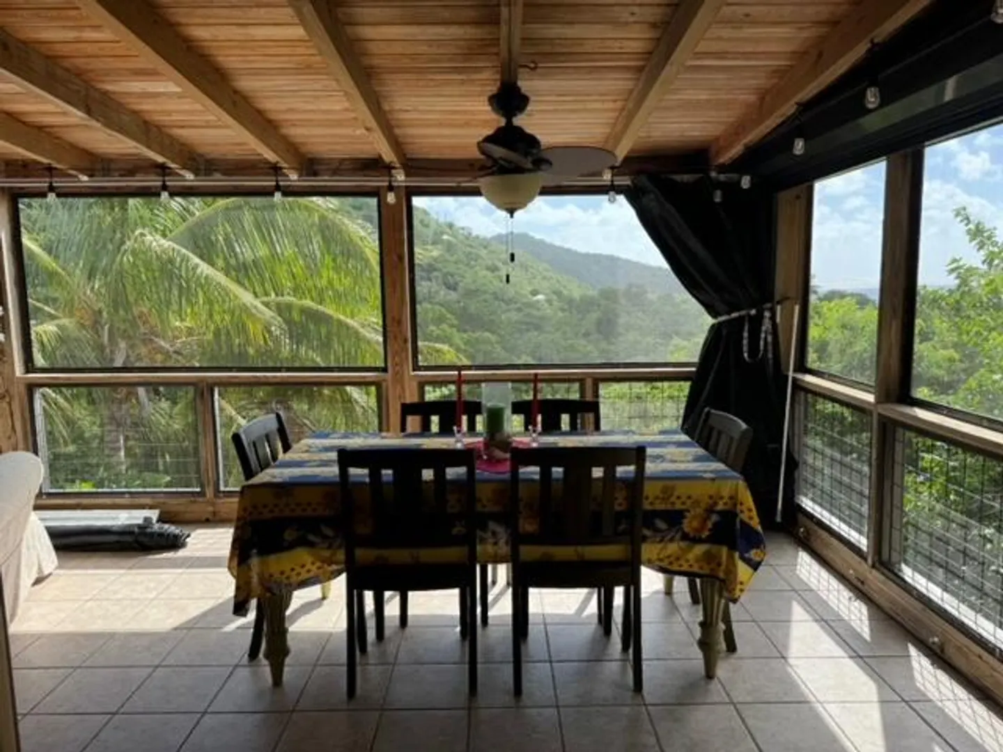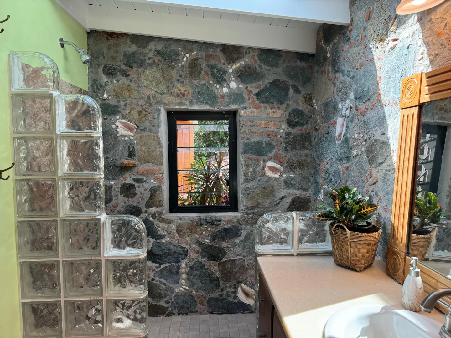 Nestled in the tranquil setting of Fish Bay, sitting above preserved green space with ocean view & gentle breezes. this beautifully renovated home features exotic tropical hardwoods, Jatoba exterior doors, Brazilian cherry hardwood flooring, & Purple Heart T &G walls in the great room. Primary suite includes travertine floors, Santa Maria T&G with manchichi rafter & eucalyptus cabinetry. Custom cabinetry through out. Kitchen remodeled in 2017, stainless steel appliances & quartz countertops. Lower level features 2nd bedroom, 1/2 bath, laundry room & work shop. 21 solar panels with net metering, want to go off the grid, all you need is battery back up. 25000K diesel generator. AC in primary suite. SimpliSafe security system. Armor Screen Hurricane system. UV whole water filtration system