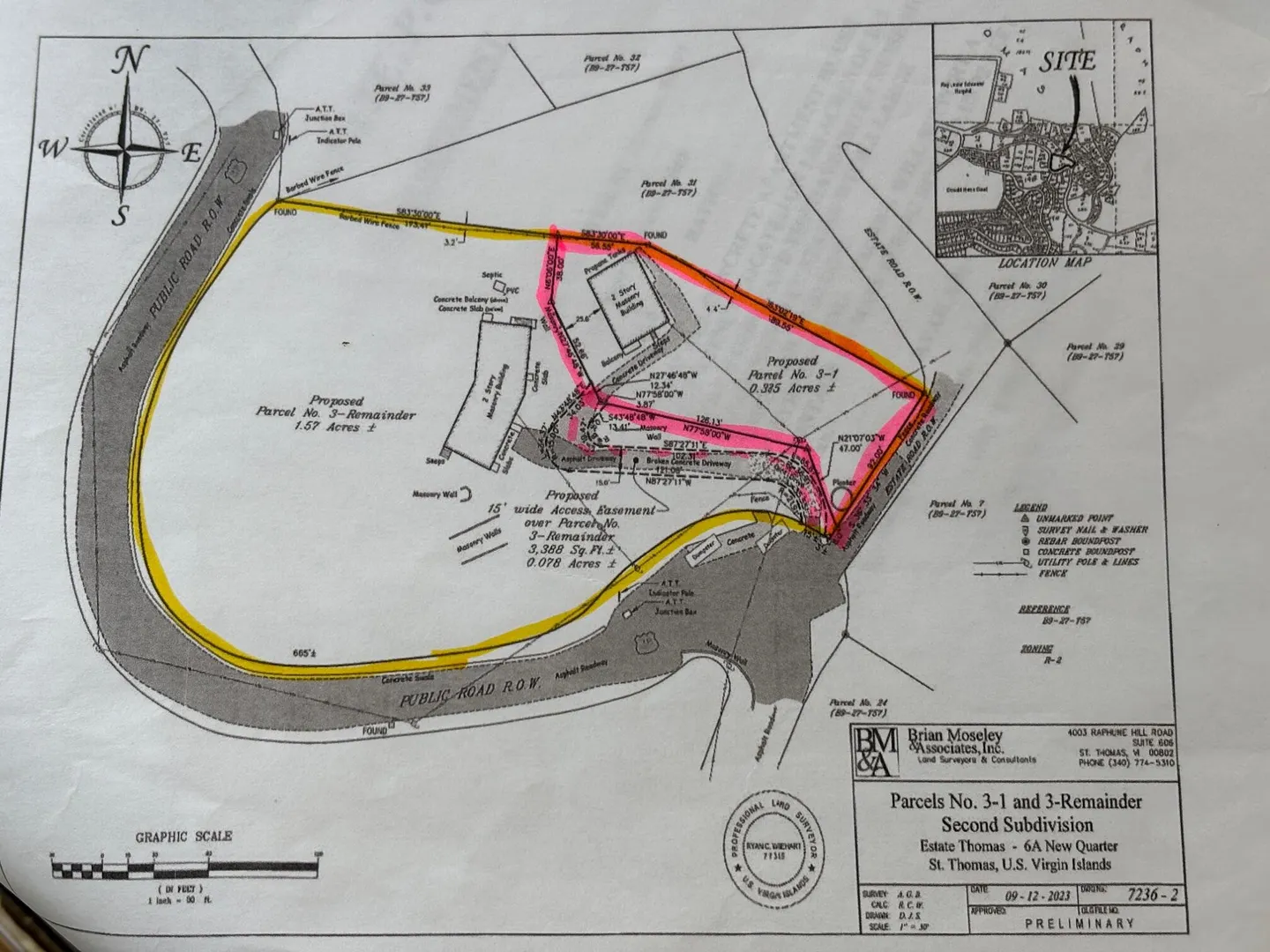 Classic concrete island ''country'' home on harbor view lot centrally located close to the hospital, and shopping. Cool breezes cross this location almost all the time. An additional dwelling is permisable on the property, and there is 92 feet of frontage on an estate road in addition to the present easement access. (see attached plan).Taxes reflect the amount for the entire 3C parcel and will be separated out upon sale.