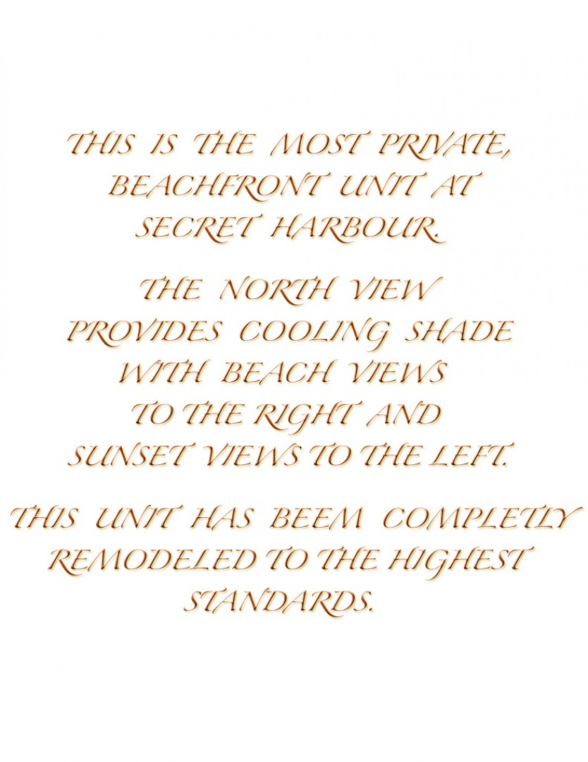 It is the LOCATION on the Beach for Privacy in the newest UPDATED 2 bedroom condo in Sec Harb Beach's Hotel Rental Program. This is the most sought after rental condo in the rental program - attributes are PRIVACY, NEWNESS and just plain BEAUTIFUL for a beach rental condo! Amazing that this is coming into today's market..it MUST BE SEEN! Marketing booklets for 414 avail now for buyers!!