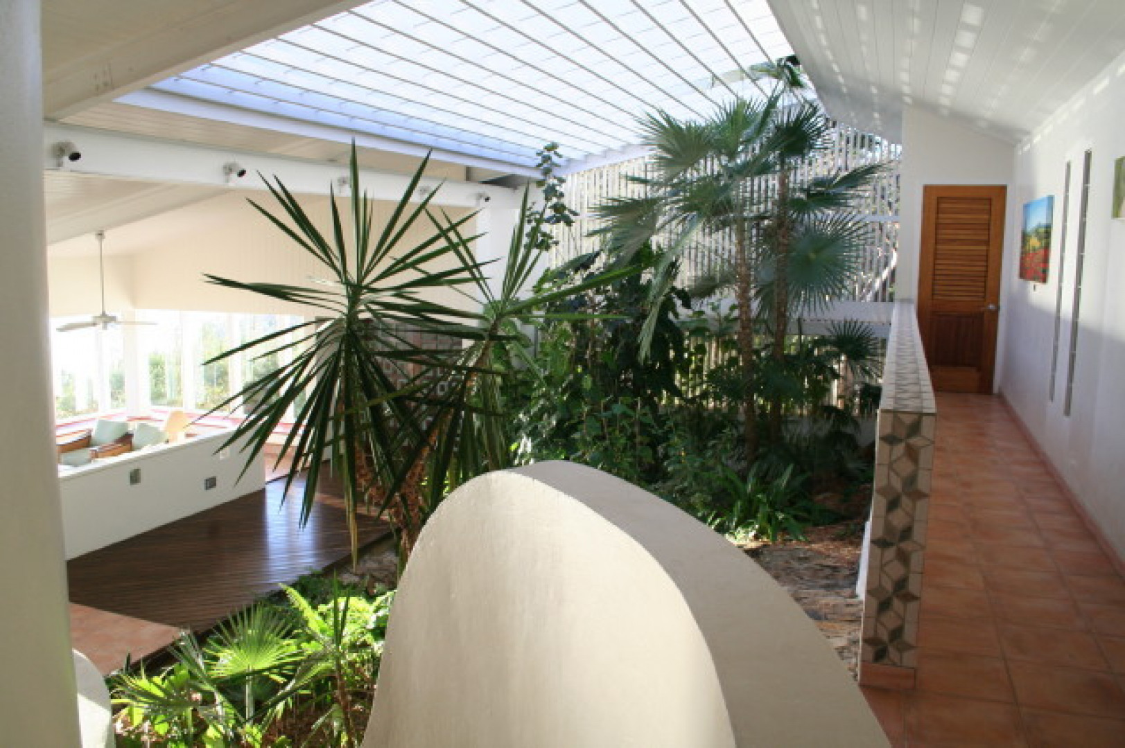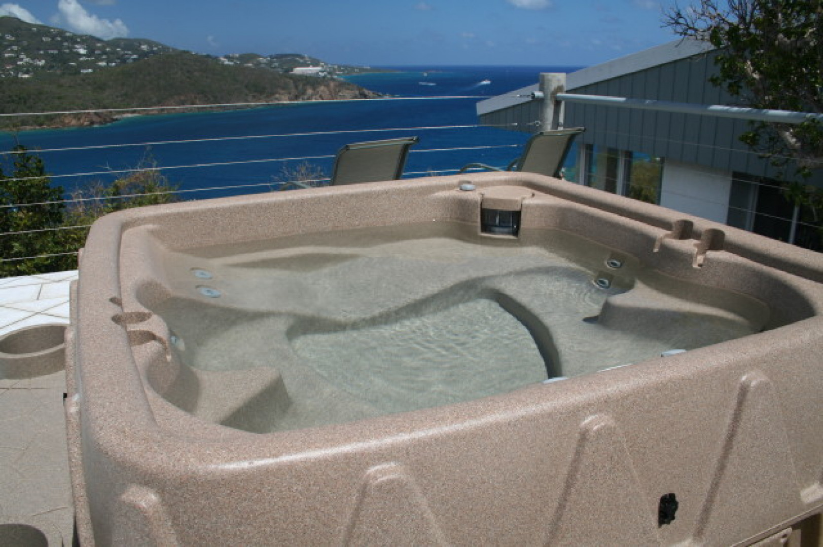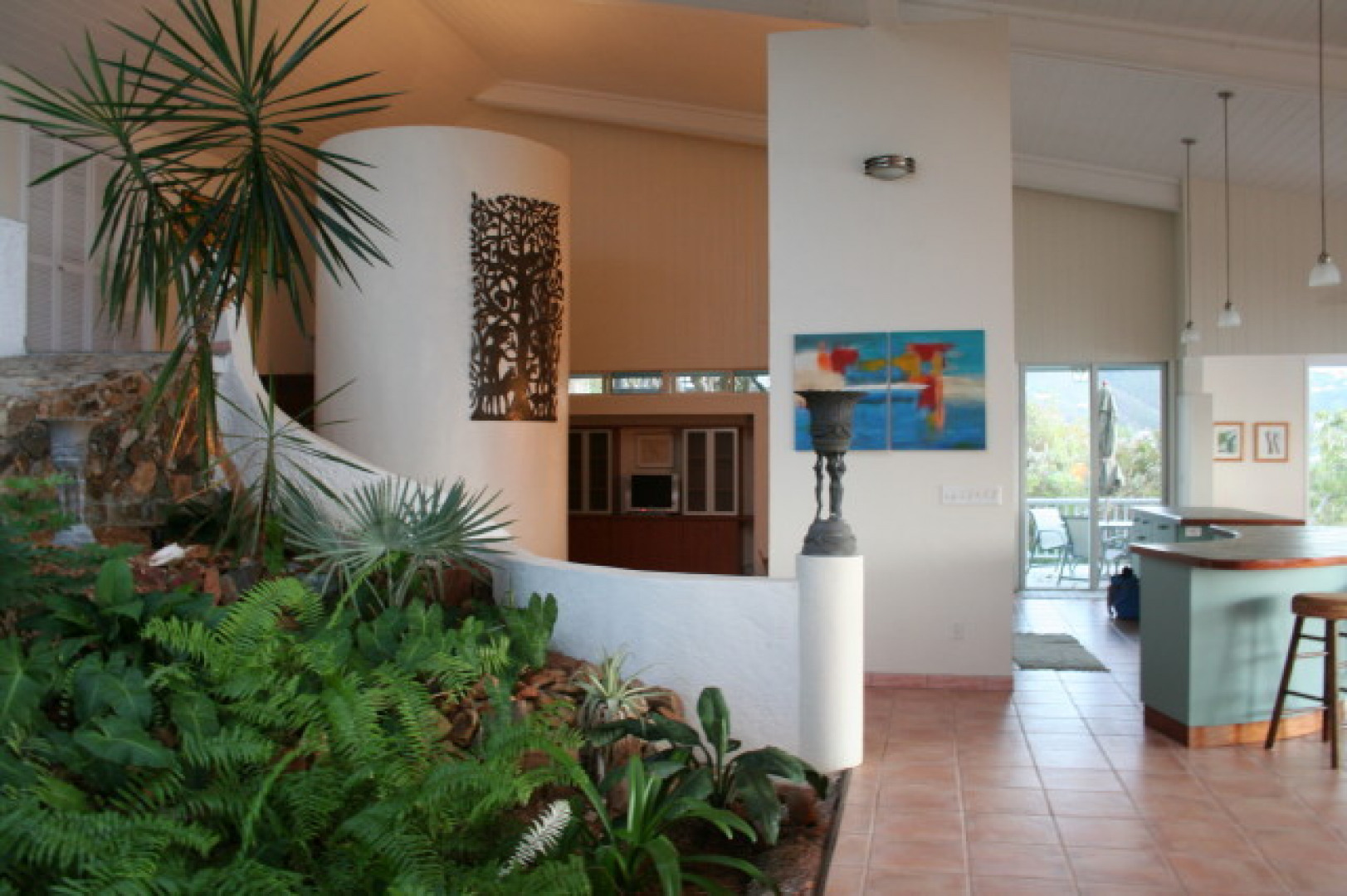 H2O Villa, Water Island. Located in prestigious Sprat Bay Estates which offers amenities of boat dock, tennis court and beach. Spectacular floor plan features indoor atrium garden, floor to ceiling windows, gourmet kitchen, professionally decorated great room, and floor to ceiling windows. Two BR each with own BA and 1/2 BA in sitting room with fold down Murphy Bed. Hot tub. Golf cart.