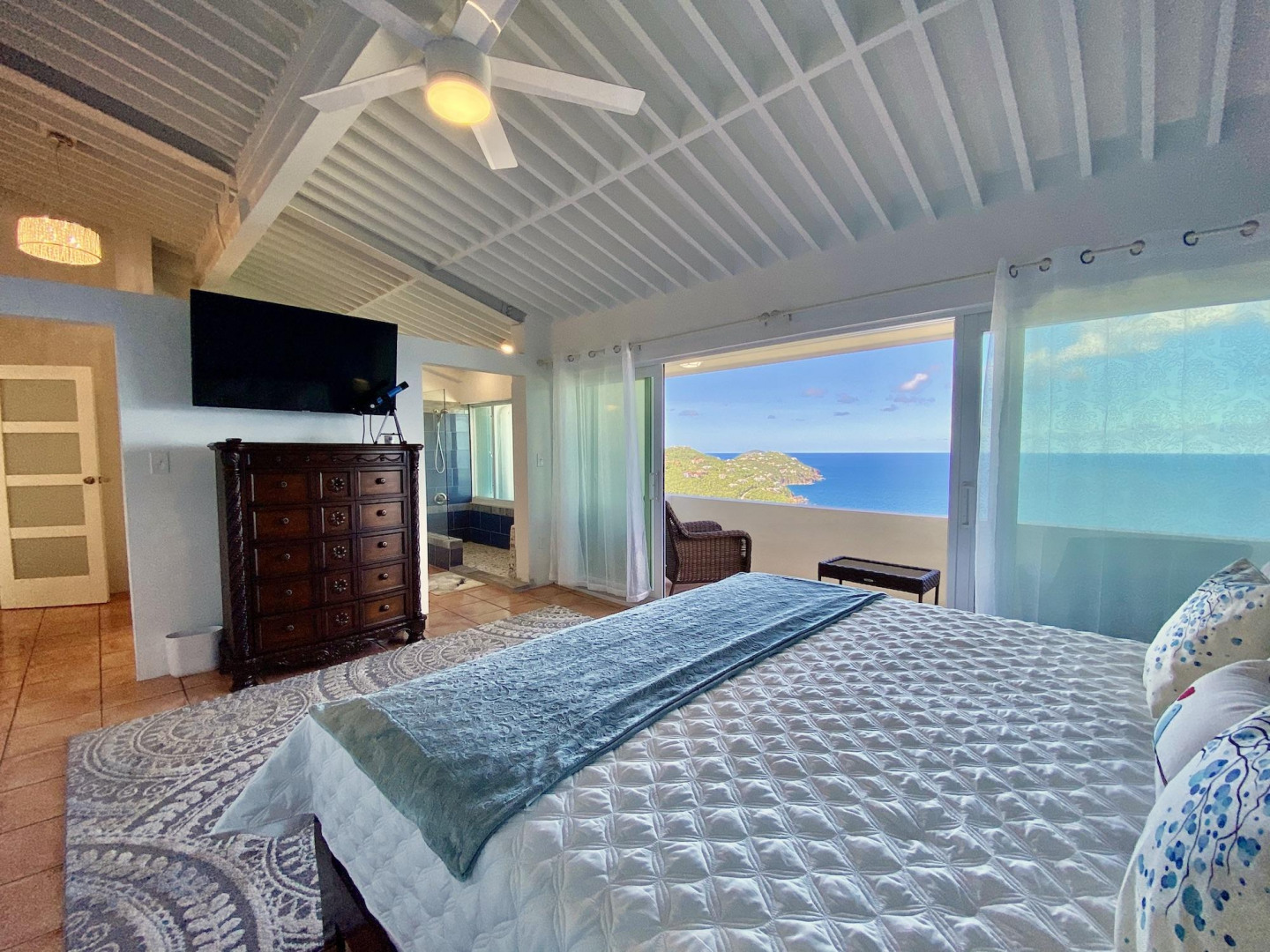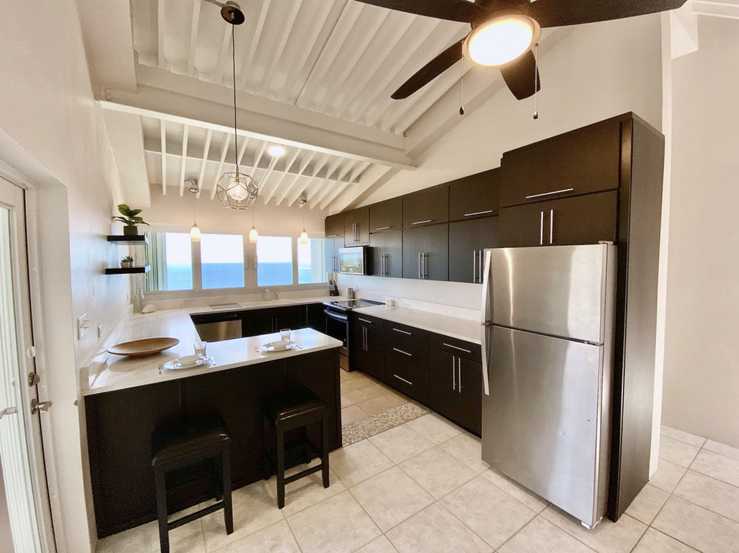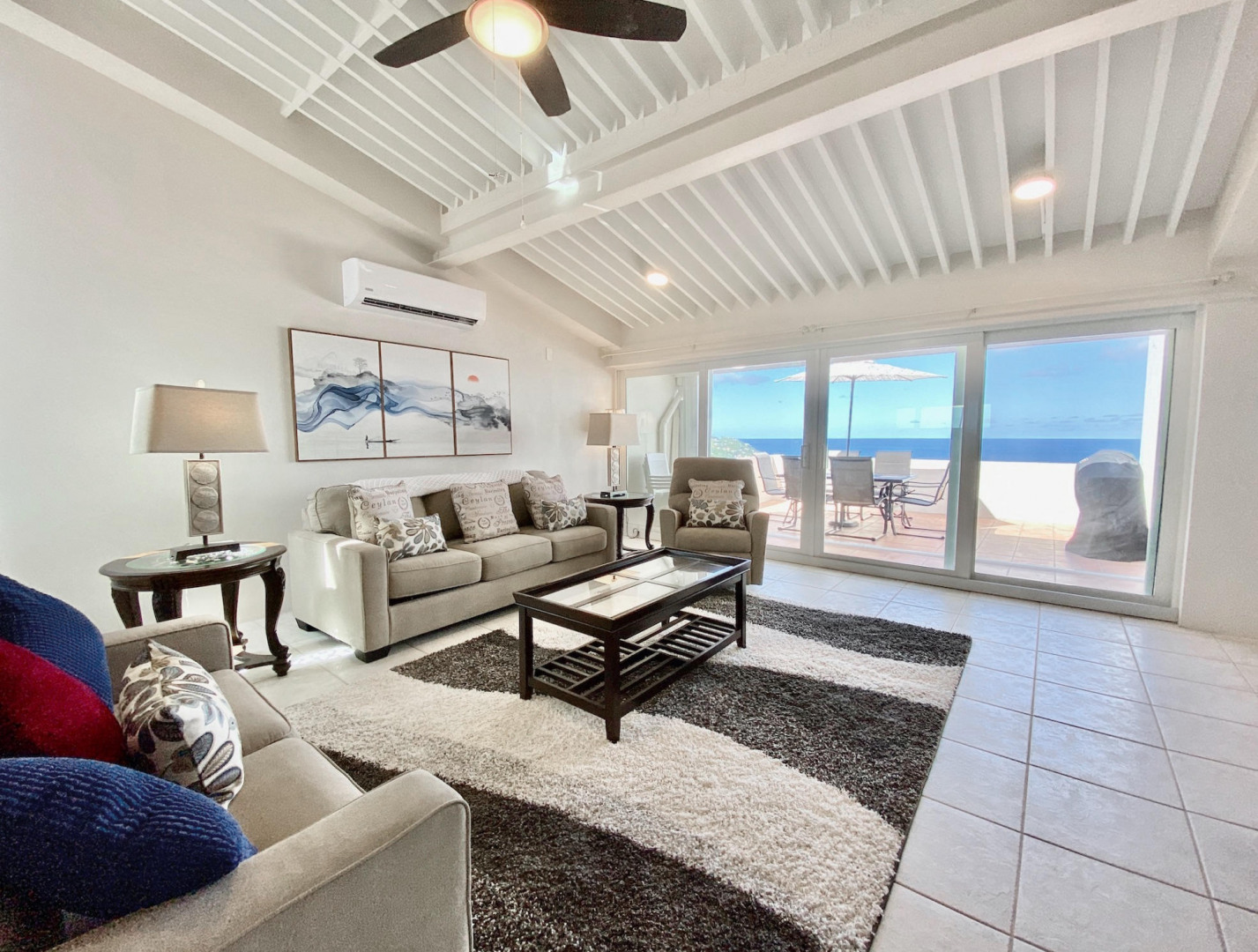 Beautifully renovated 2 Bedroom/2 Bath condo with amazing views of the Atlantic Ocean from Peterborg to the BVI. Enjoy the privacy of the top floor corner unit in this lovely gated community! Brand new Kitchen with Stainless Steel appliances, dishwasher, split A/Cs, Washer/Dryer and quality furniture. Brand new impact windows, sliders and brand new hurricane shutters! Comes with a covered parking space!Great for personal use or an investment opportunity! Currently operating as a Vacation Rental.