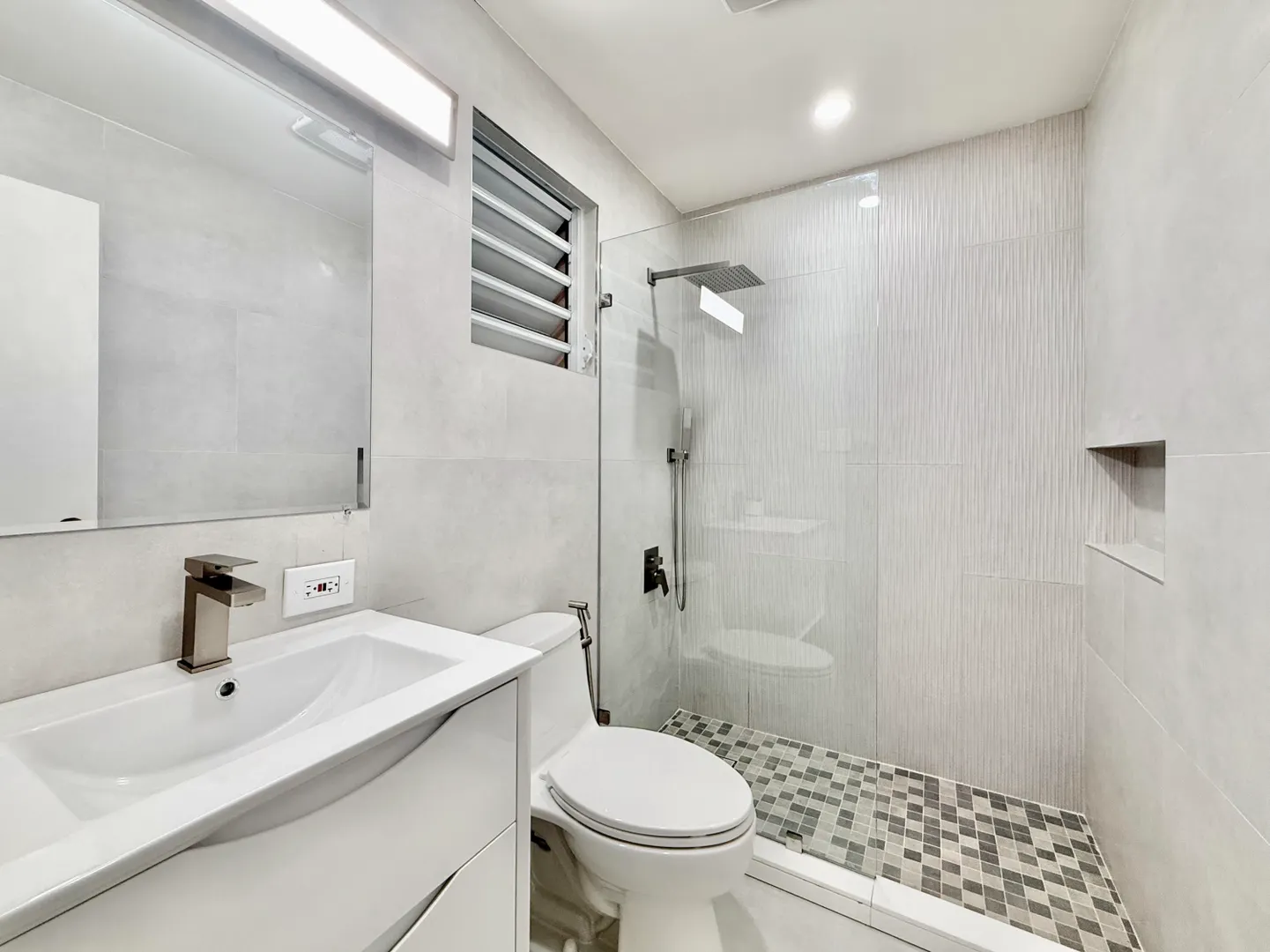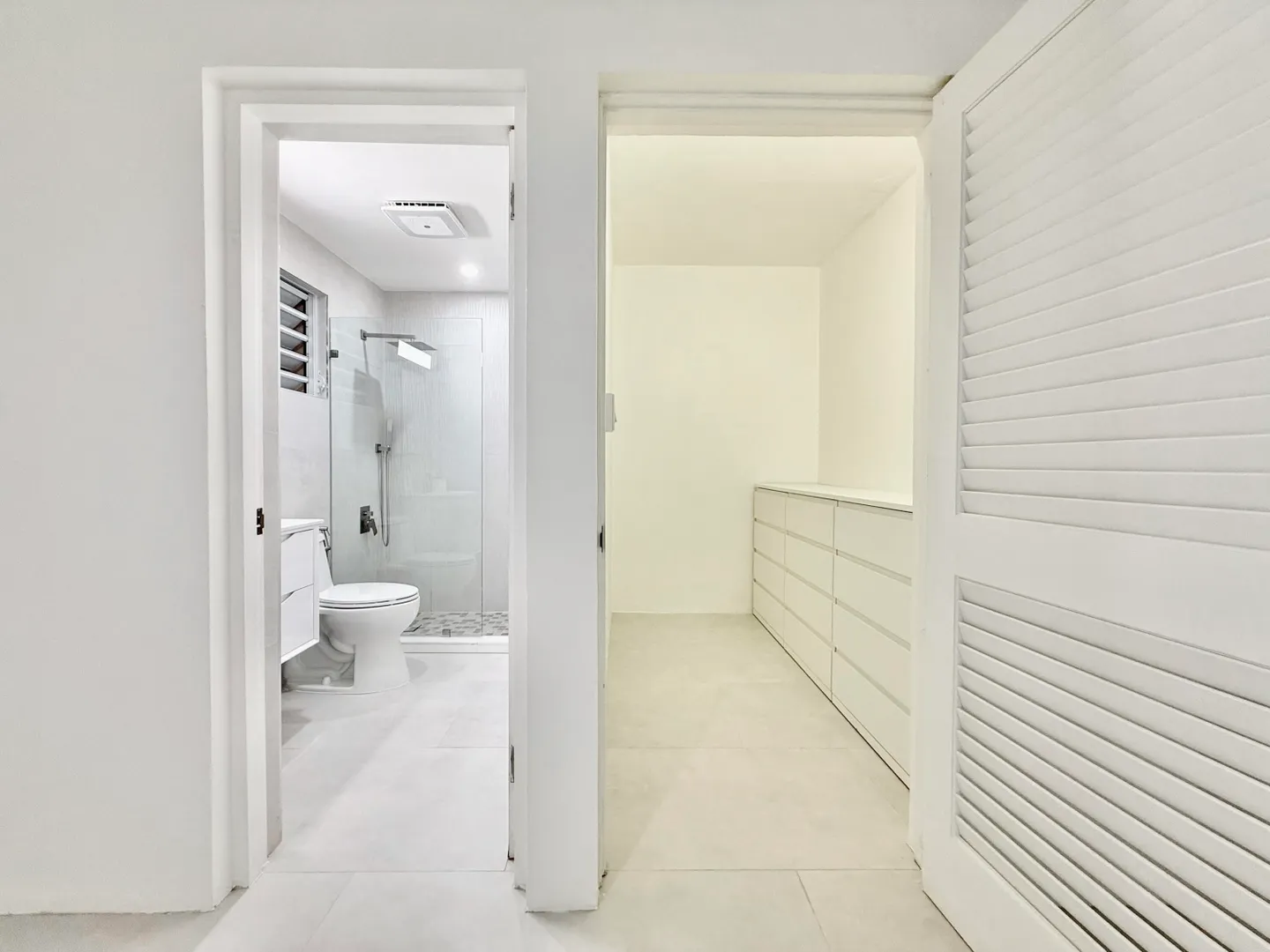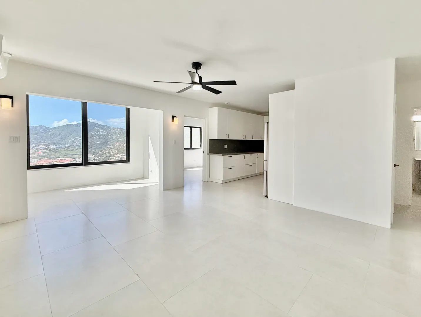 Beautifully renovated 3 Bedroom 2 Baths Condo. High-end stainless steel appliances. Fridge with screen, Dishwasher, Washer/Dryer and Split A/C's.Primary bedroom with en-suite bathroom and walk-in closet. Dining area with view over town and the ocean. Enjoy your evenings and weekends by the swimming pool. Only 5min to Havensight/town, 5min to Cost-u-Less/Movies/Tutu and 15min to Redhook.