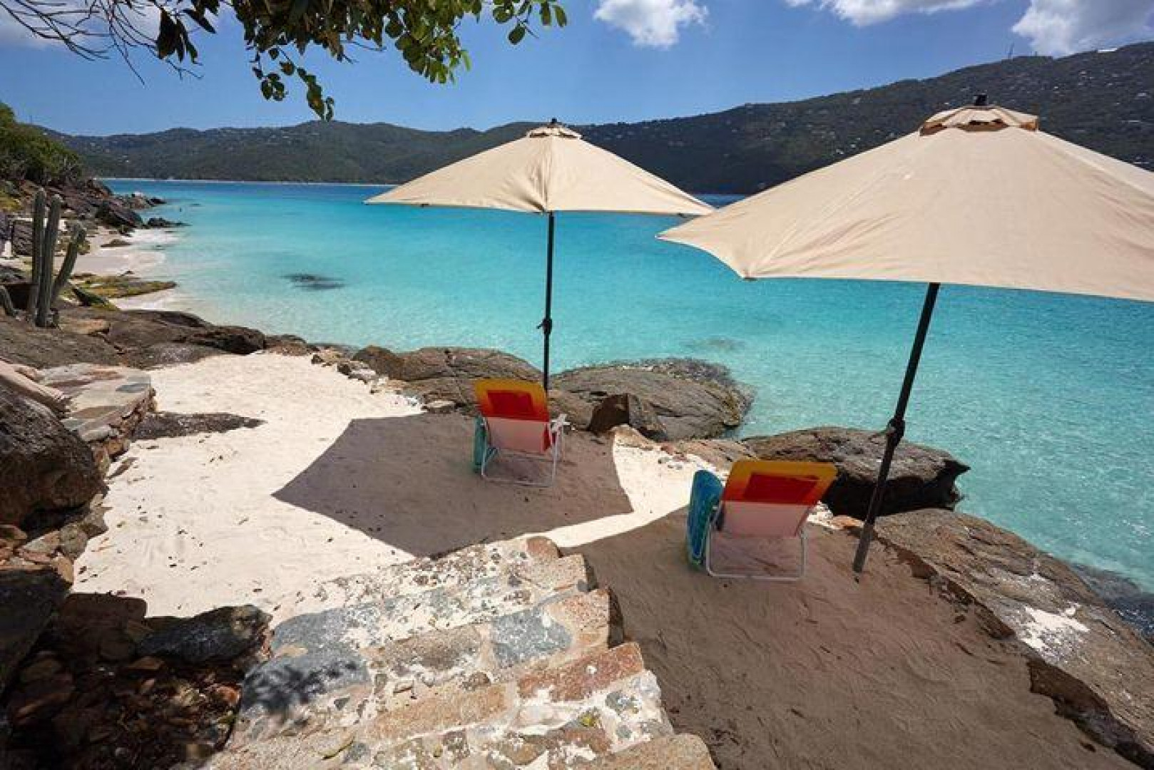 In a world that is virtually connected, why not work from your beach house? Whether as a family residence or getaway, this stunning estate languishes on an acre and a half of pristine, secluded waterfront. Need motivation? Wiggle your toes in the sand, swim in turquoise liquid. It frees the mind and soothes the soul. Architecturally, straight lines & soft curves bring the outside in, & the inside spills out onto decks overlooking Magen's Bay, arguably one of the world's sublime beaches. Laid-back luxury is evident in every room. It's a house you drift around in. It defies description, because it boils down into how you want to live, 4 swims per day, 7 chapters of a book on the pool deck or stargazing by candle light. Bathing suits & bare feet; caftans and cocktails as the sun sets