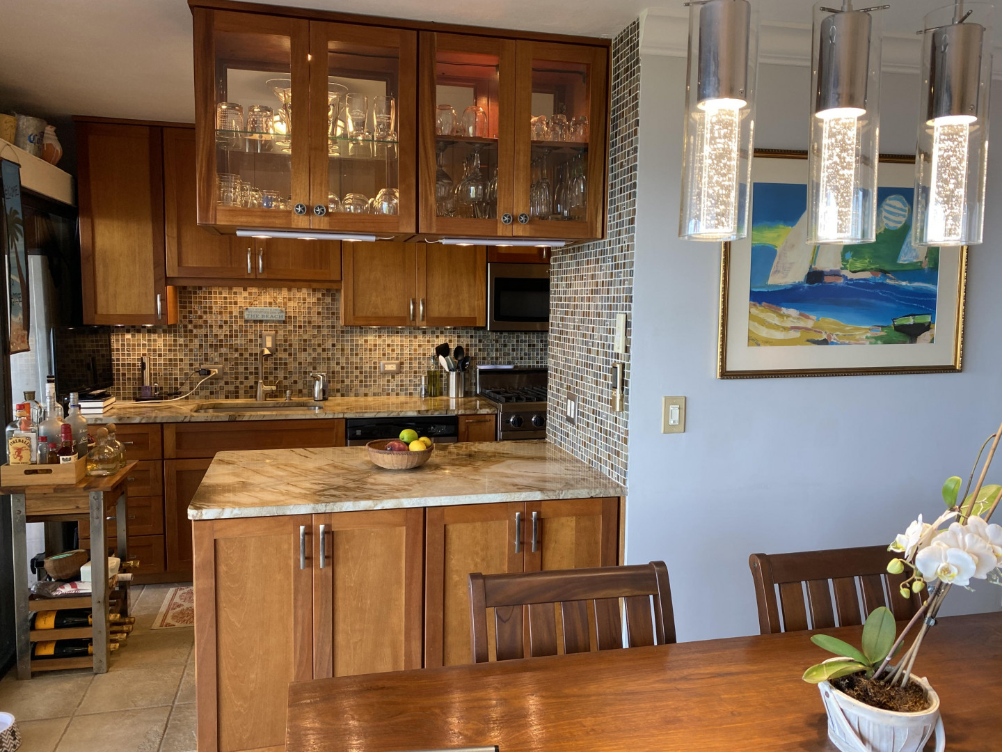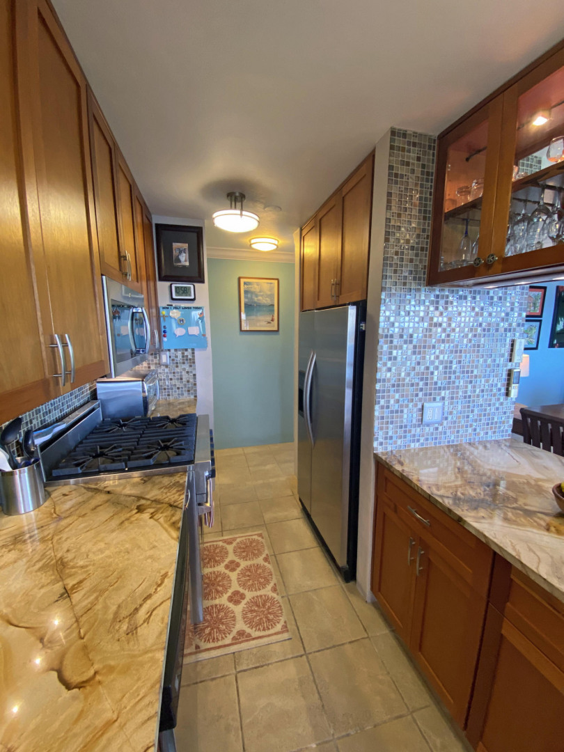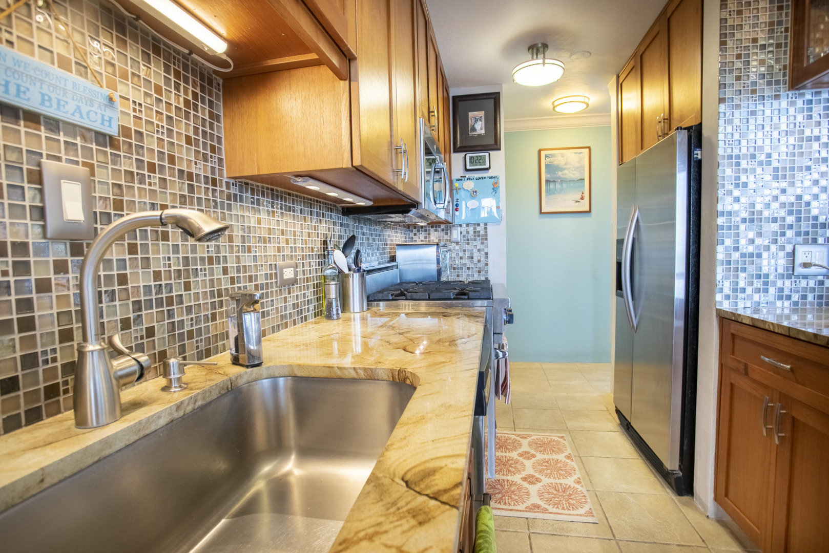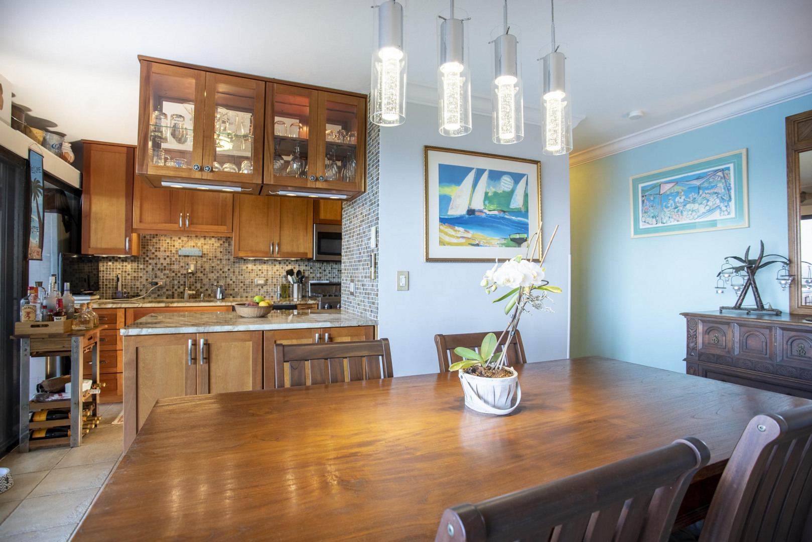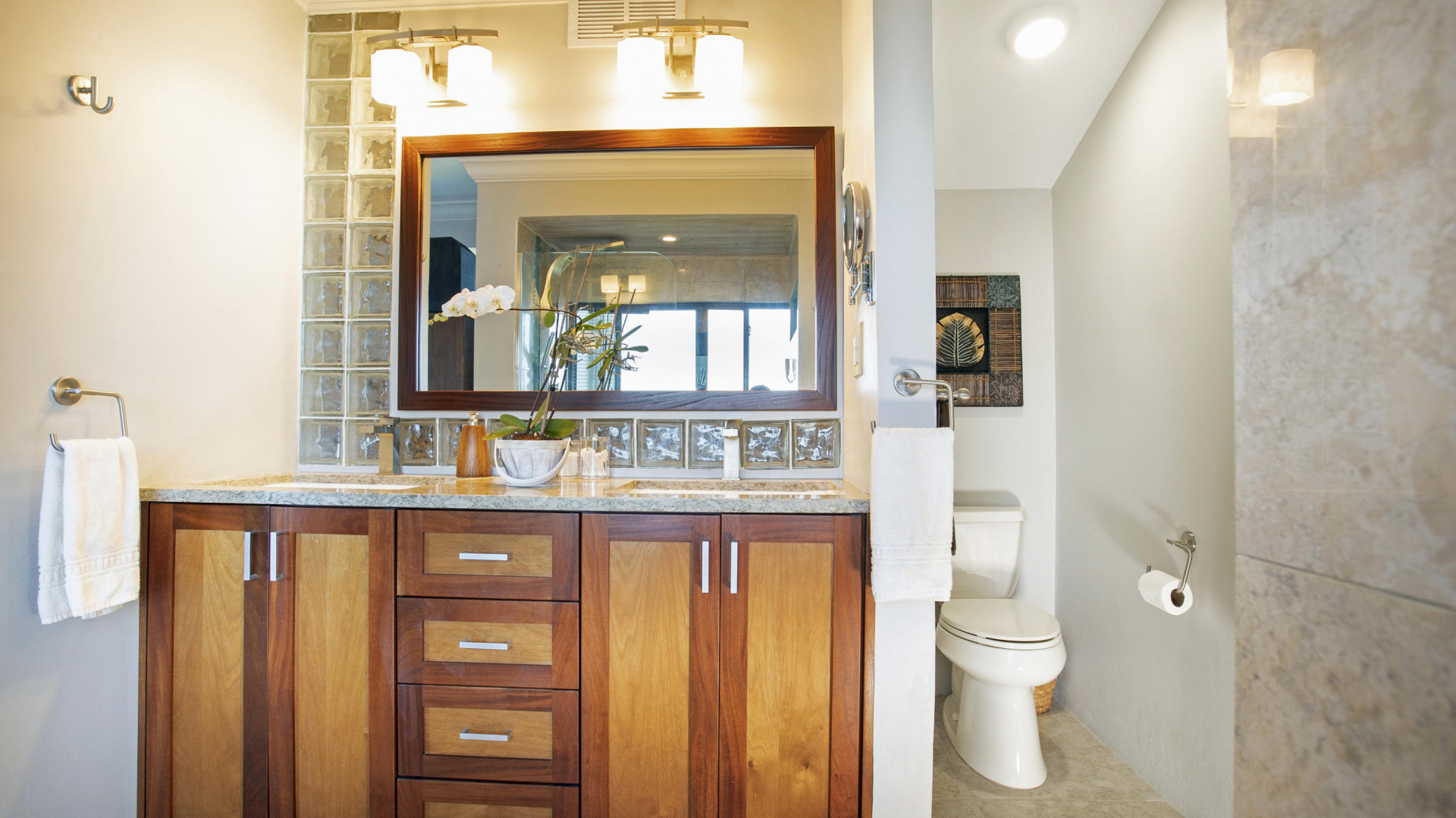 A step above, this one bedroom Mahogany Run condo has a multitude of special features to recommend it. The owners have expended every effort to take what is a very livable design and elevate it with special features and additional storage. There is custom mahogany cabinetry throughout, high end kitchen appliances and quartzite counters, a contemporary clean lined bathroom with double sink vanity, linen closet and walk in shower enclosure and unique to this unit is the addition of a powder room making this the only 1 bedrm 1 1/2 bath unit in the complex. The master bedroom has been expanded with a built in desk with a view guaranteed to distract you as you work. Above all is the beautiful view from Hans Lollick to the BVI visible from all of the rooms and to be enjoyed from the 32' deck